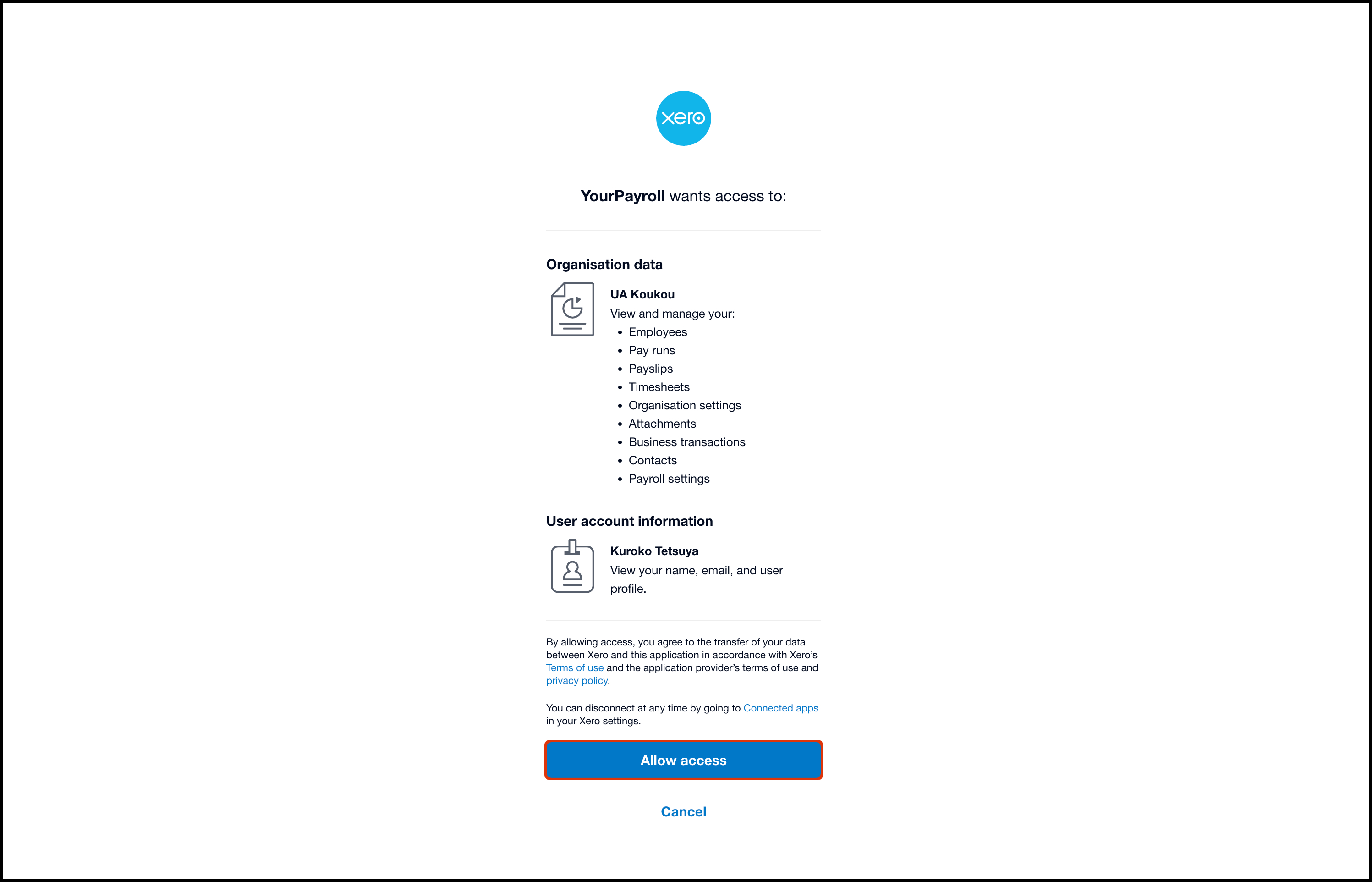 - Click the Connect to Xero button.
