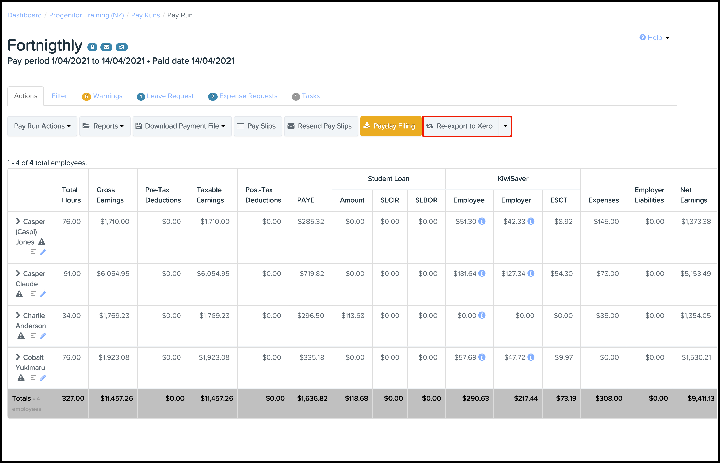 You can use the Re-export to Xero feature to transfer the finalised Pay Run data over to your Xero accounting platform.