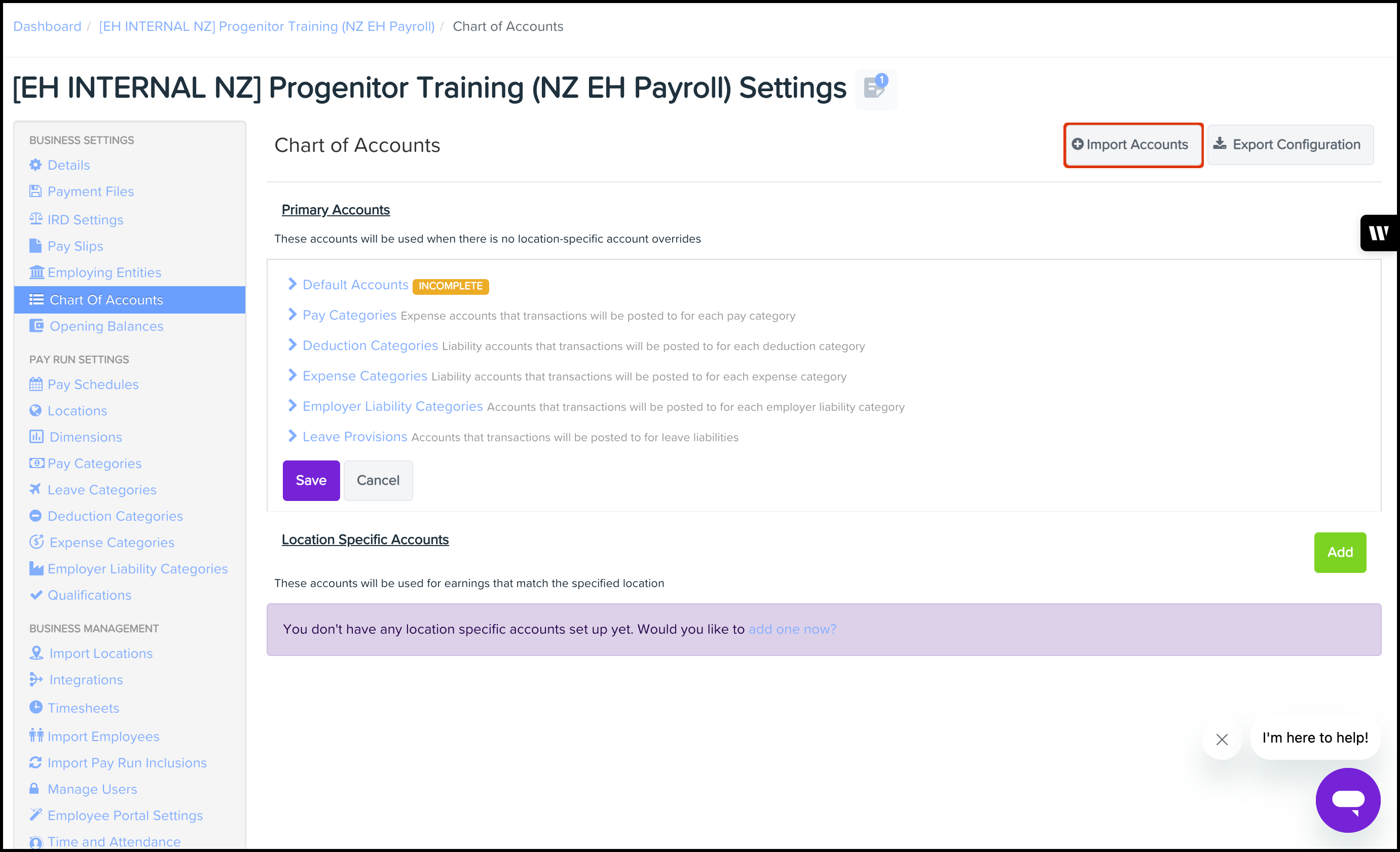 Configuring your chart of accounts