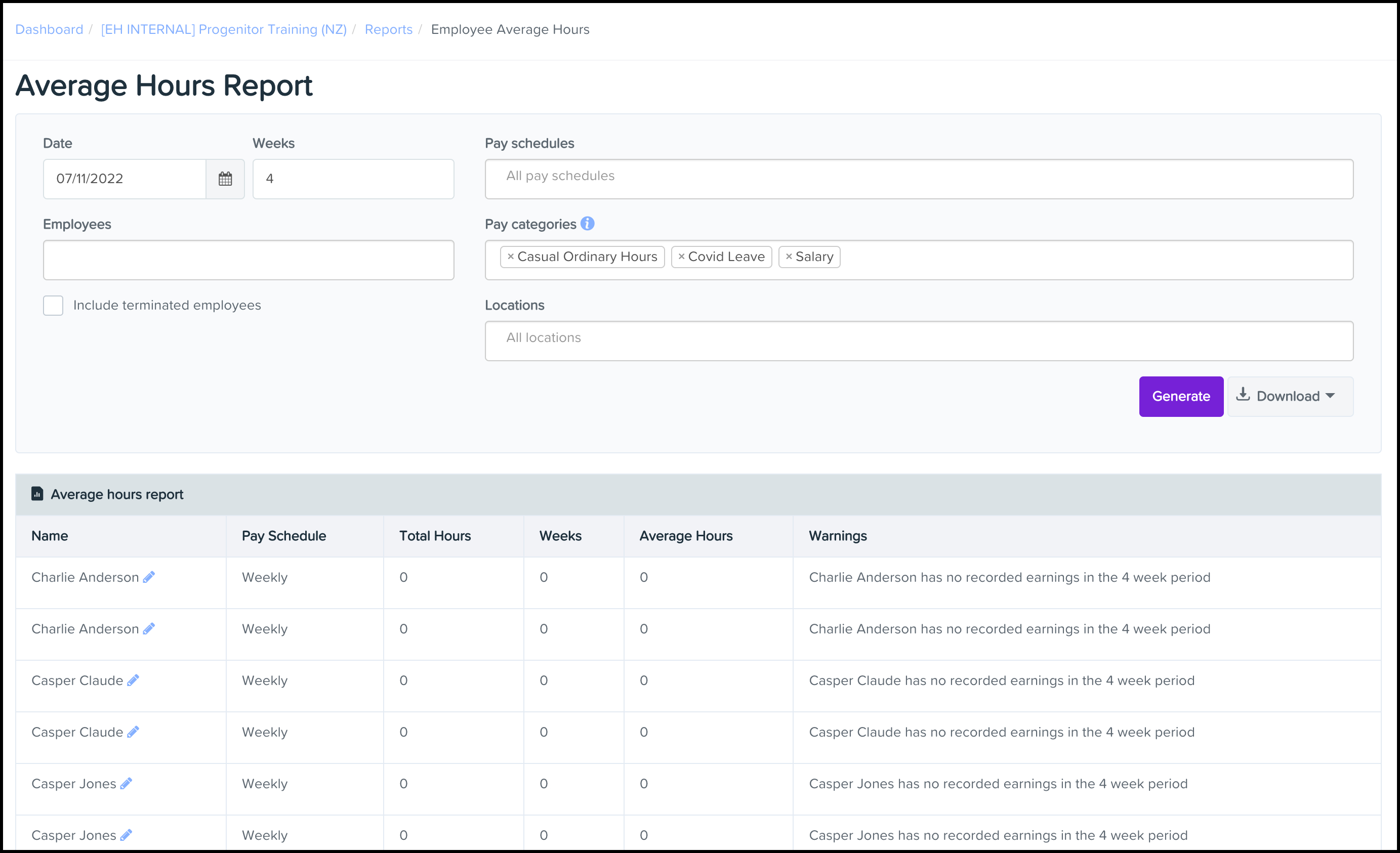 You will now see your average hours report on your screen.