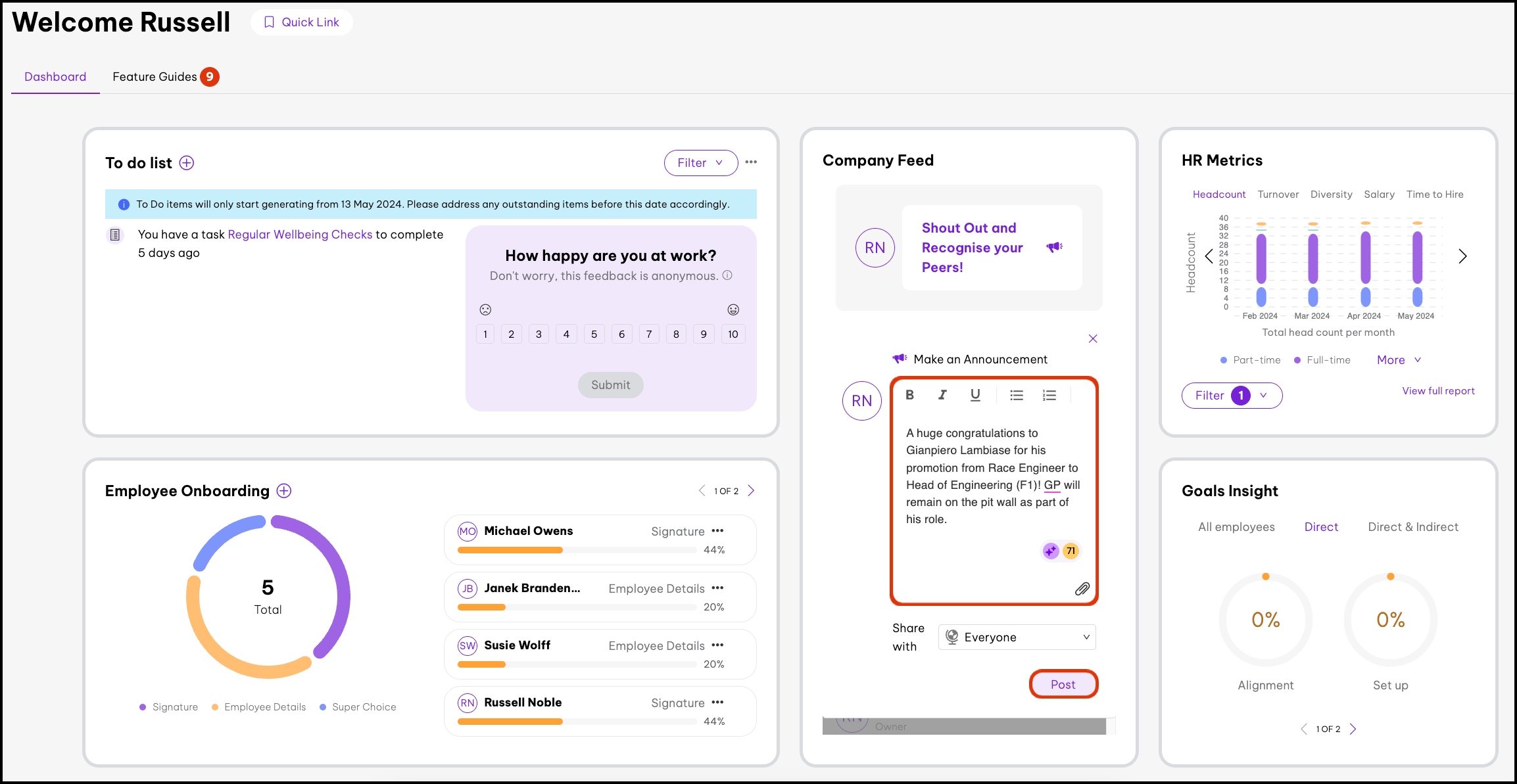 - Using the company feed This article runs through the entire company feed features, covering the types of messages you can post through to how to react and comment.