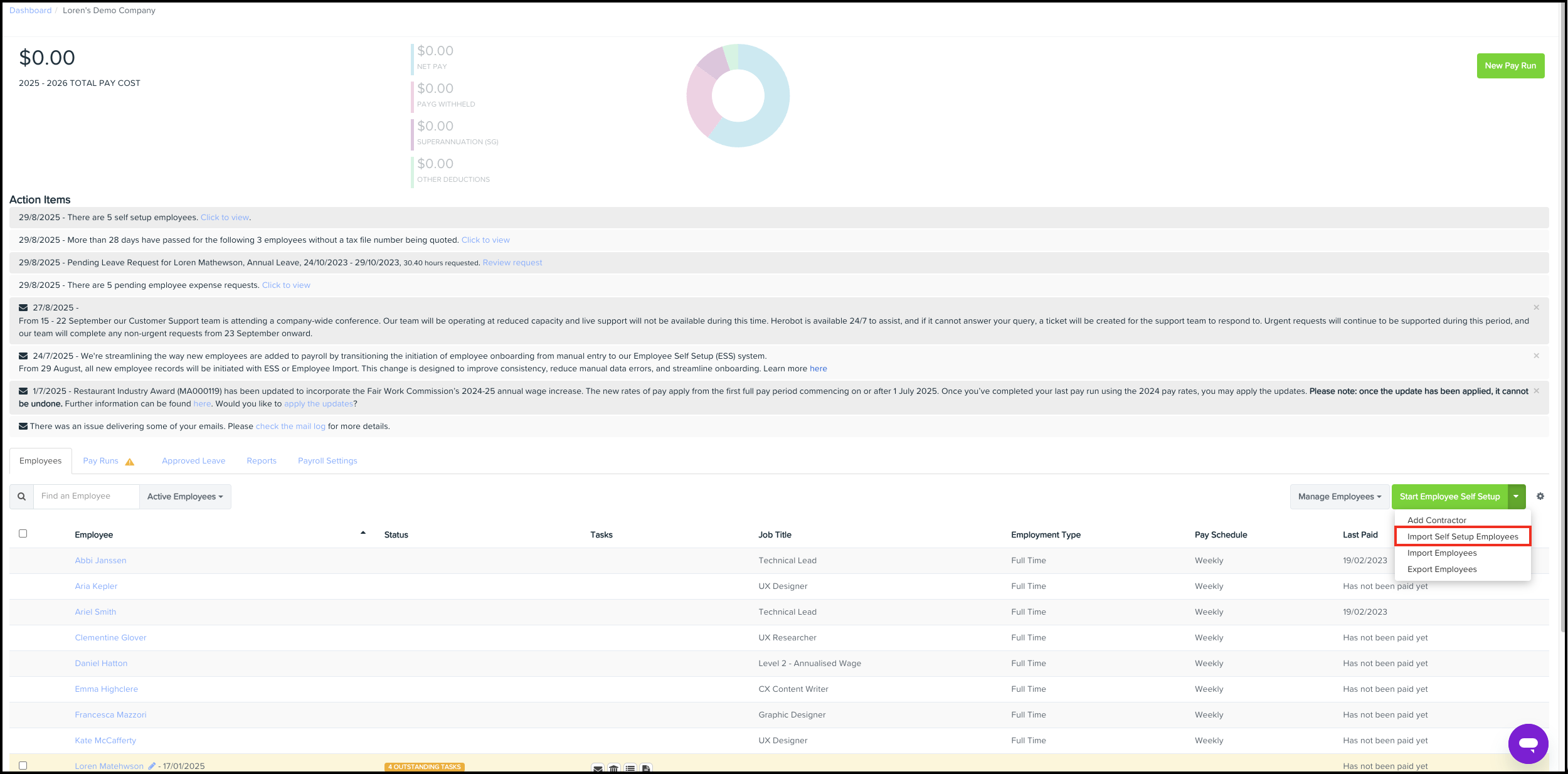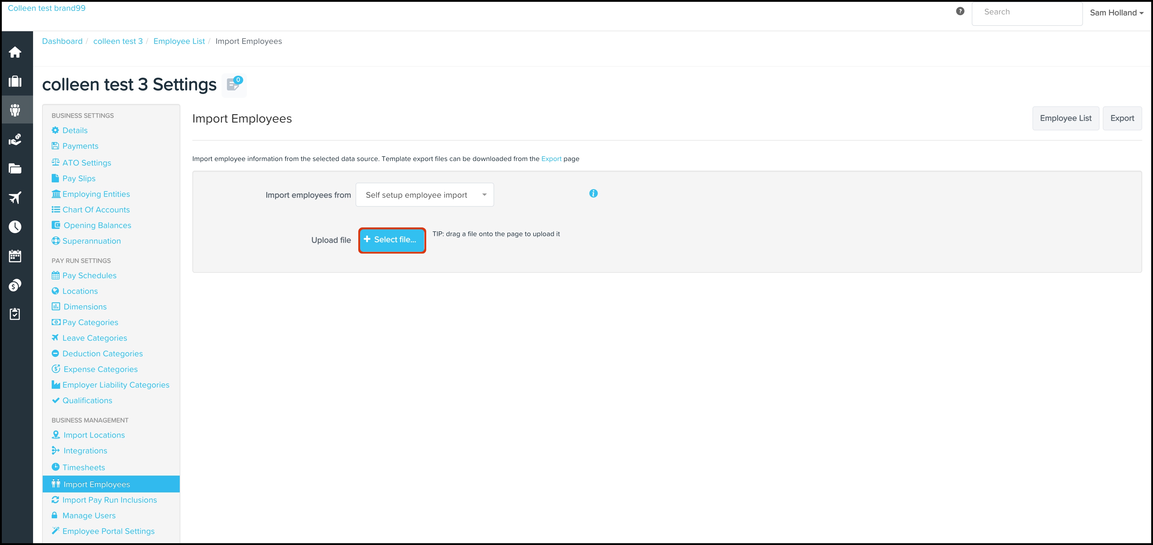 - Select Import Self Setup Employees from the drop-down list.