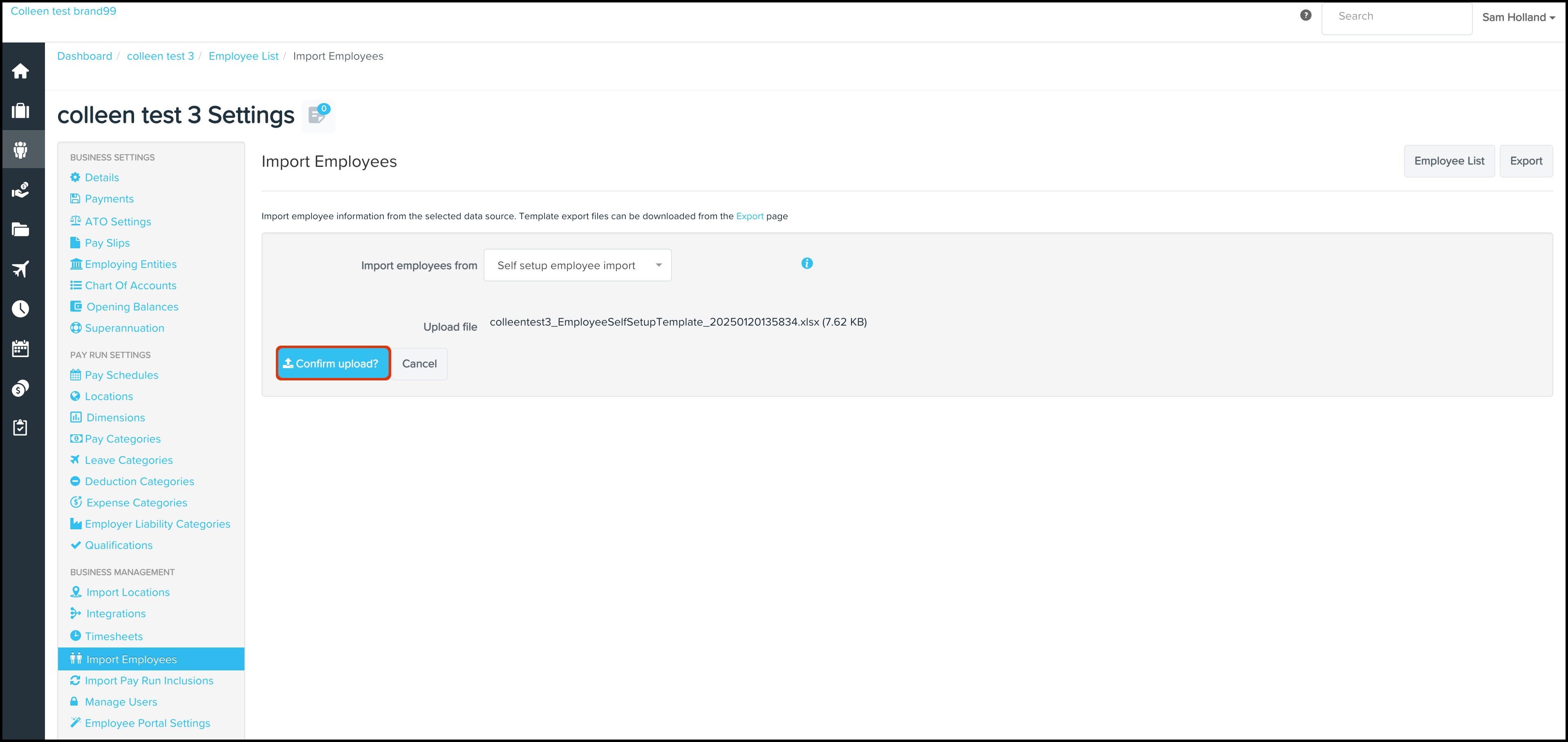 - On the payroll platform, click the Import button.