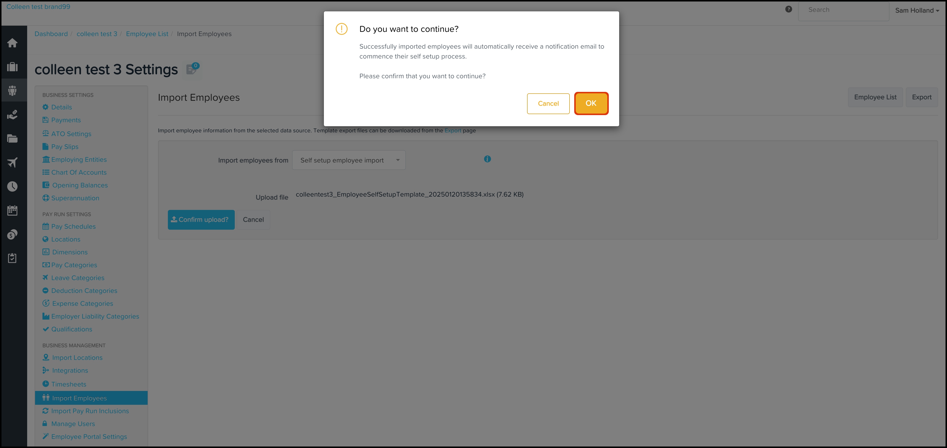If the import is successful, it will prompt an email to be sent to the employees you have now added. The email will tell them how to complete their onboarding process.