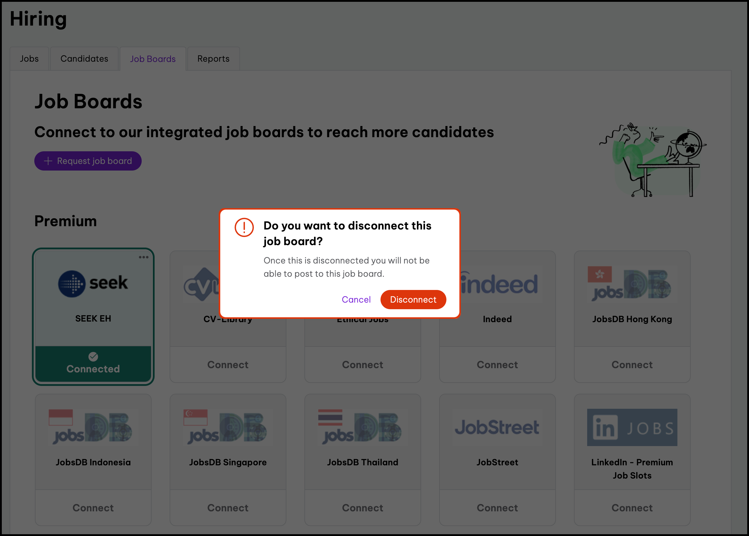 When connecting to Seek, please contact your dedicated Seek Account Manager or Seek customer service team to authorise Employment Hero to post to your account. Connection to JobsDB and JobStreet is now only available via SEEK.
