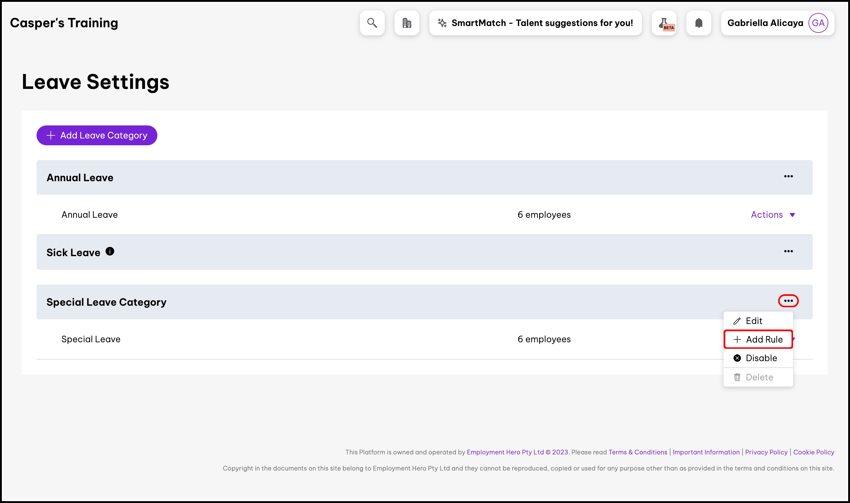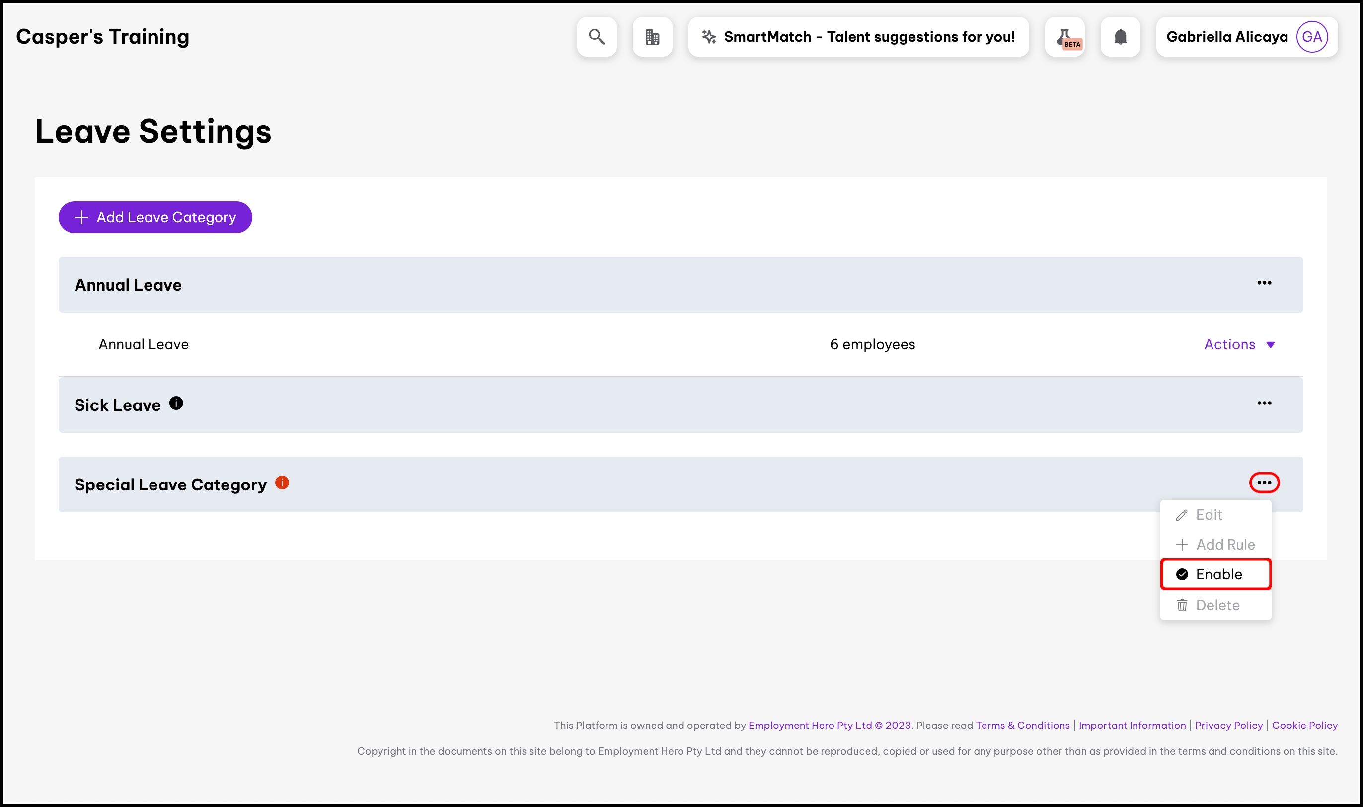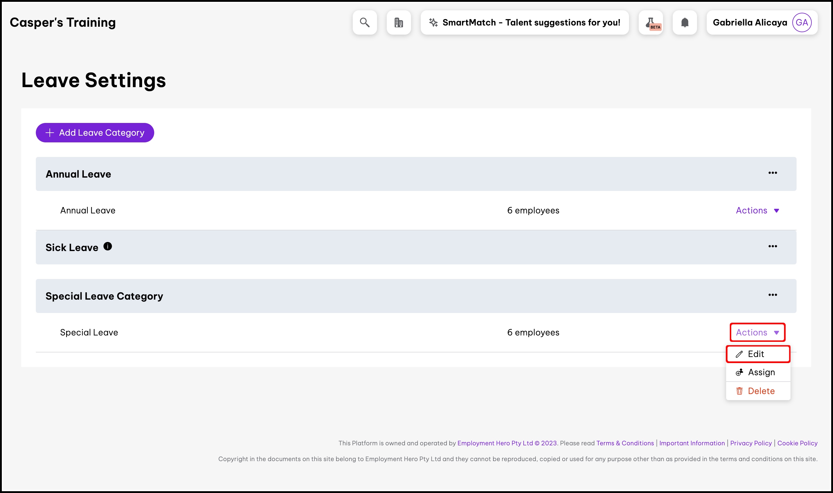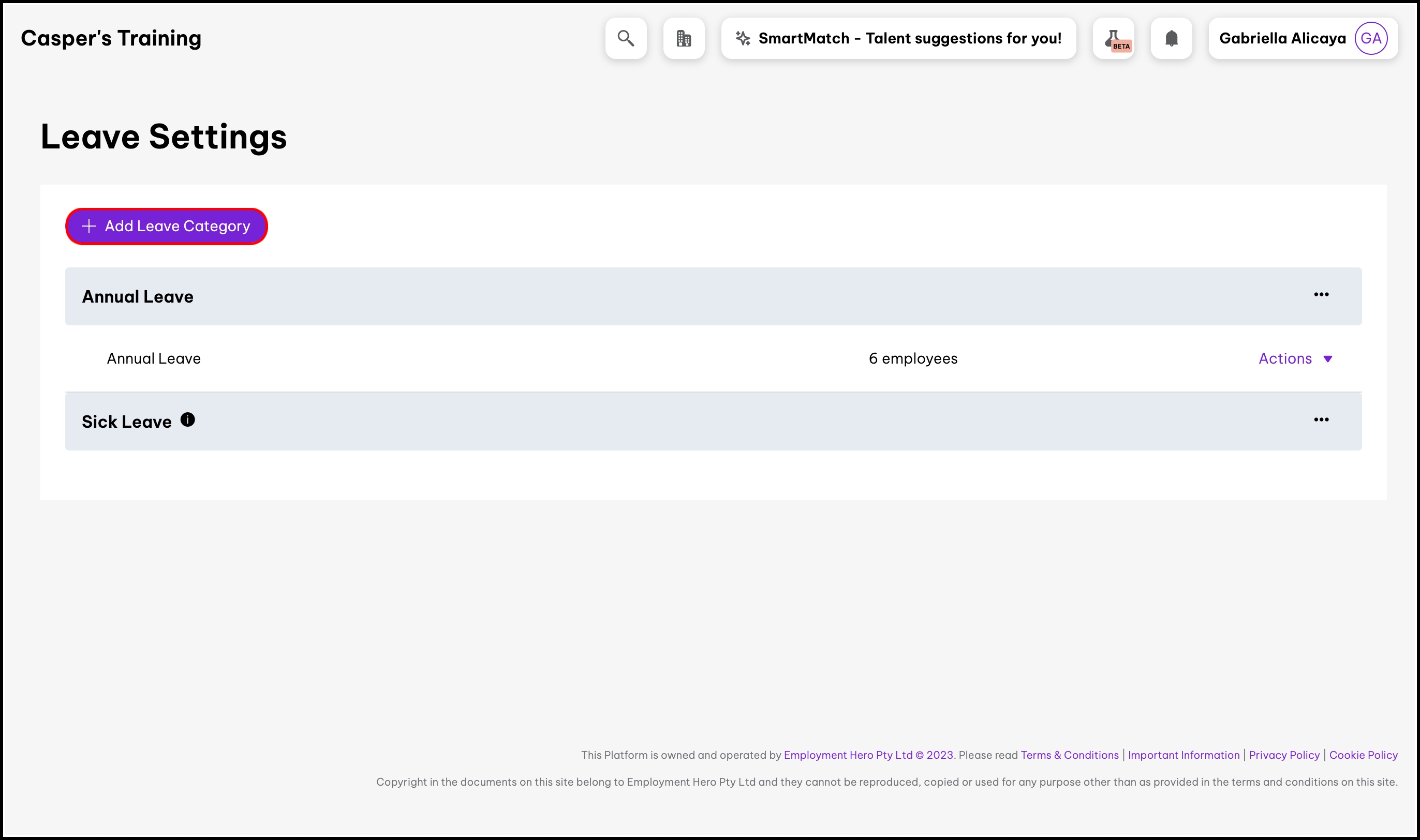The article is for organisations that use the HR platform as a standalone. If you are a HR and payroll connected org, please refer to this article: Managing leave categories via the HR platform | HR & Payroll connected orgs.