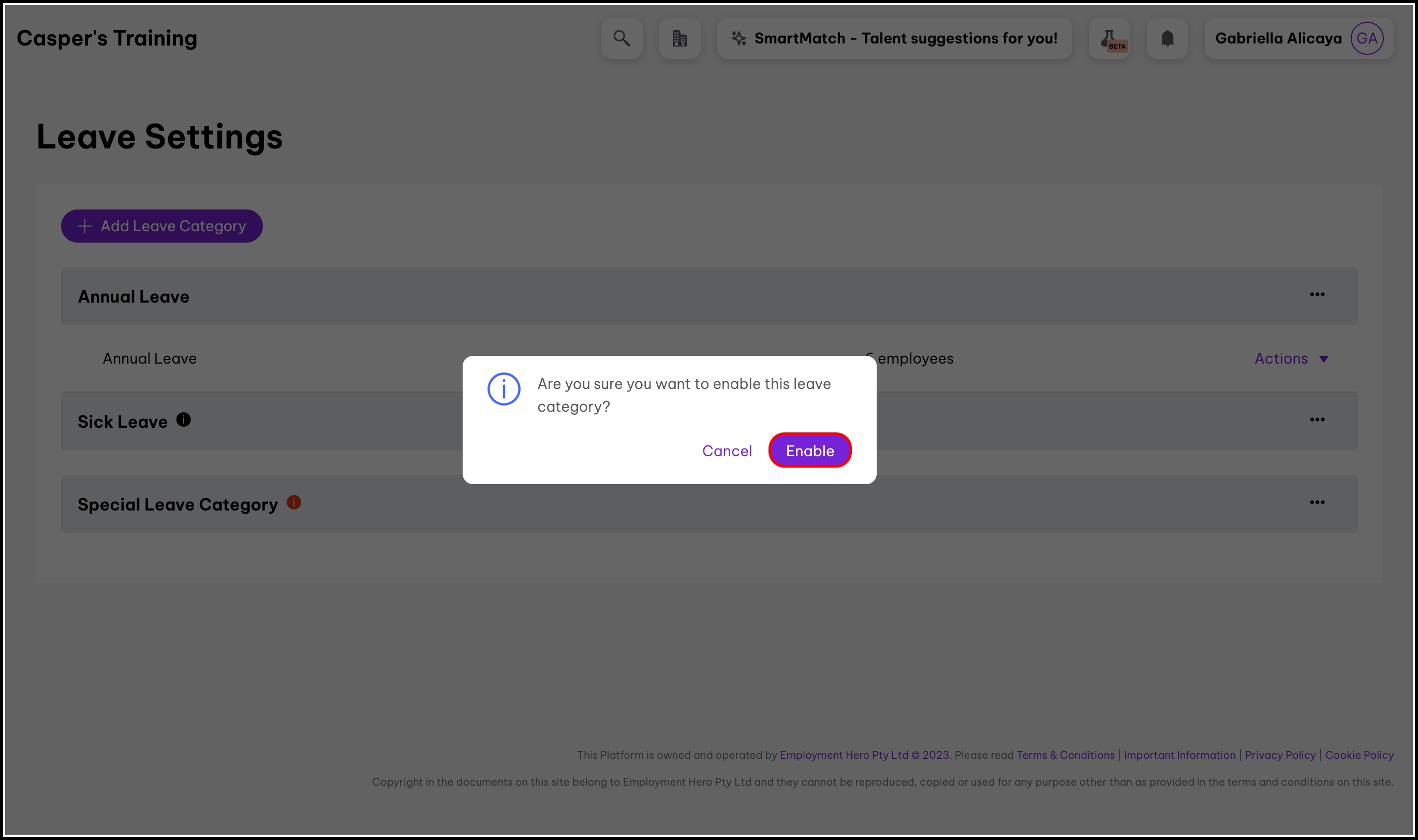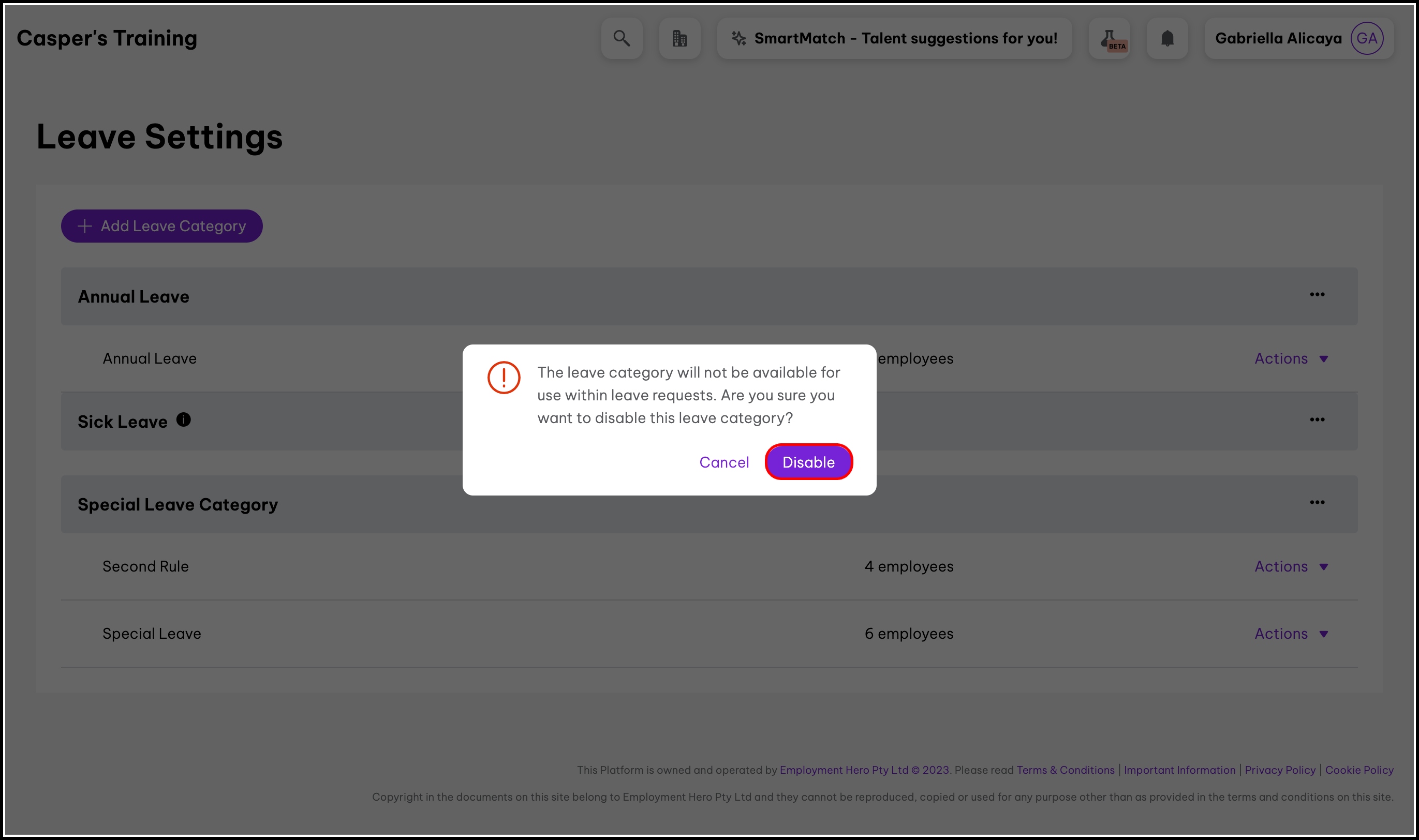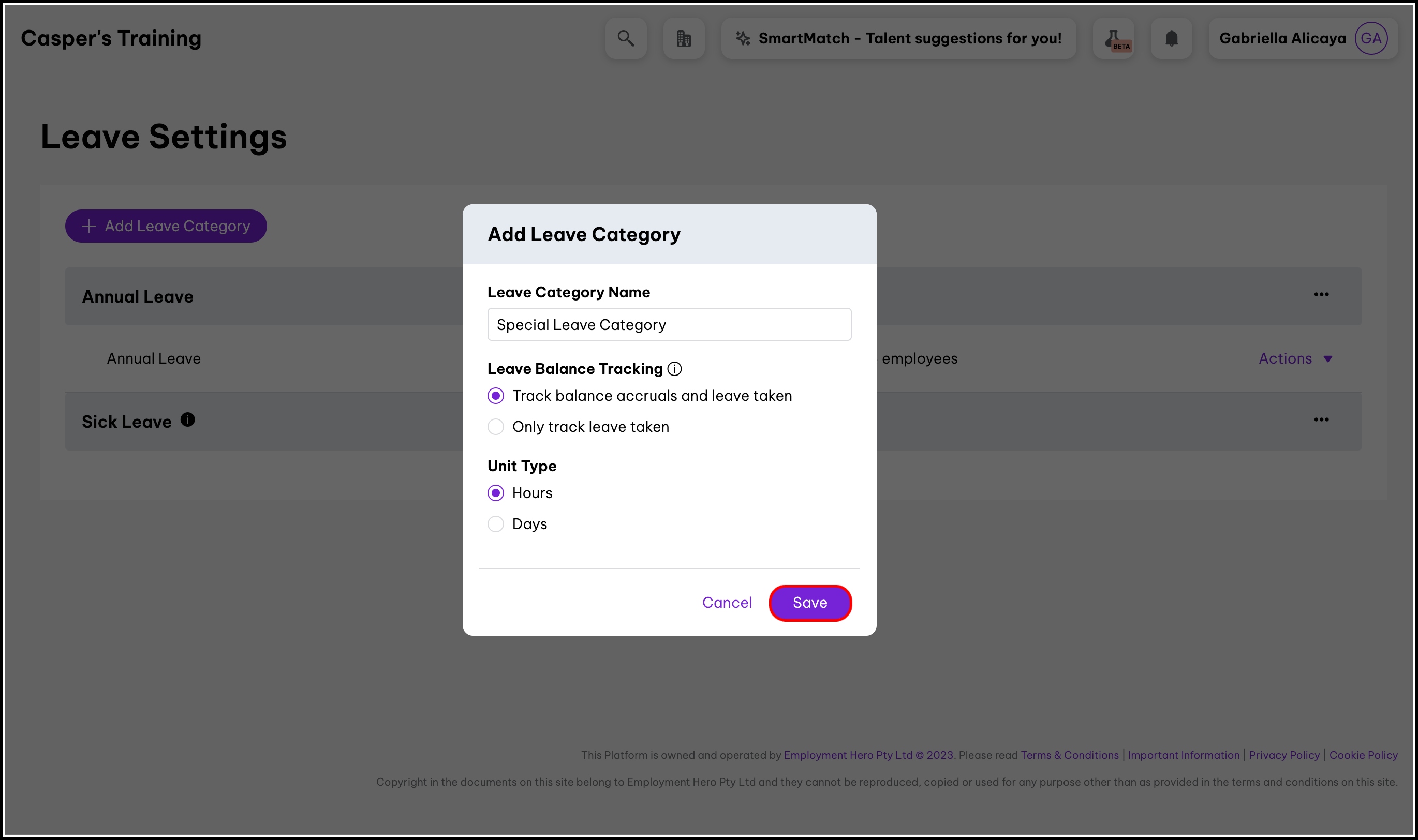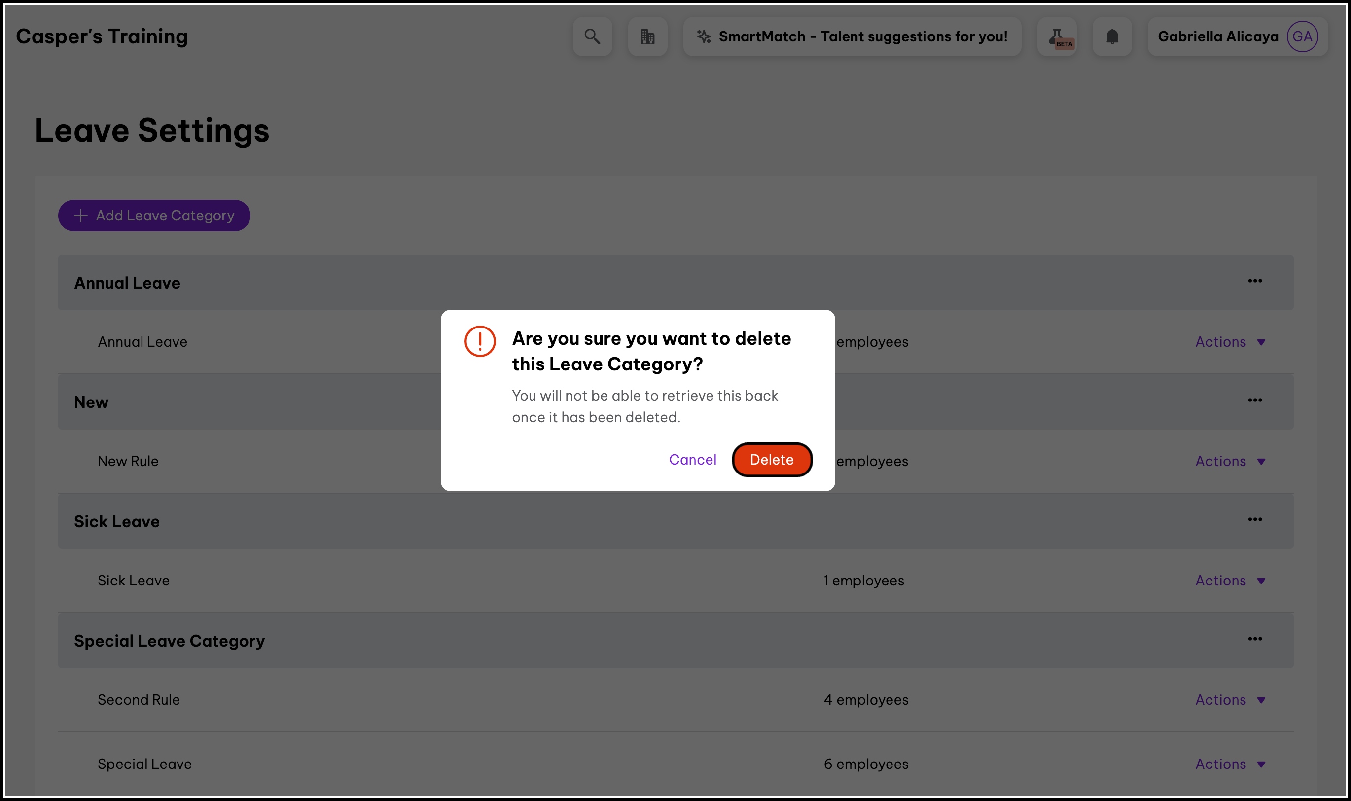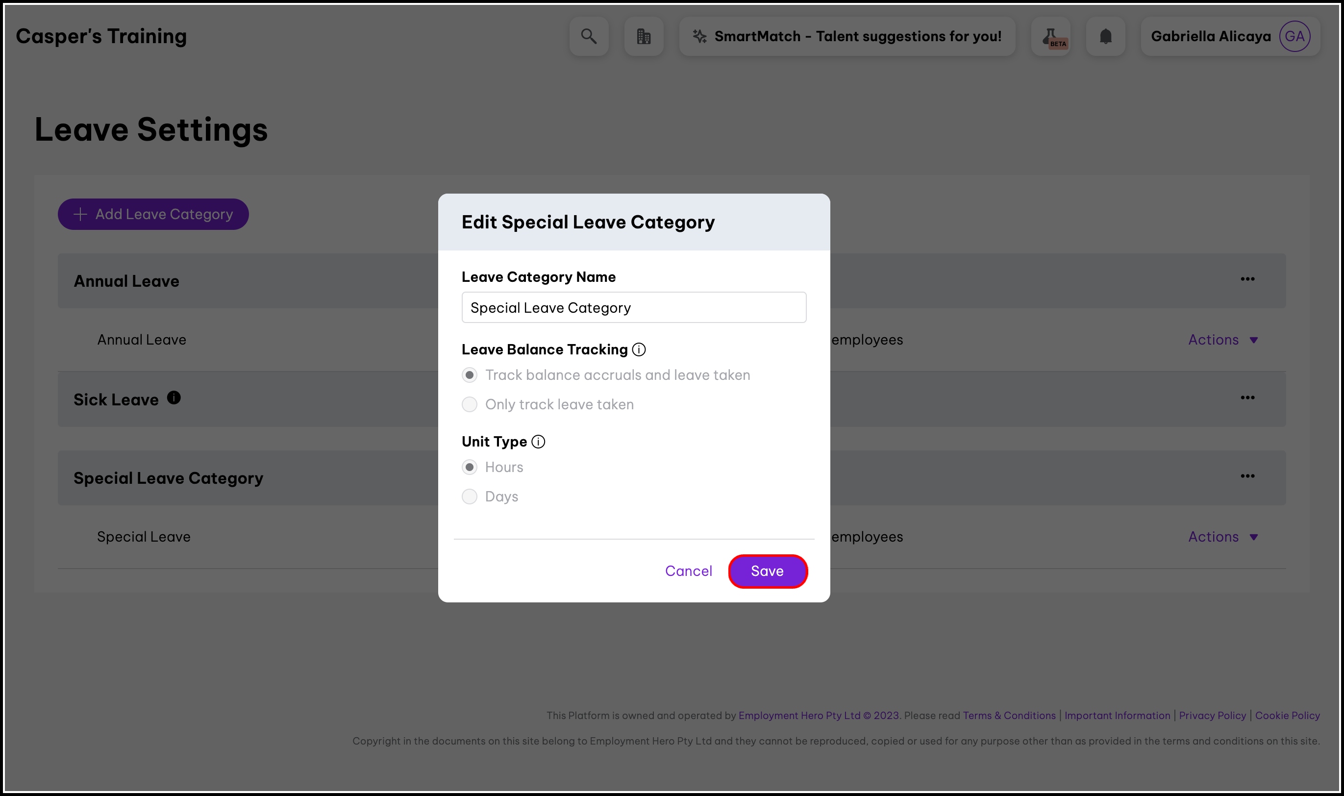 The article is for organisations that use the HR platform as a standalone. If you are a HR and payroll connected org, please refer to this article: Managing leave categories via the HR platform | HR & Payroll connected orgs.