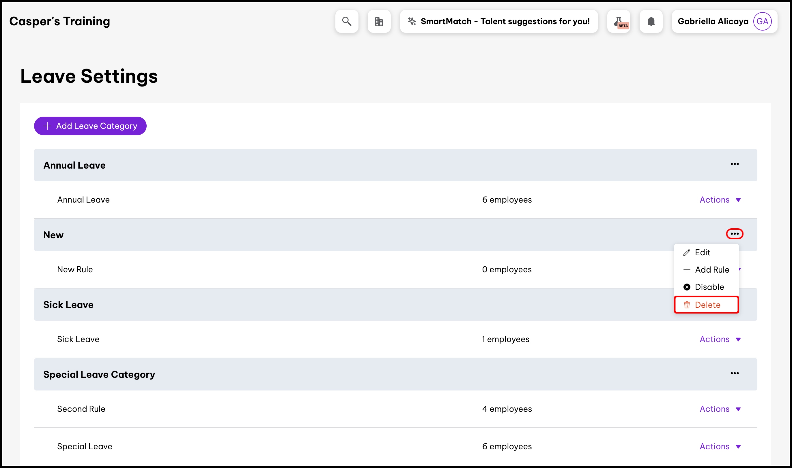 Leave categories allow your employees to submit time off against a pre-defined criteria. They help you track what type of leave your employees are taking and the balance they have accrued. This lets your organisation manage and report on employee leave within your business. You can use the feature to create leave categories, the policies used to accrue leave, and the employees they apply to. You can also edit a rule or category and delete a record that is no longer needed.