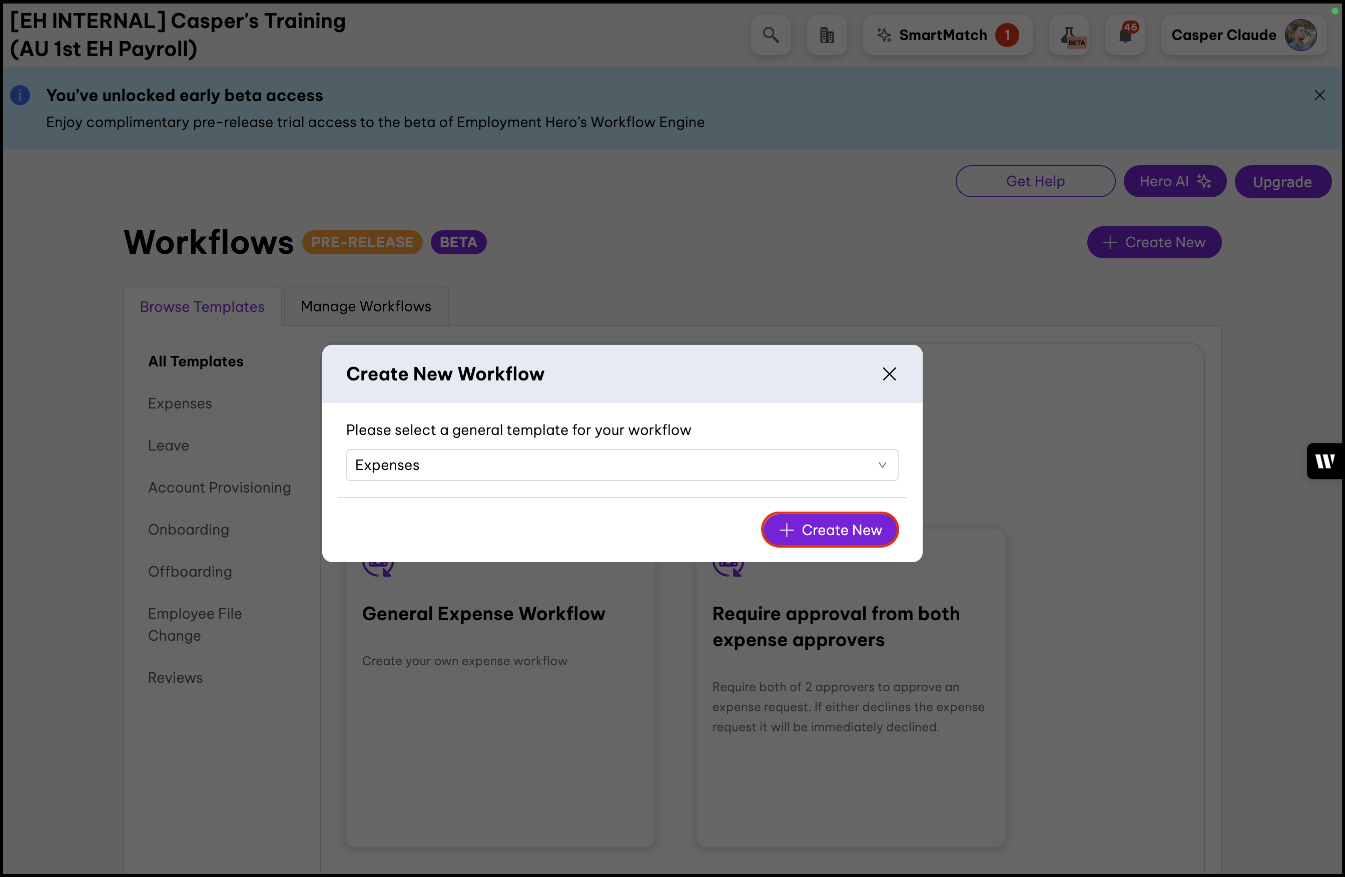 Don't have access to this feature? Contact our friendly sales team here if you’d like to upgrade your account to gain access to expense workflows with Employment Hero today.