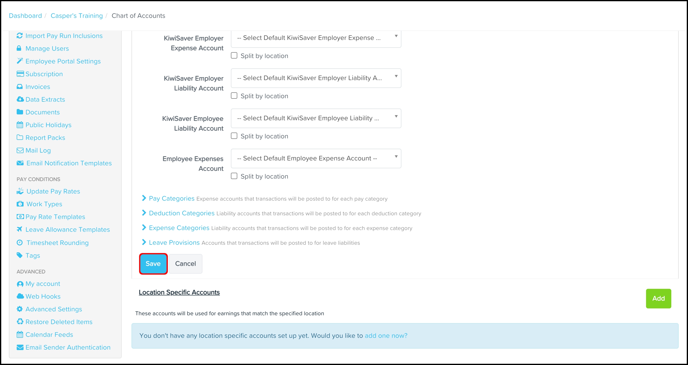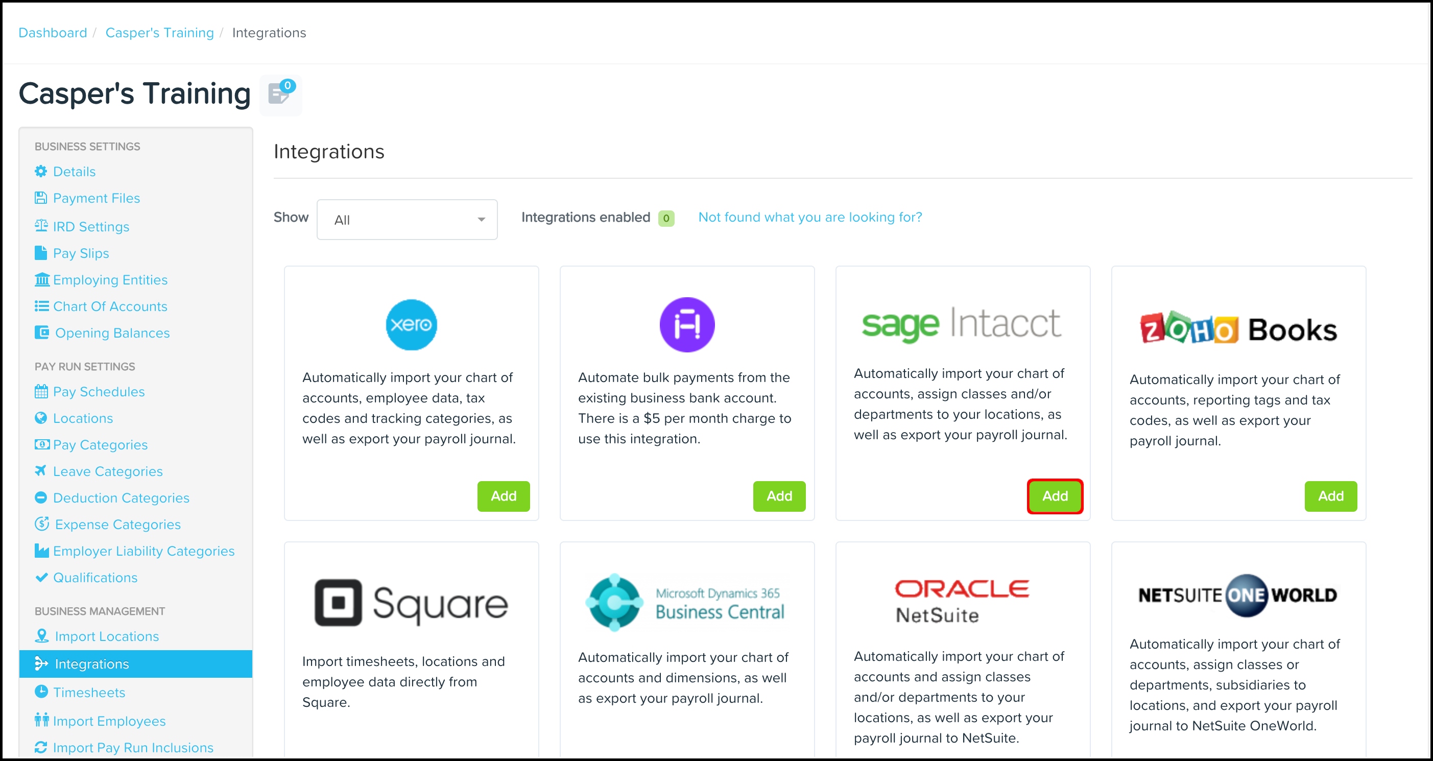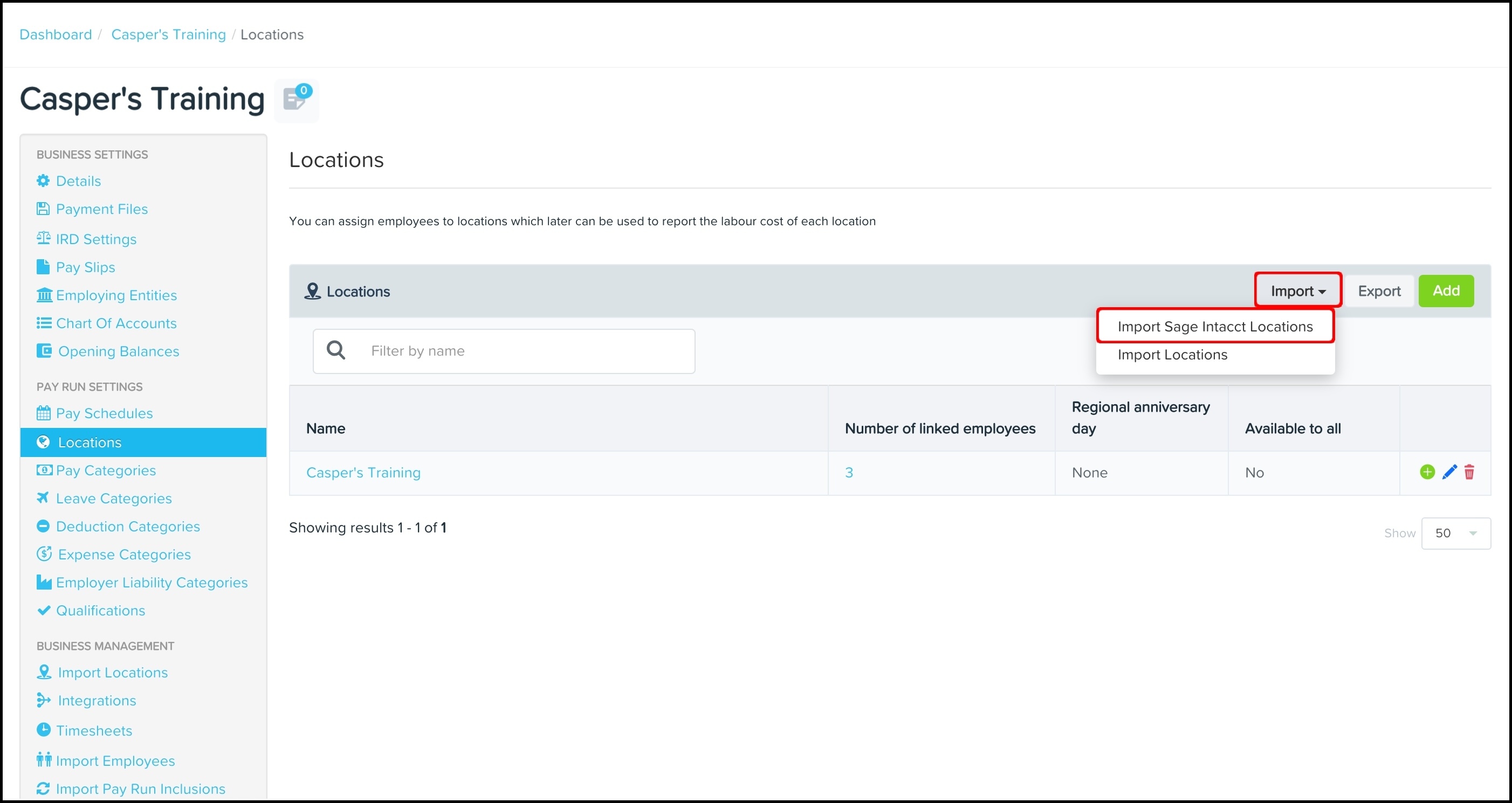 The purpose of assigning these dimensions to your locations is to then assign the locations to your employees, and the pay run totals will be amalgamated and flow through to your dimensions in Sage Intacct with your pay run journal.