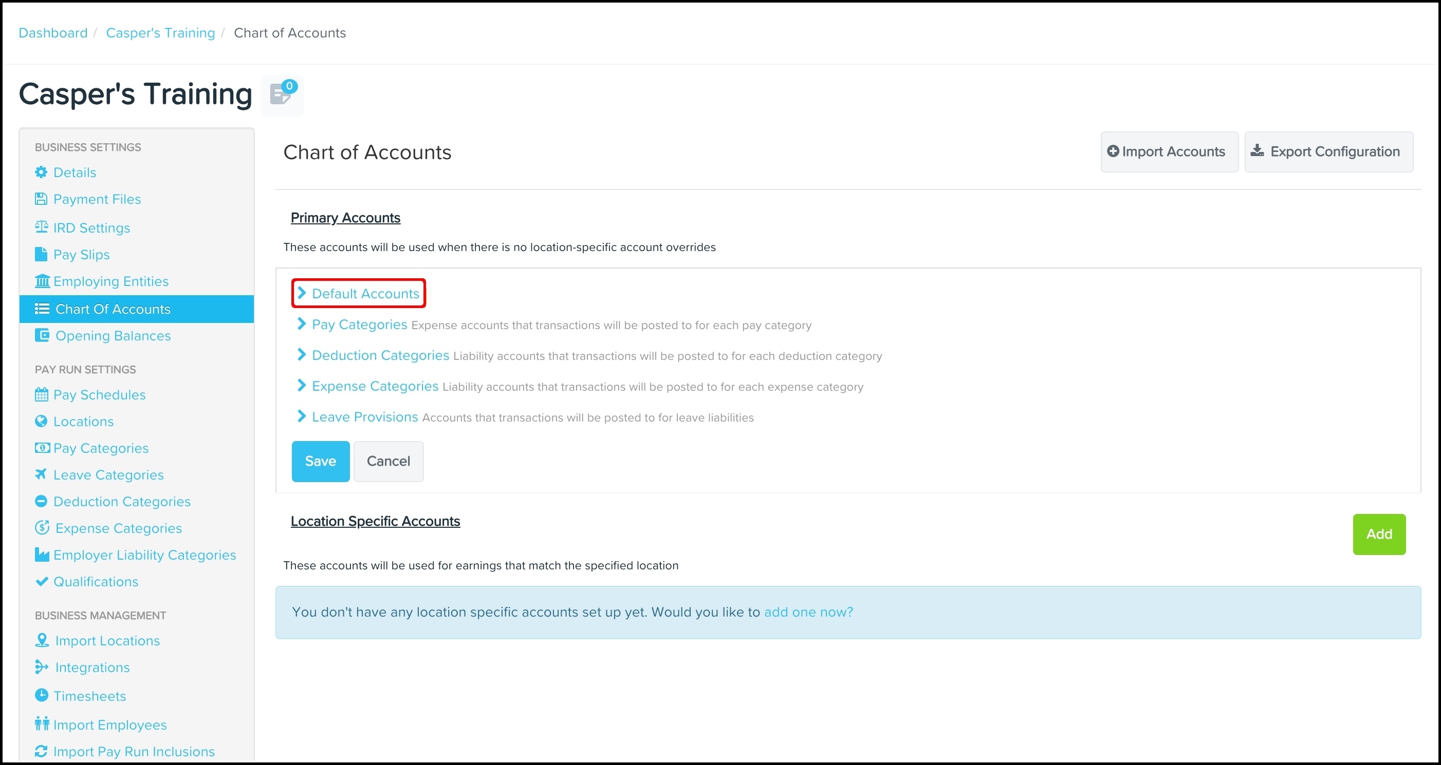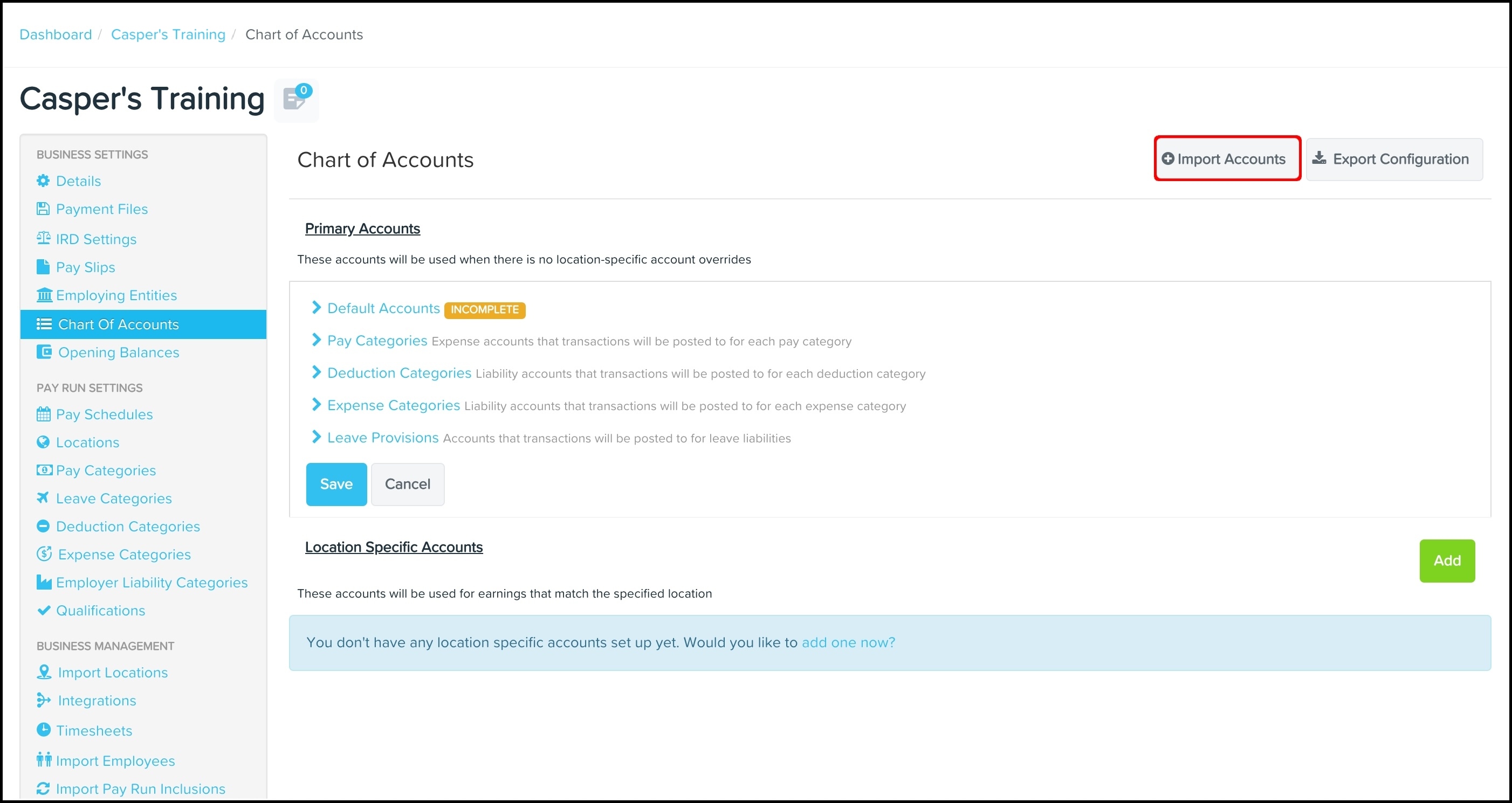 - Under Pay Run Settings, click Locations.