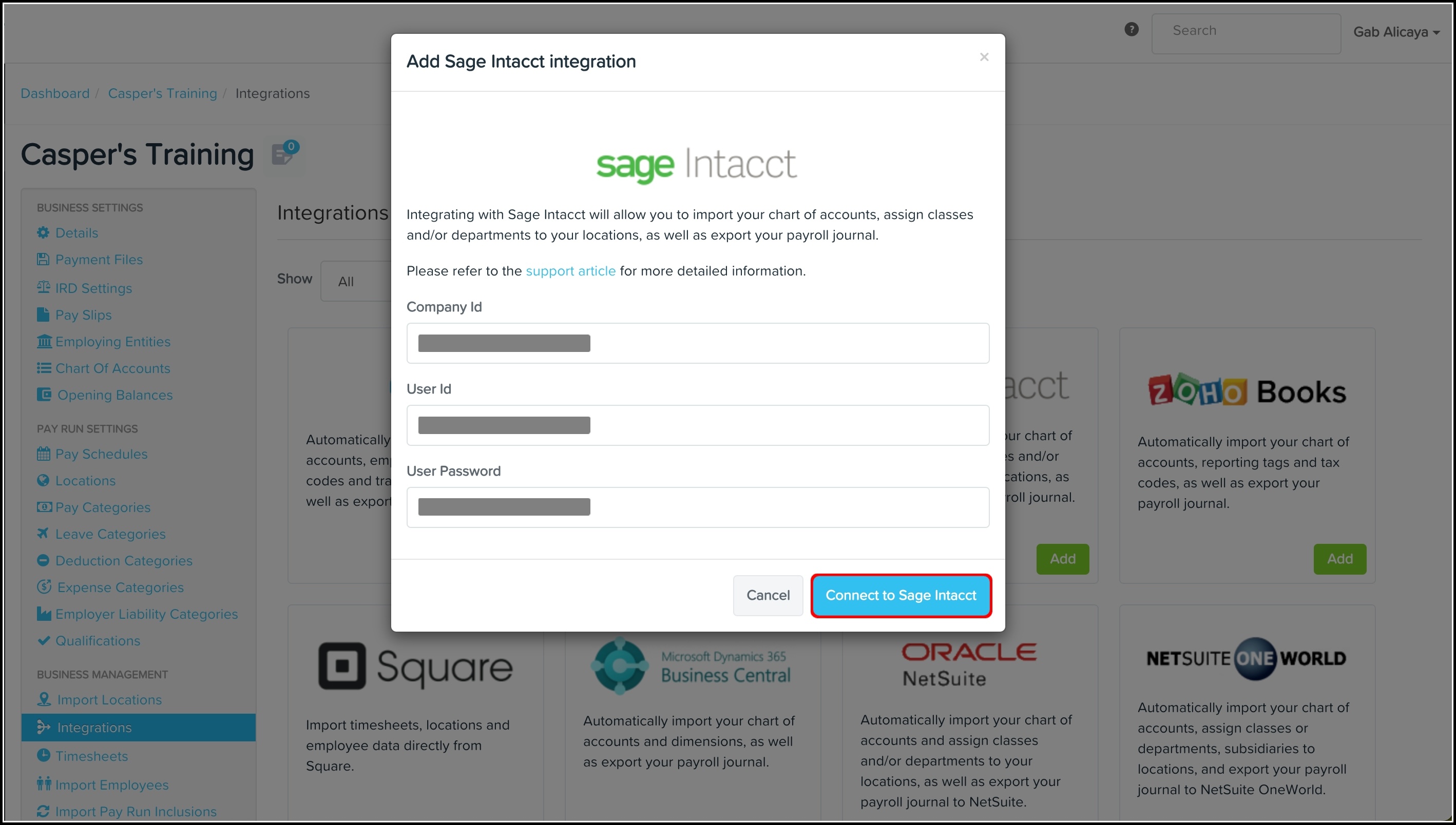 From within your Sage Intacct account, complete the following set-up: