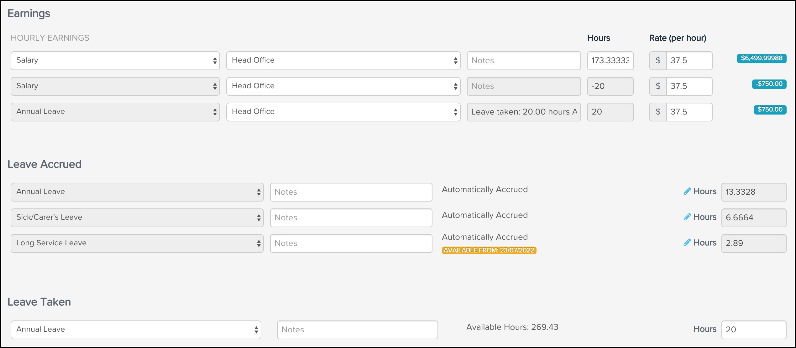 screenshot showing leave accrued fields