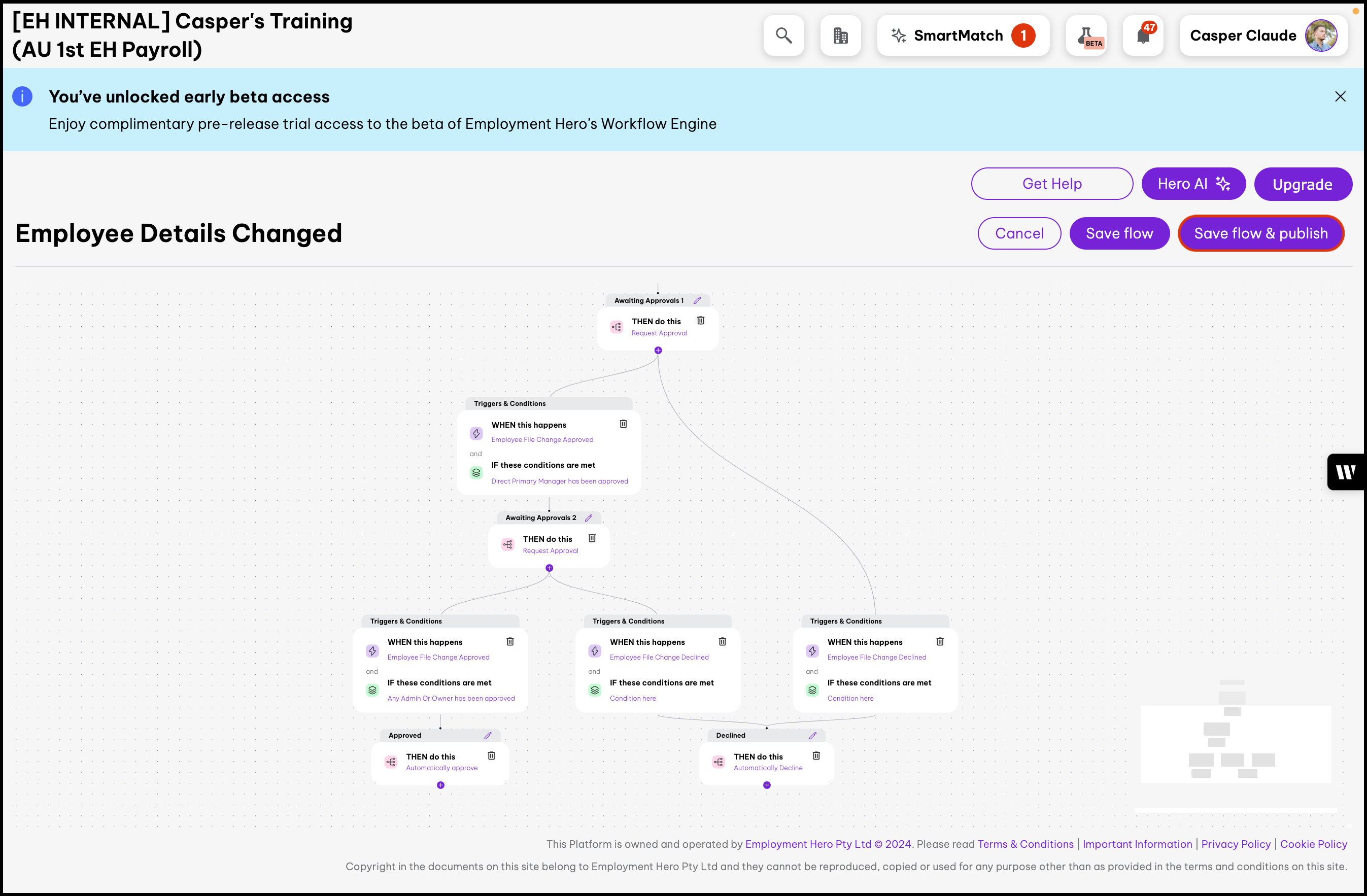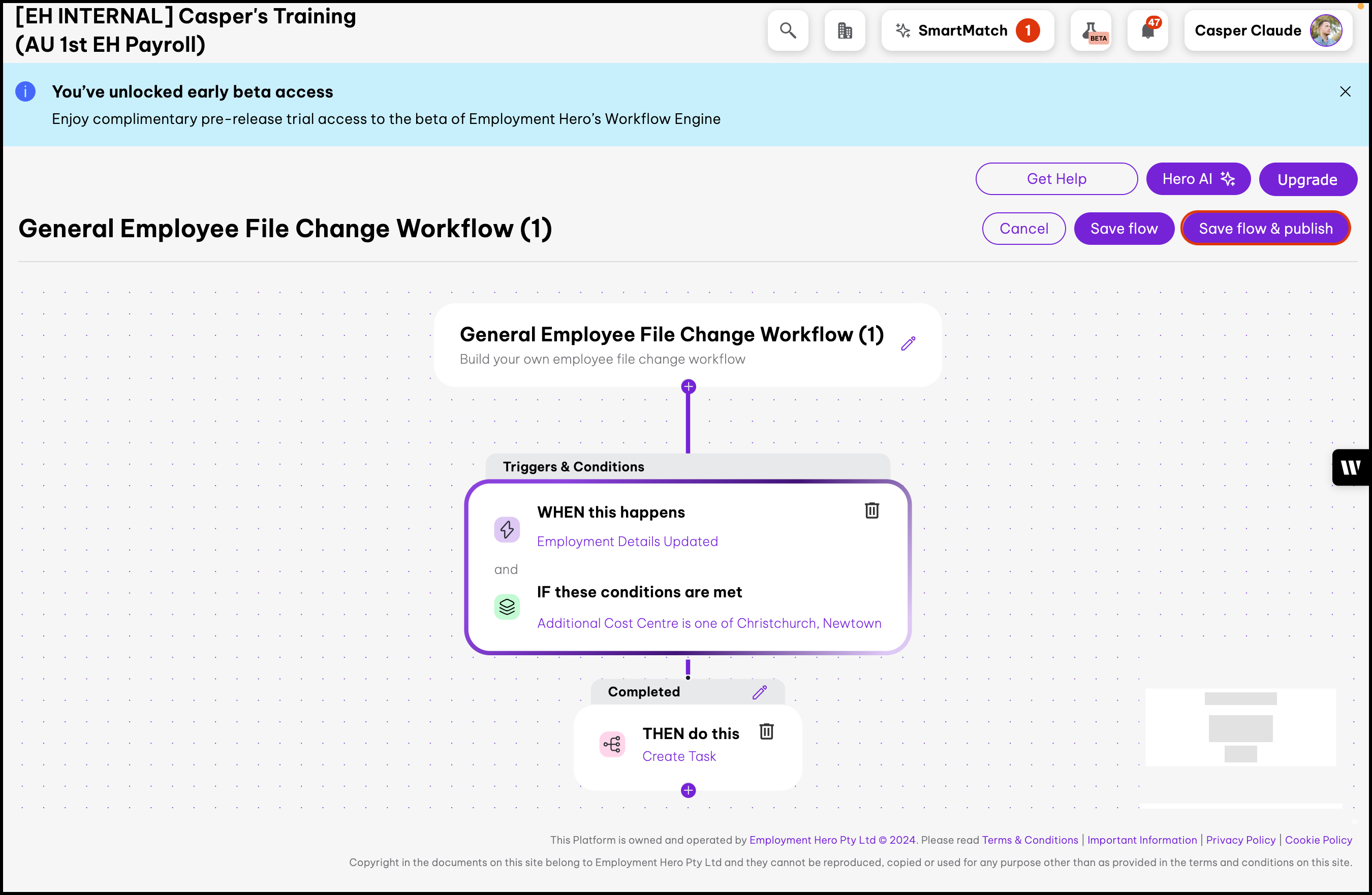 The Employee File Change Workflows feature lets you create a set of steps that Employment Hero will take regarding expense claims. Each step follows the When-If-Then sequence, which is like this: