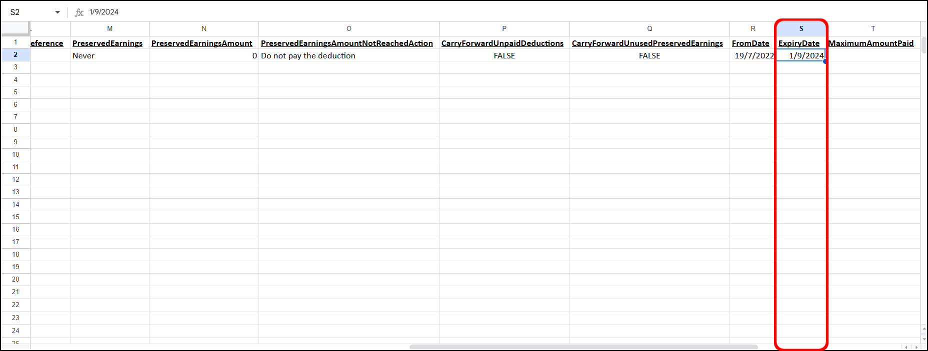 - In the spreadsheet file you have downloaded, update all of the employee's SHG donations with an expiry date. Please schedule an expiry date which allows for about 1 to 2 working days for the platform to turn this feature on for affected businesses.