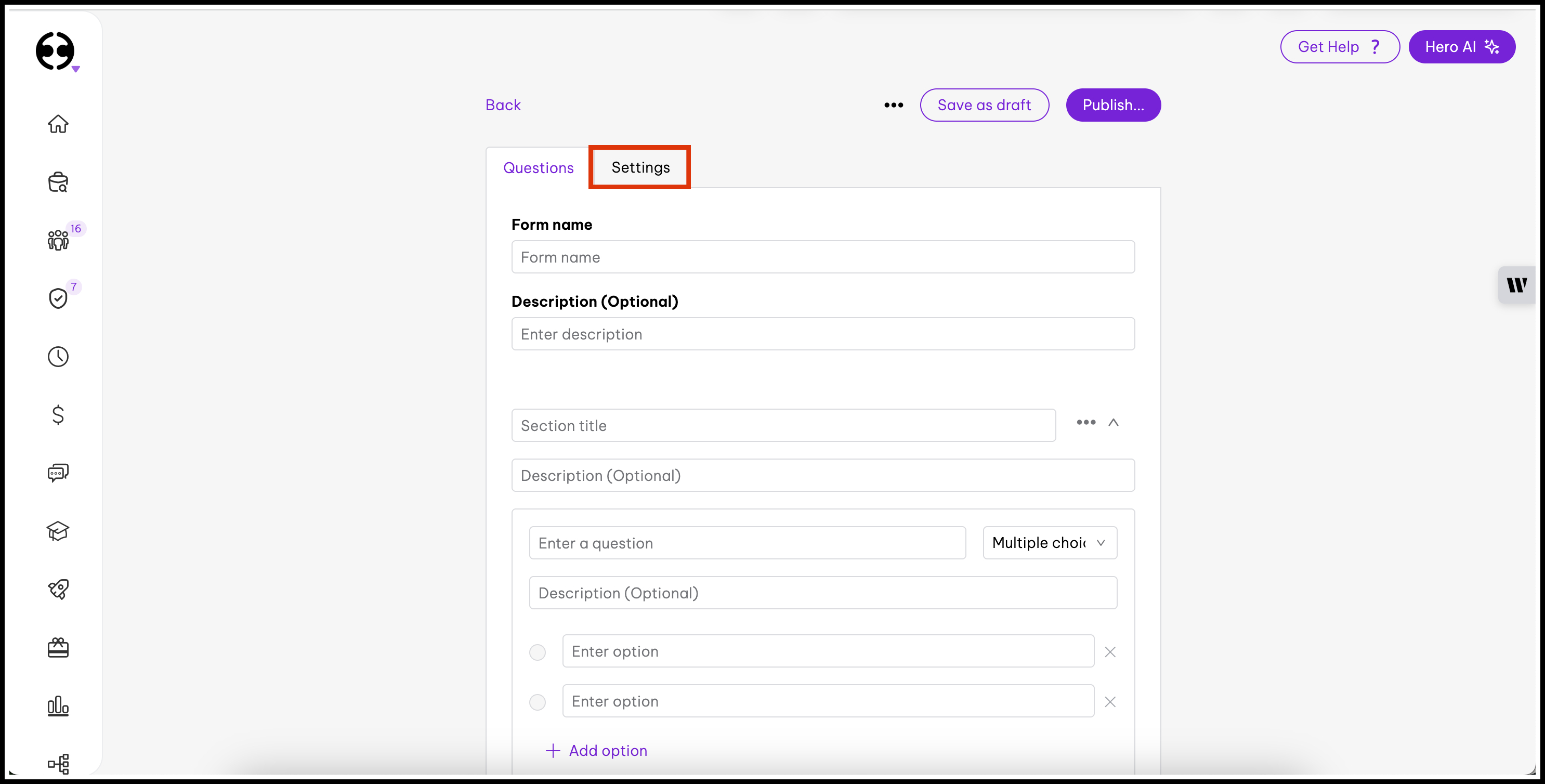 - On the left-hand side menu, click on Settings.