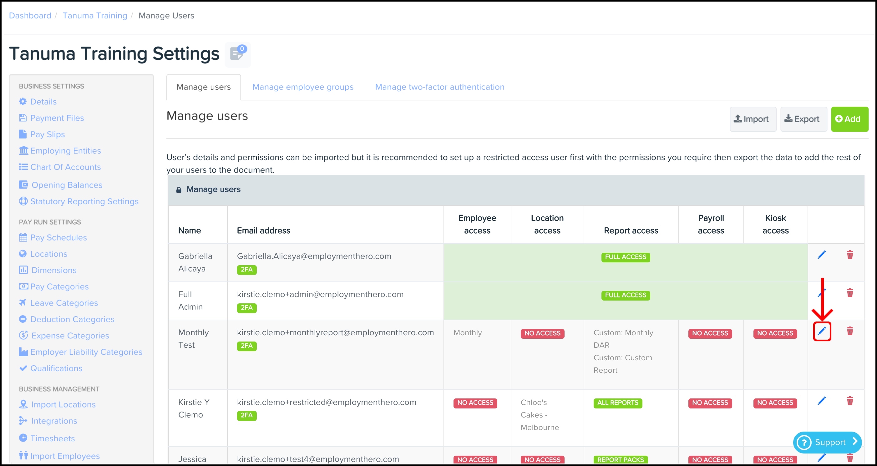 - Under Business Management, click Manage Users.