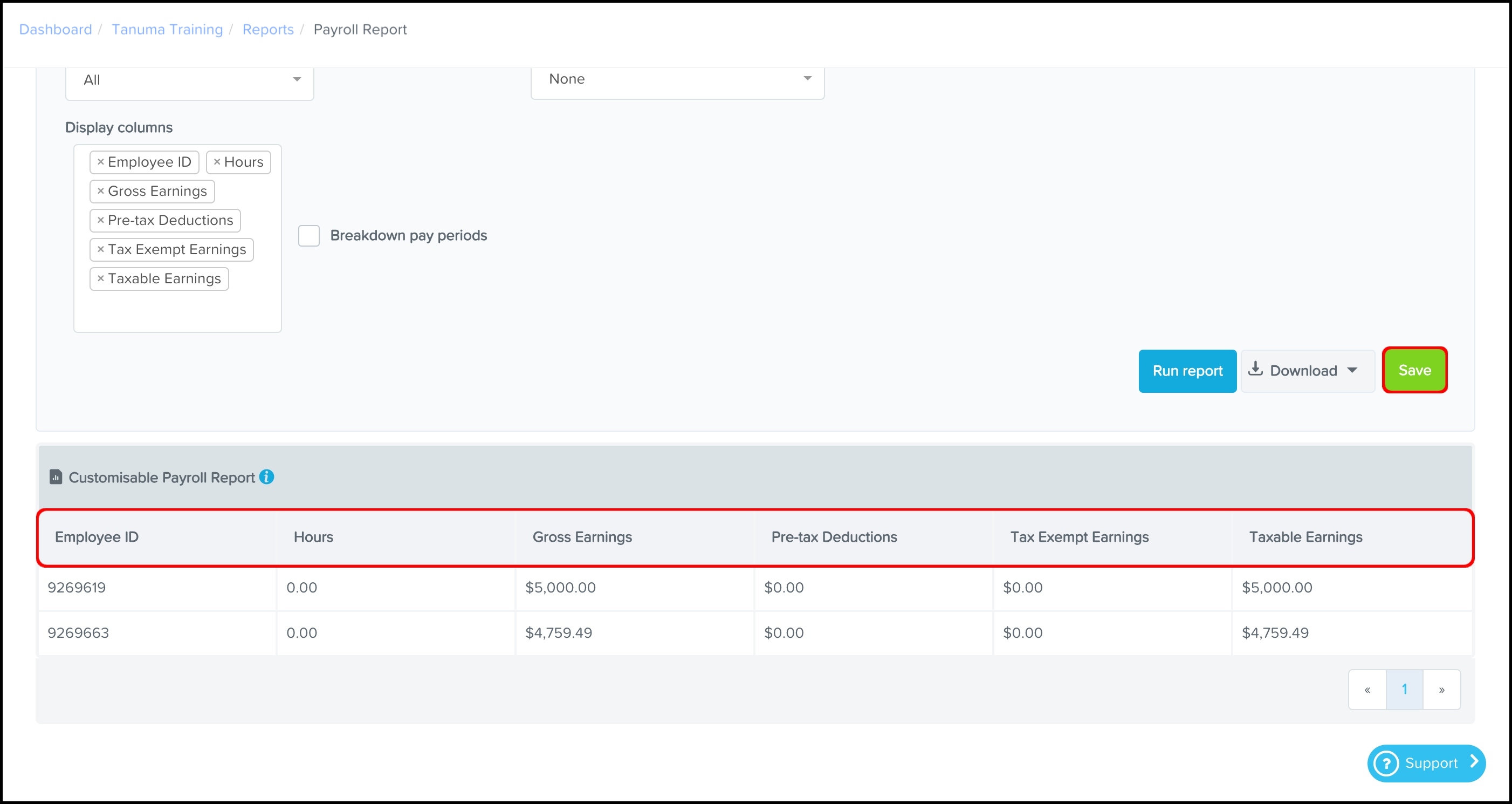 - The report will now show within the list of reports under the Payroll heading.