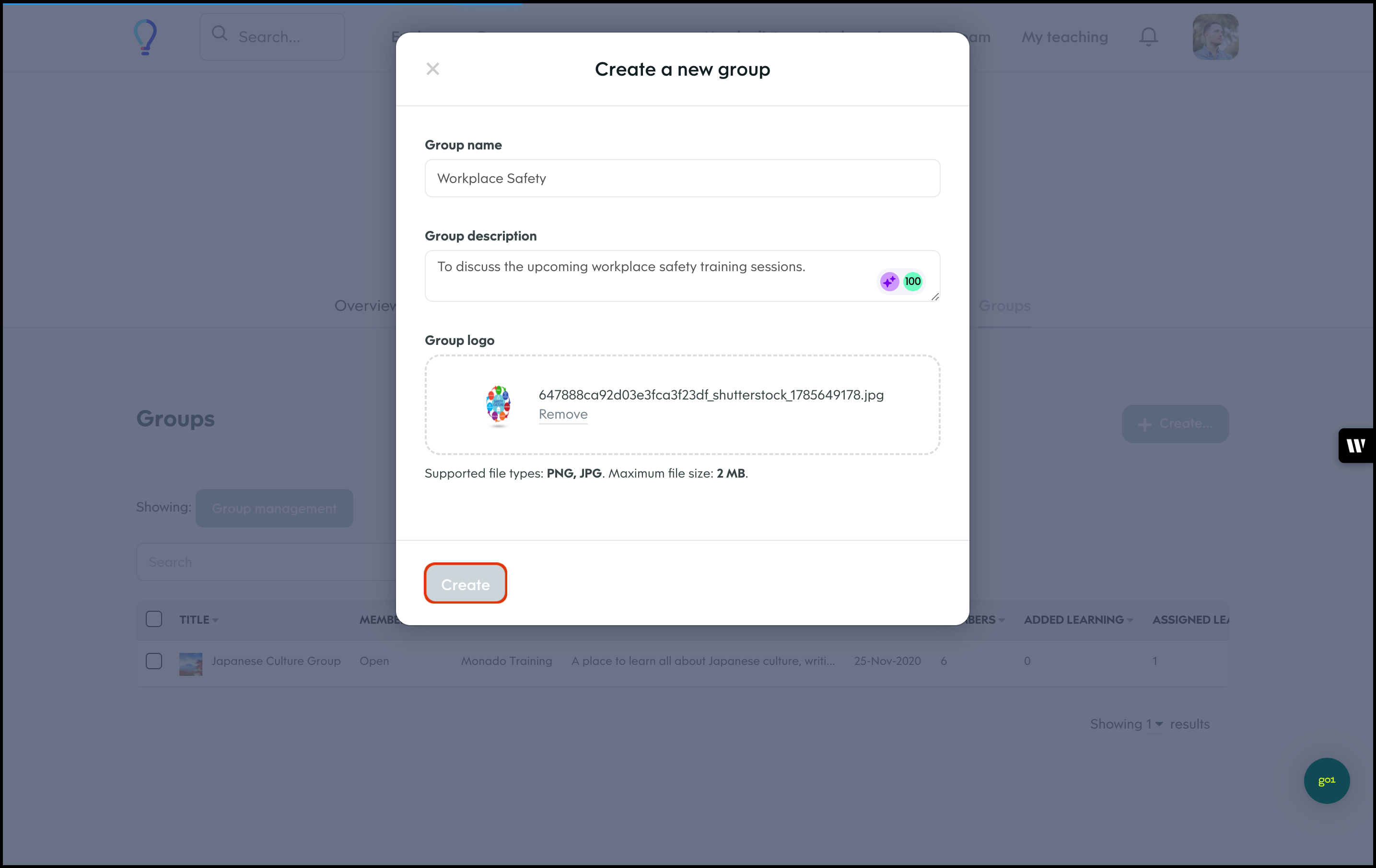 The Group Management feature allows you to create your organisation's learning groups a user can join to discuss certain topics or training needs.. You can also use this feature to setup the membership details, edit the information, and setup the visibility of the group. Lastly, you can also use this feature to delete a group you no longer need or export the list of groups on your learning platform.