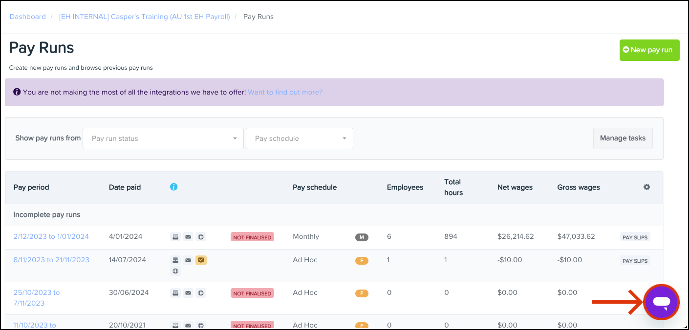 - Click the purple chat icon towards the bottom right of the page.