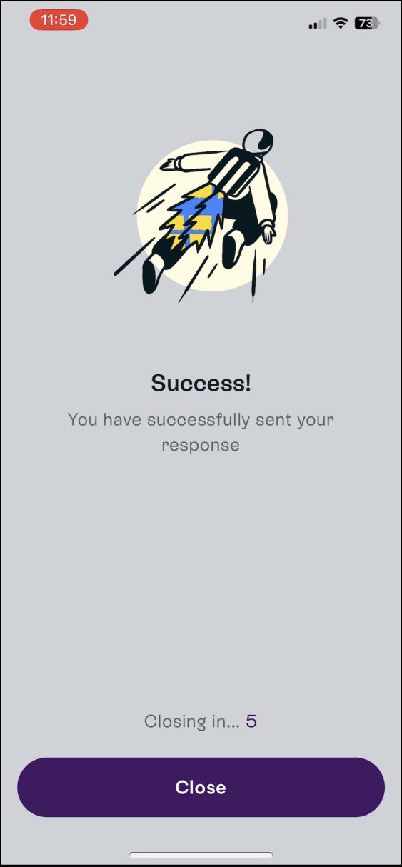 - After successfully logging in, you will receive a message regarding a push notification being sent to your Employment Hero Work app.