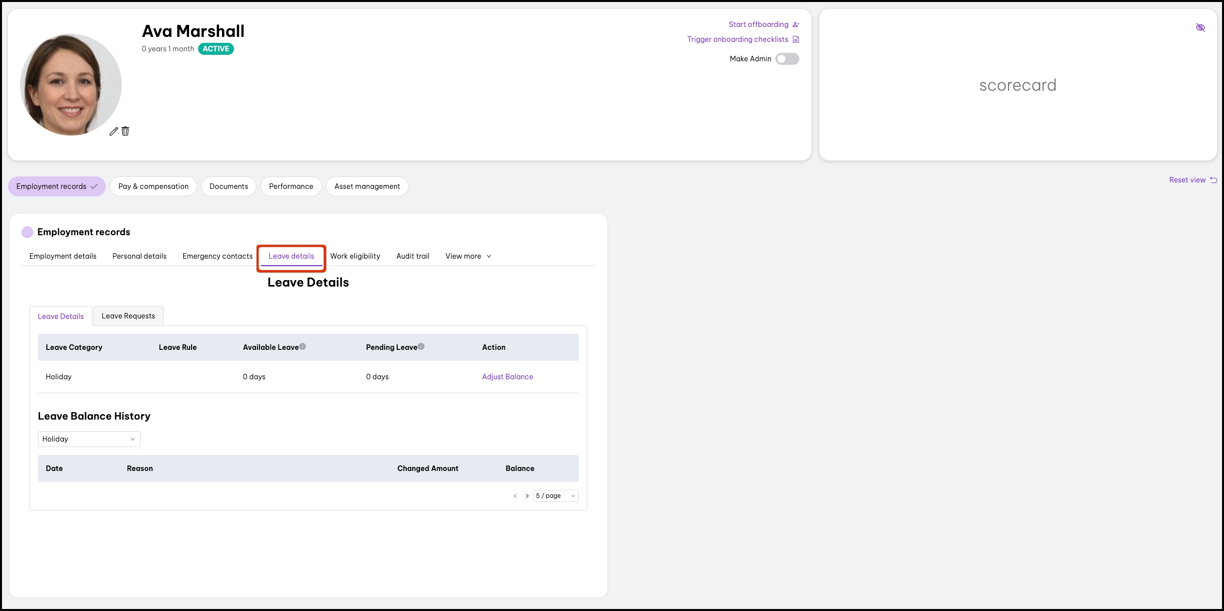 - Adjust leave balances: This feature allows you to adjust leave balances via the leave management feature.
