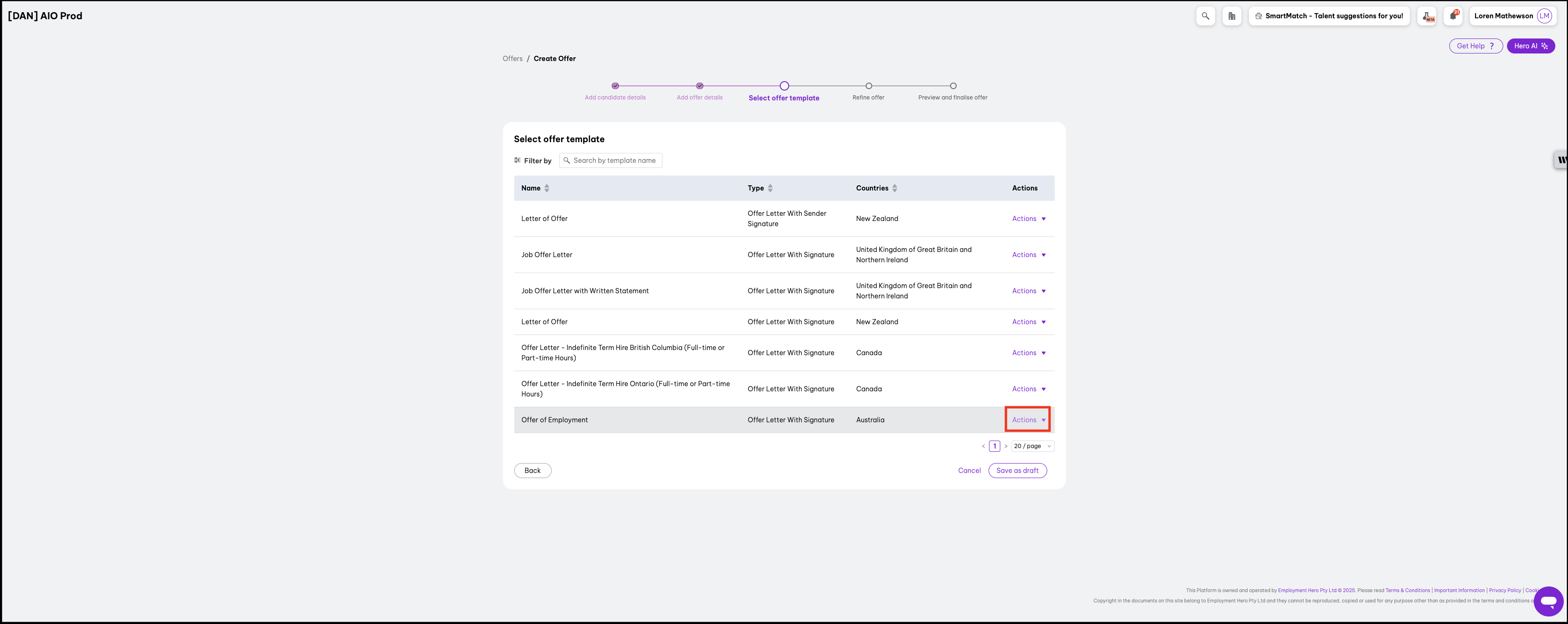 - Under the Select Offer Template subheading, click on Actions on the template you want to use.
