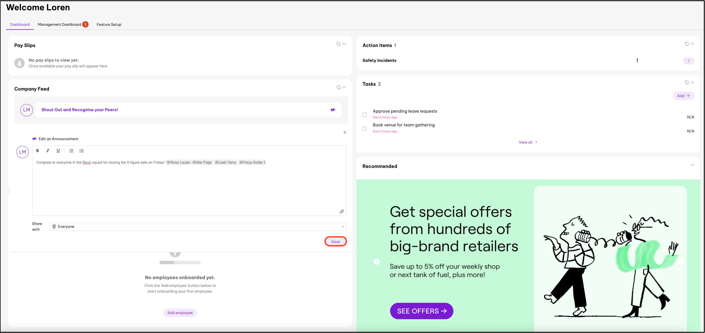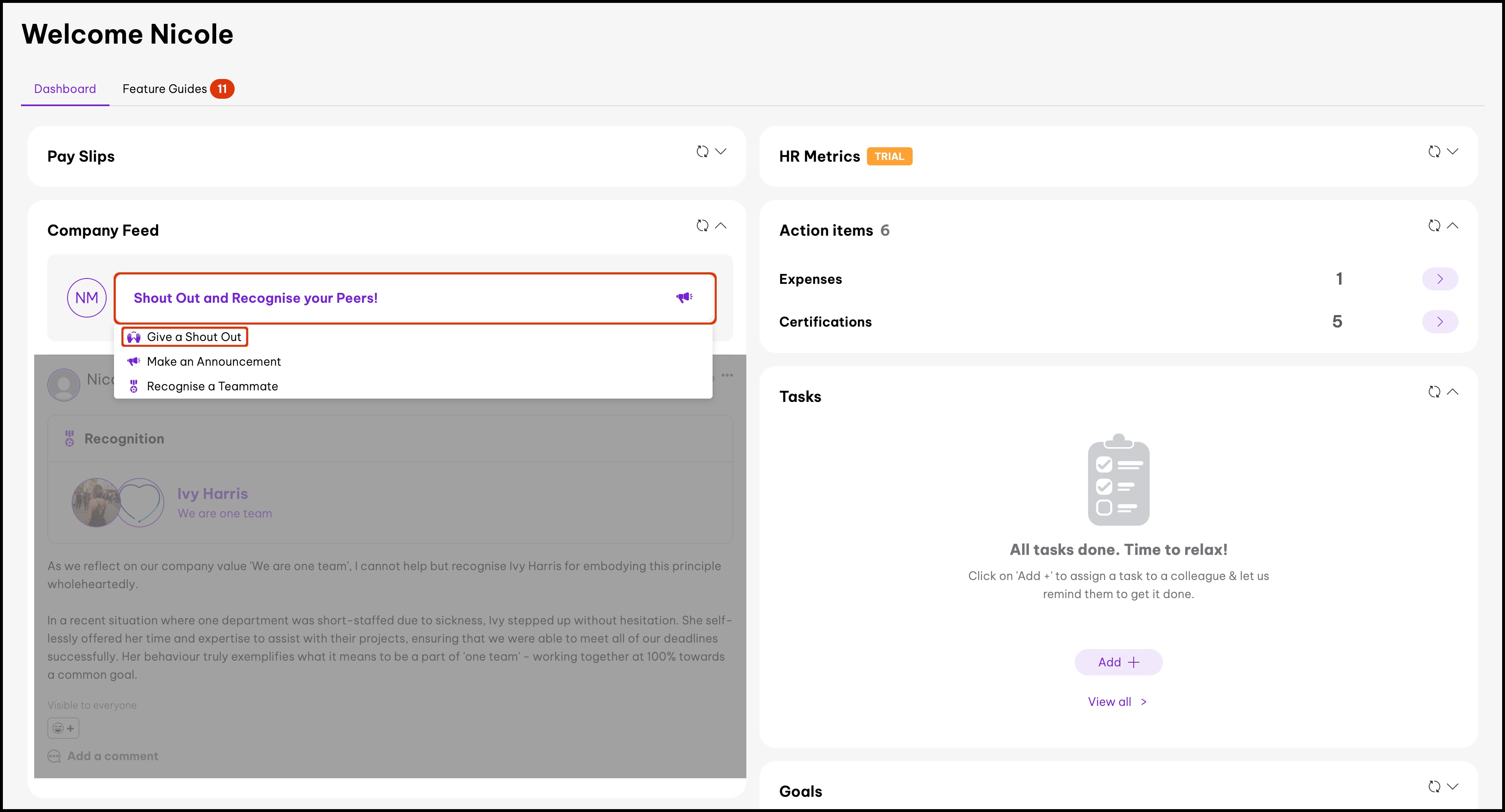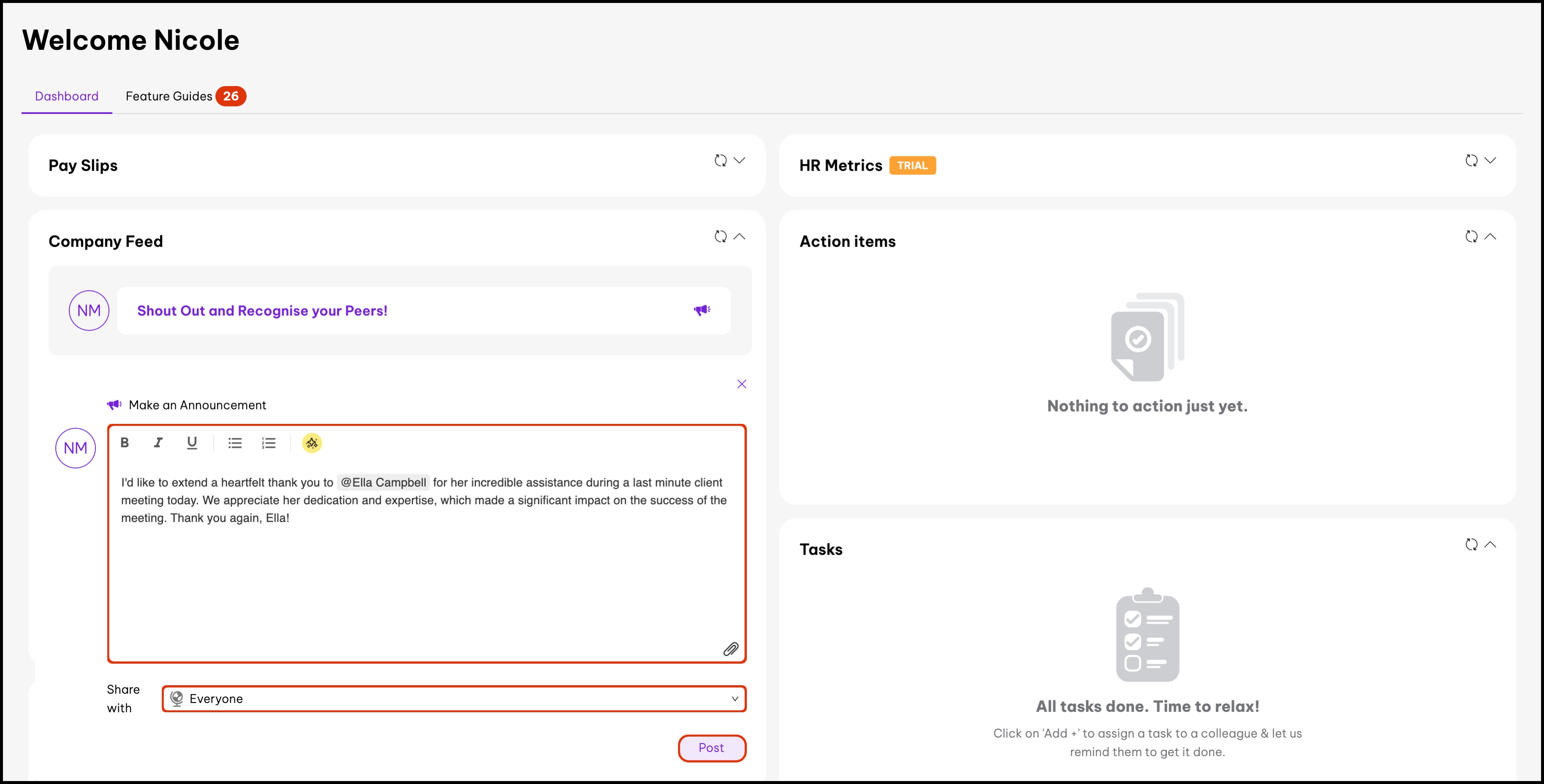 - Everyone: Every employee in your organisation will see the shout-out.