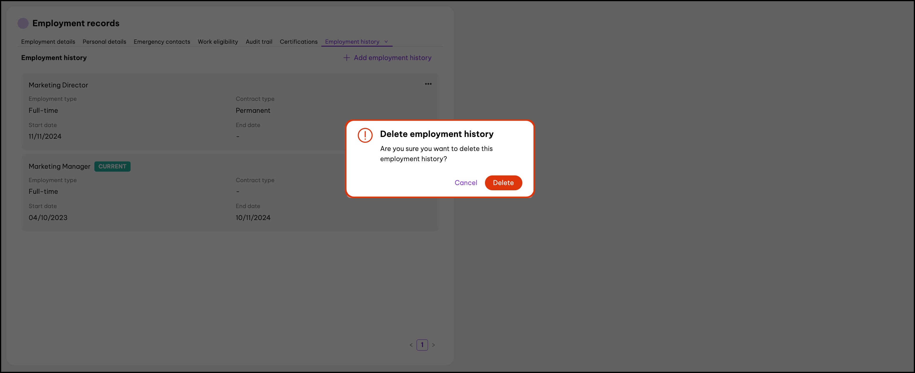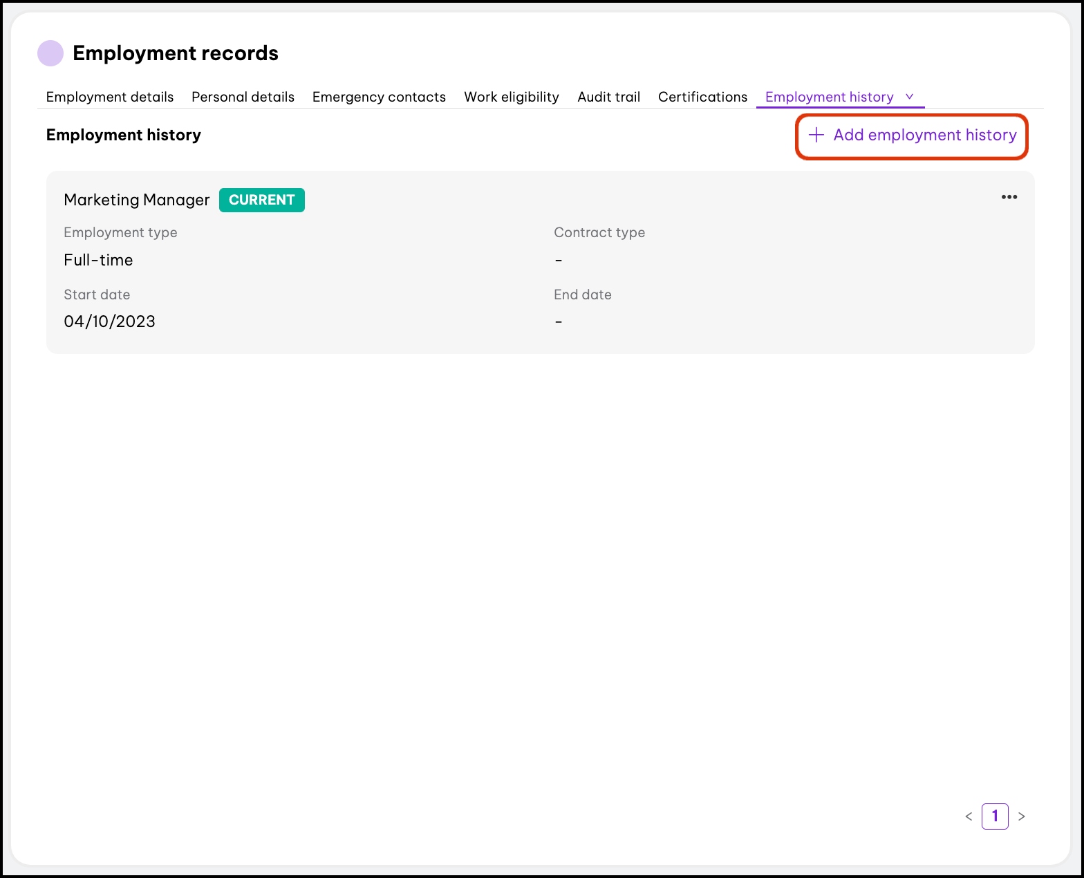 The Employment History feature is where you update these details if they change, with the HR platform reflecting these changes throughout the entire platform. It means there is only one place you need to update your details if they change, making sure your employee records on the HR platform are always up to date.