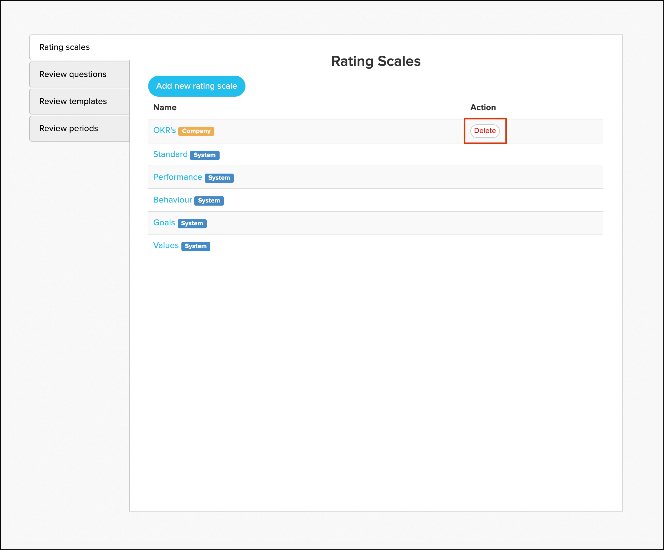 4. Click the Add New Rating Scale button.