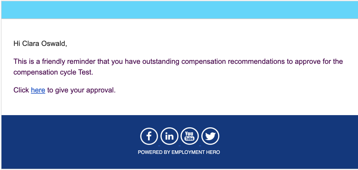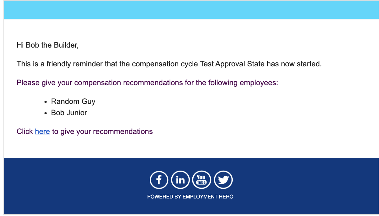 スクリーンショット 2023-11-06 午後4.00.01.png An instance of a recommender having had a new compensation cycle start, and they ‌need to give their recommendations Email and a bell notification in platform. Recommender email.