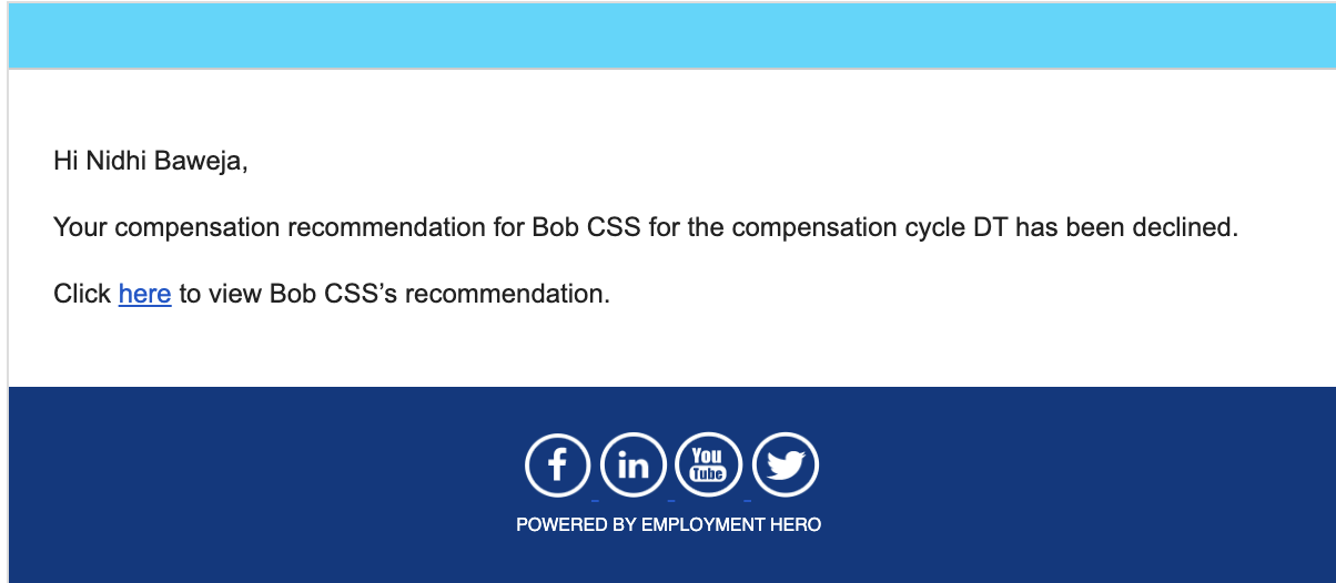 スクリーンショット 2023-11-06 午後4.07.59.png Recommender having their compensation recommendation declined Email and a bell notification in platform. Recommender email.