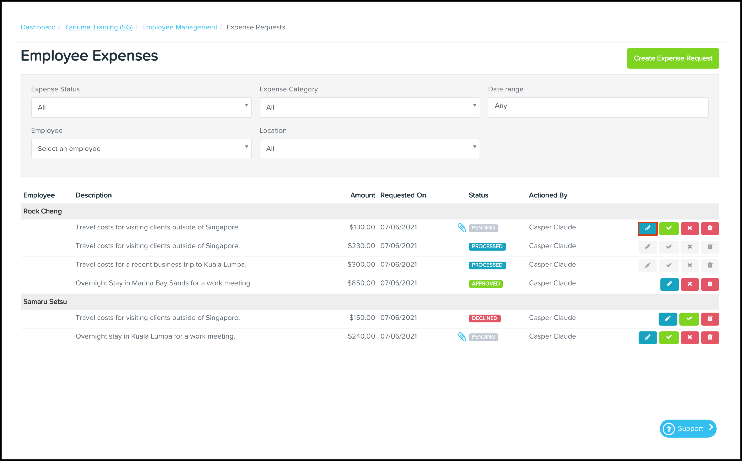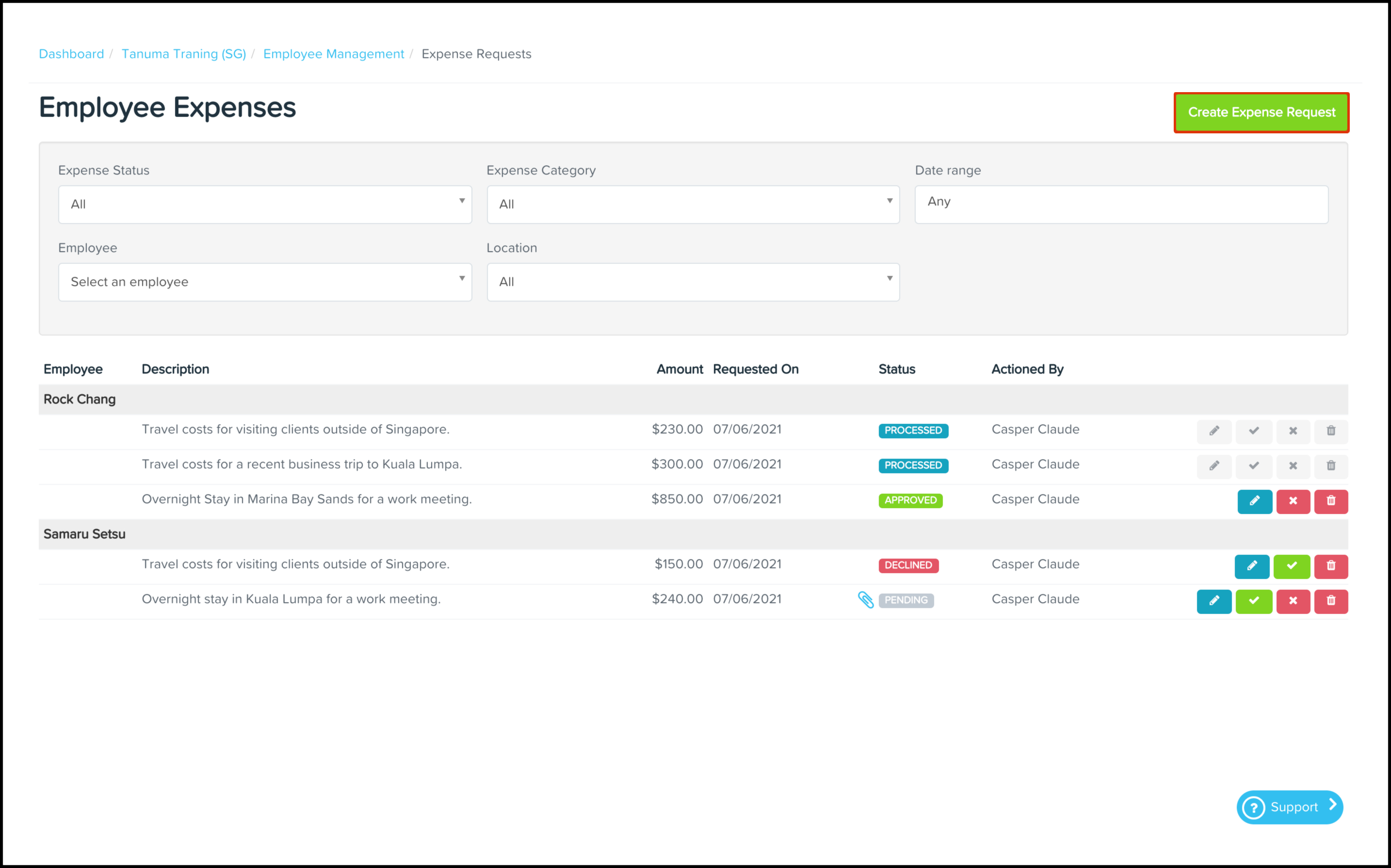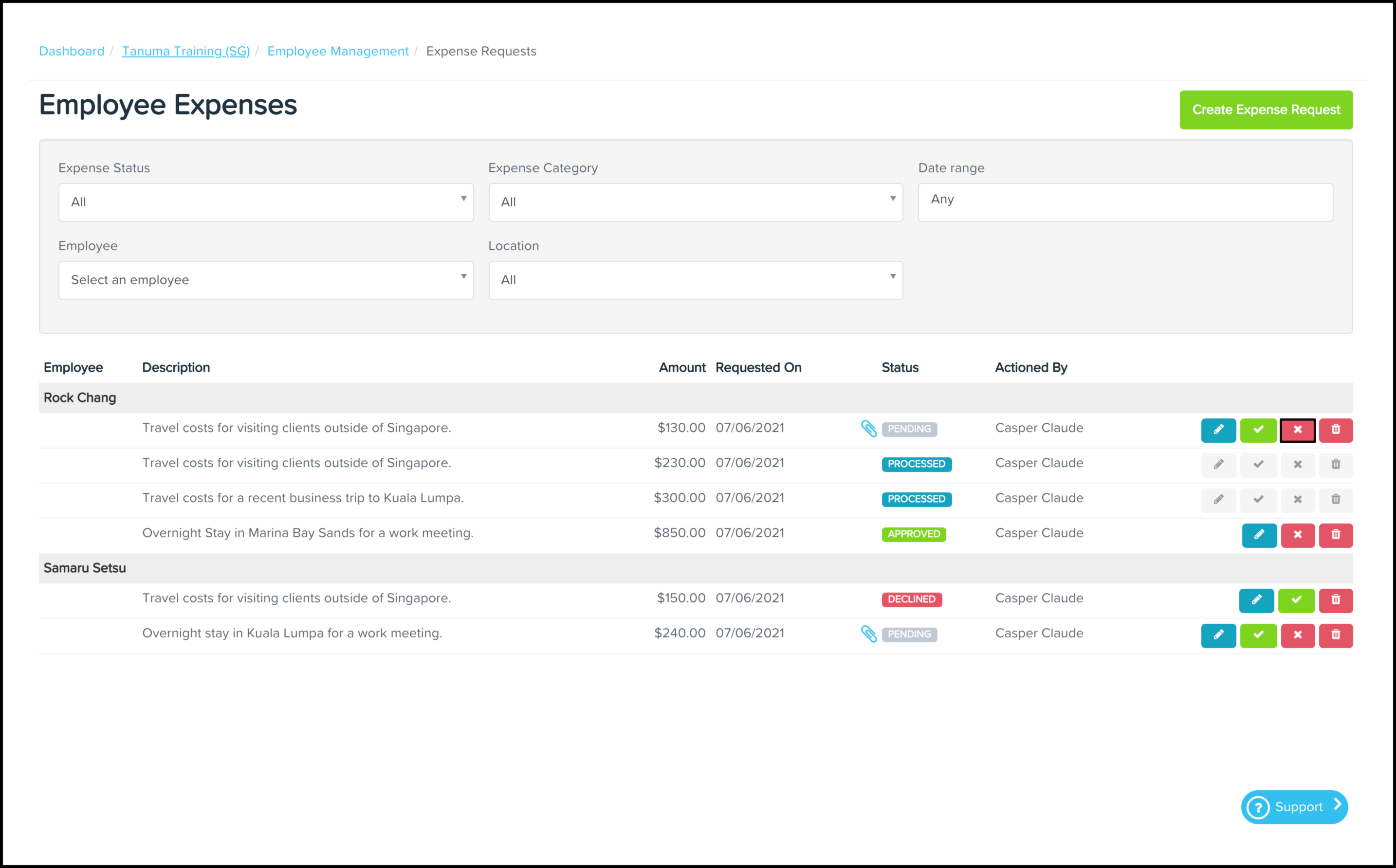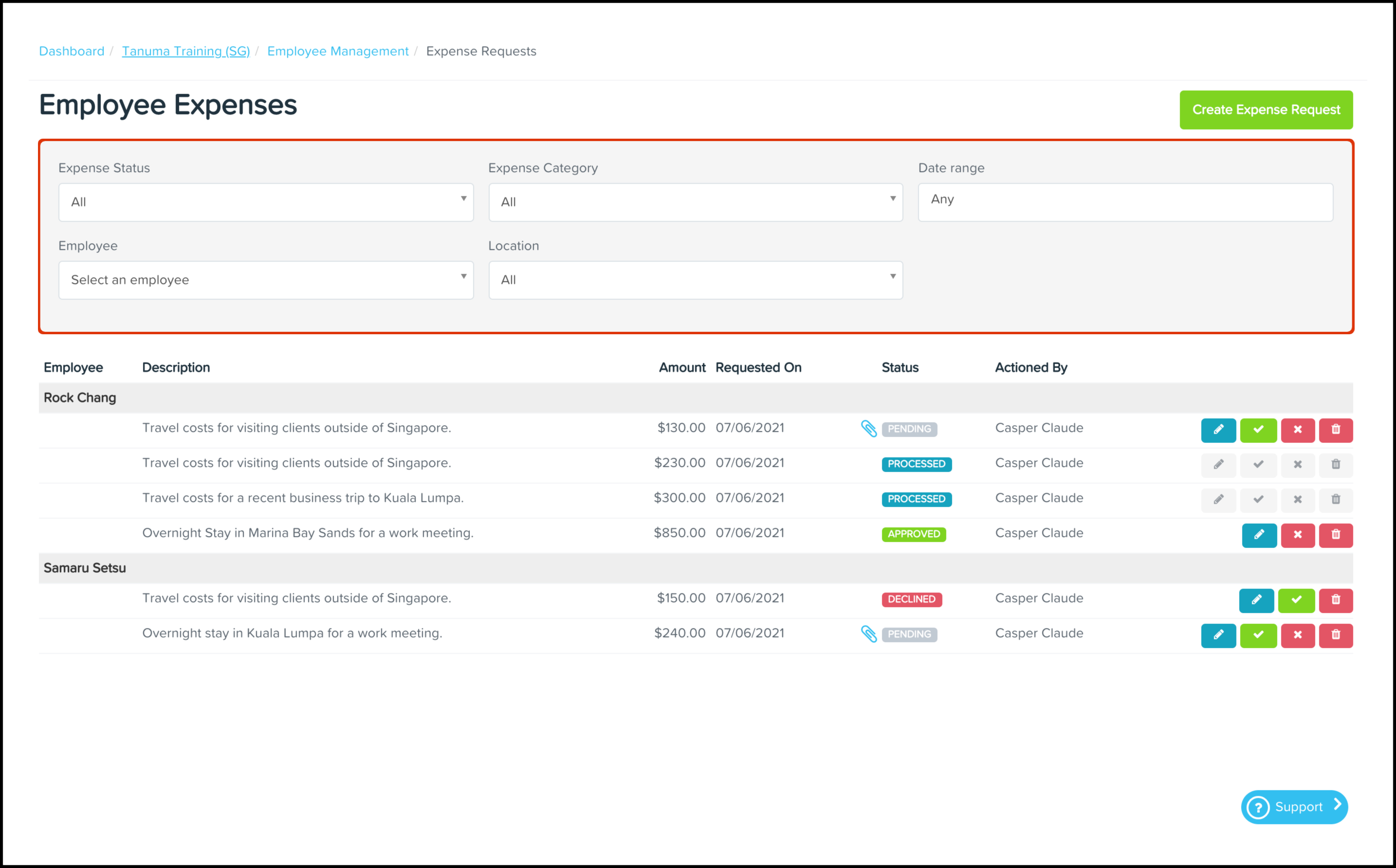 This article shows you how you can use the Expense Management feature to approve or decline employee-submitted expense claims or submit one for an employee. You can also use this feature to edit an expense claim, filter the displayed results, and delete a record that is no longer required.