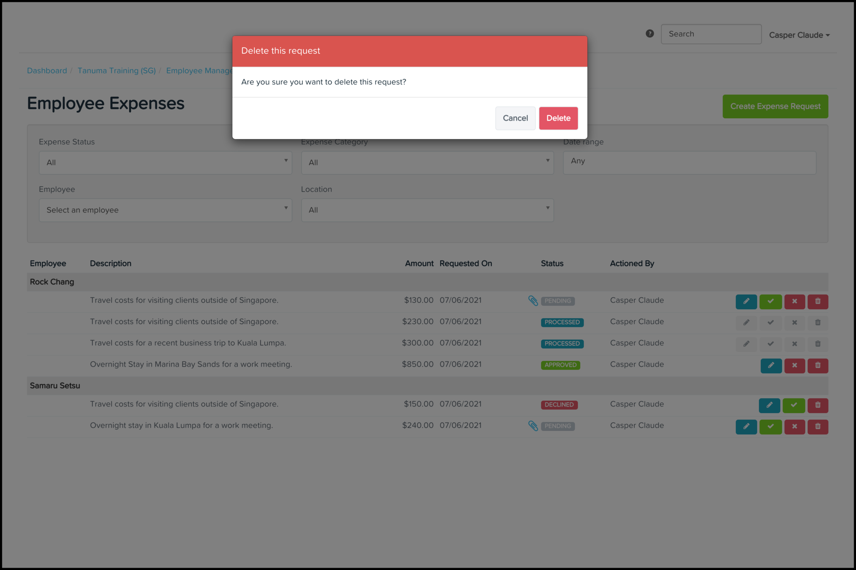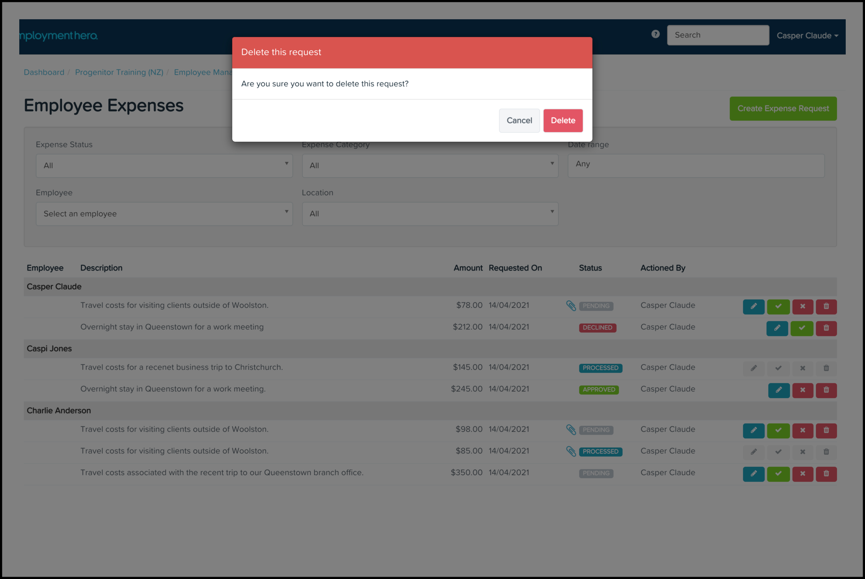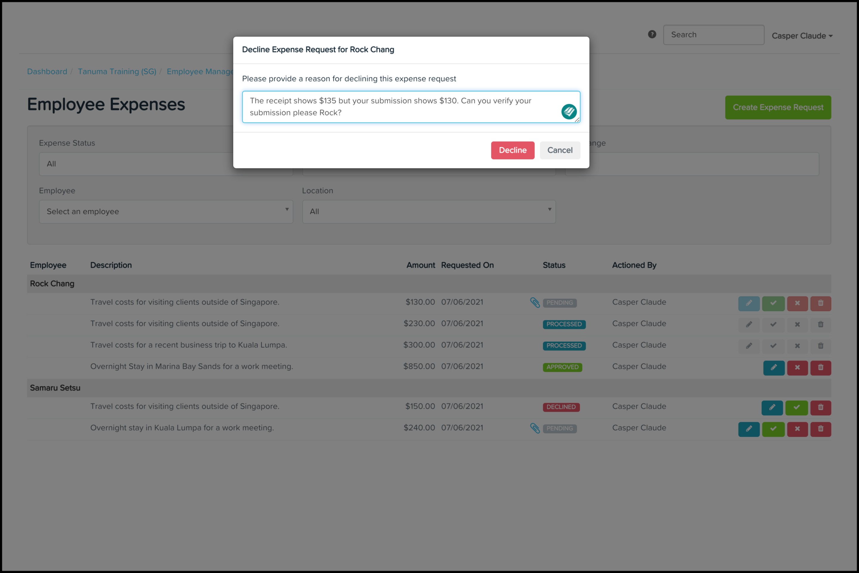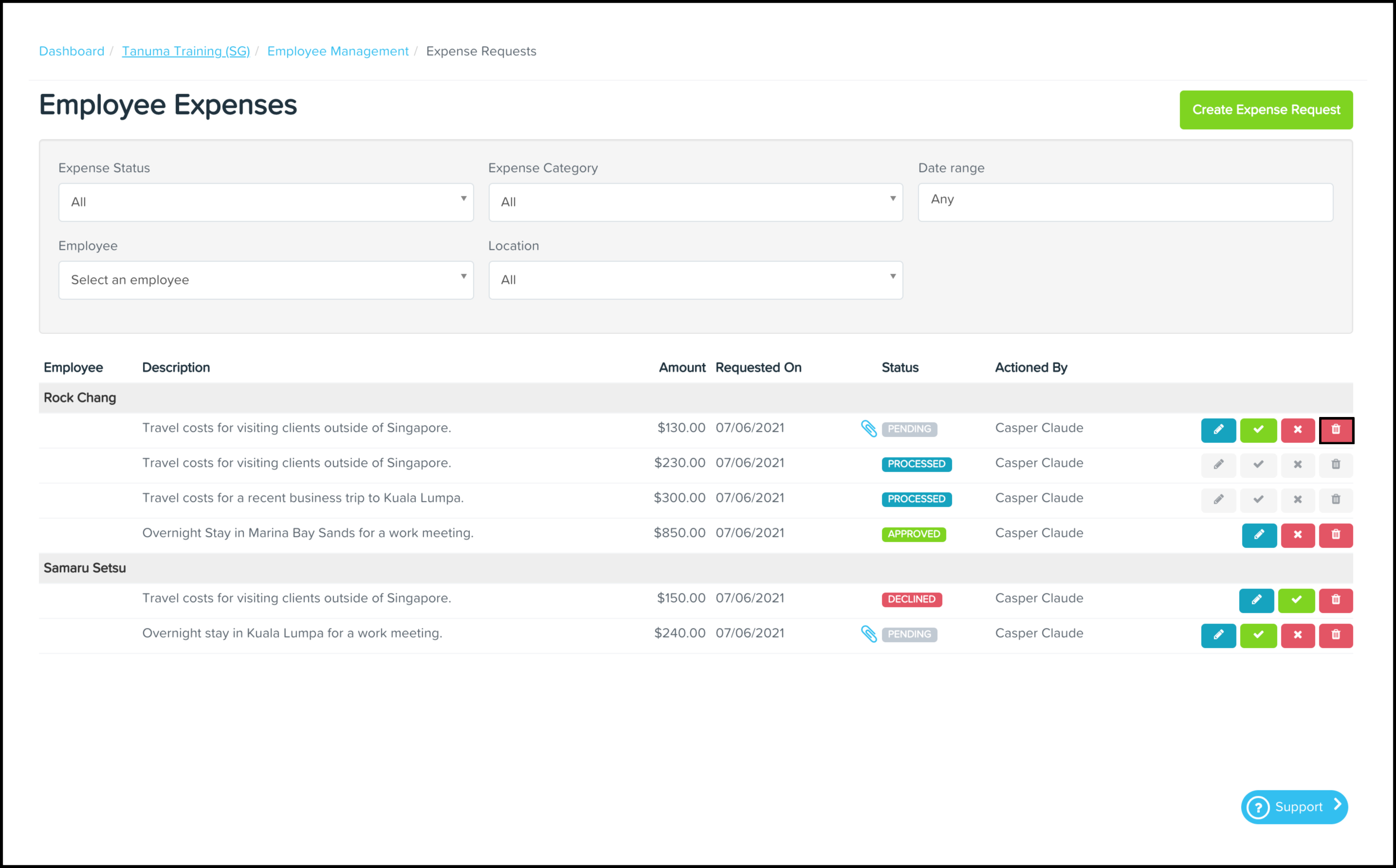 This article shows you how you can use the Expense Management feature to approve or decline employee-submitted expense claims or submit one for an employee. You can also use this feature to edit an expense claim, filter the displayed results, and delete a record that is no longer required.
