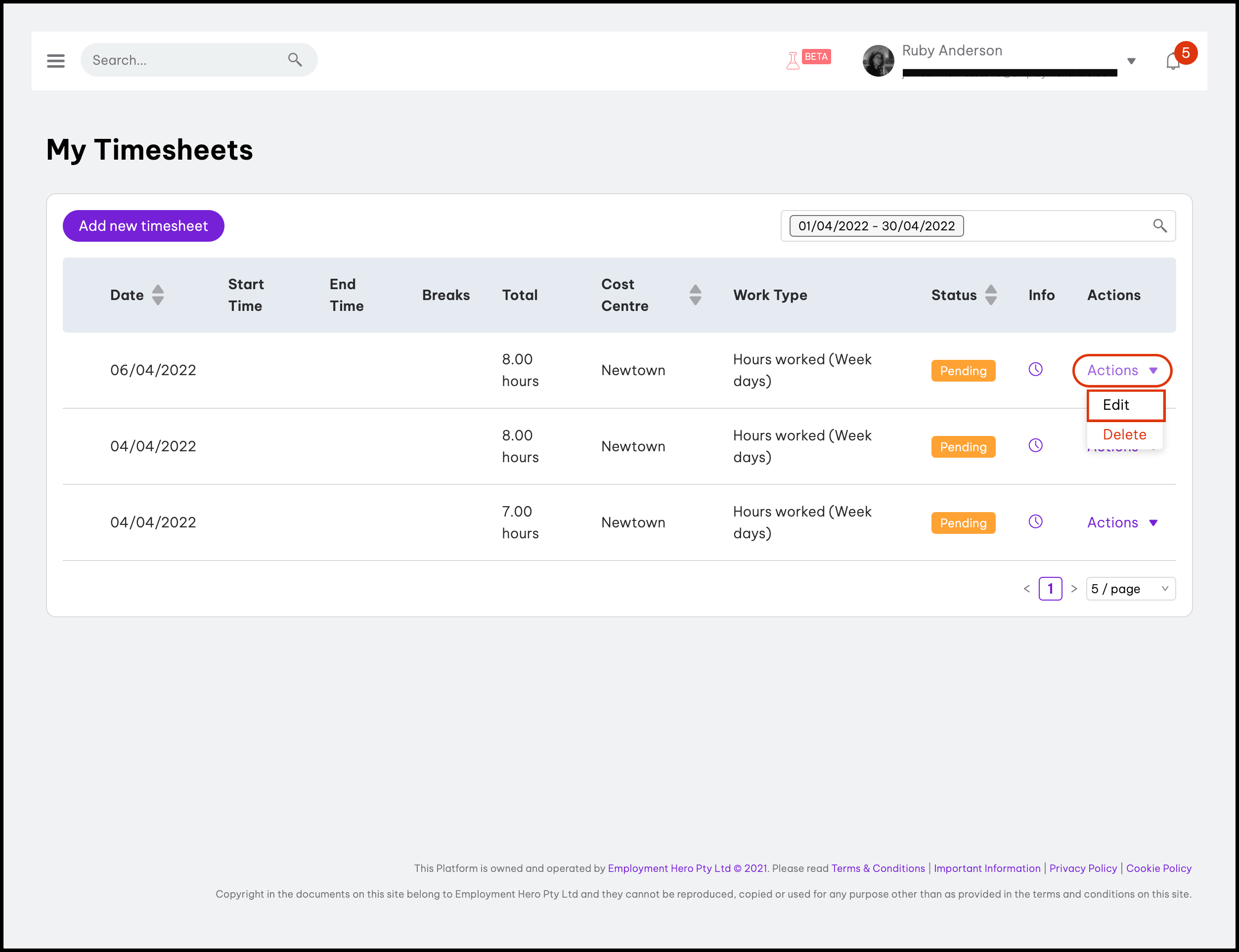 | Edited at. | Provides a timestamp of the last edit done to the timesheet after a previous Employment Hero Payroll synchronisation attempt. |