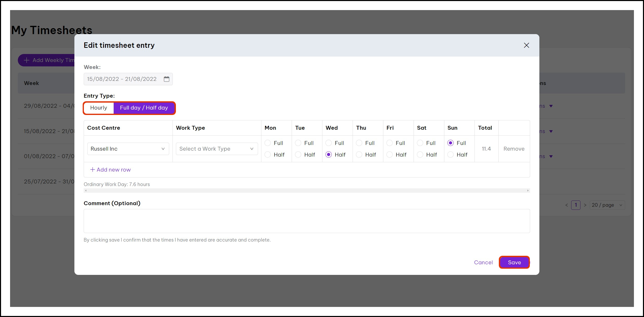 Don't have access to this feature? Contact our friendly sales team here if you’d like to upgrade your account to gain access to the weekly hour-based timesheets with Employment Hero today.