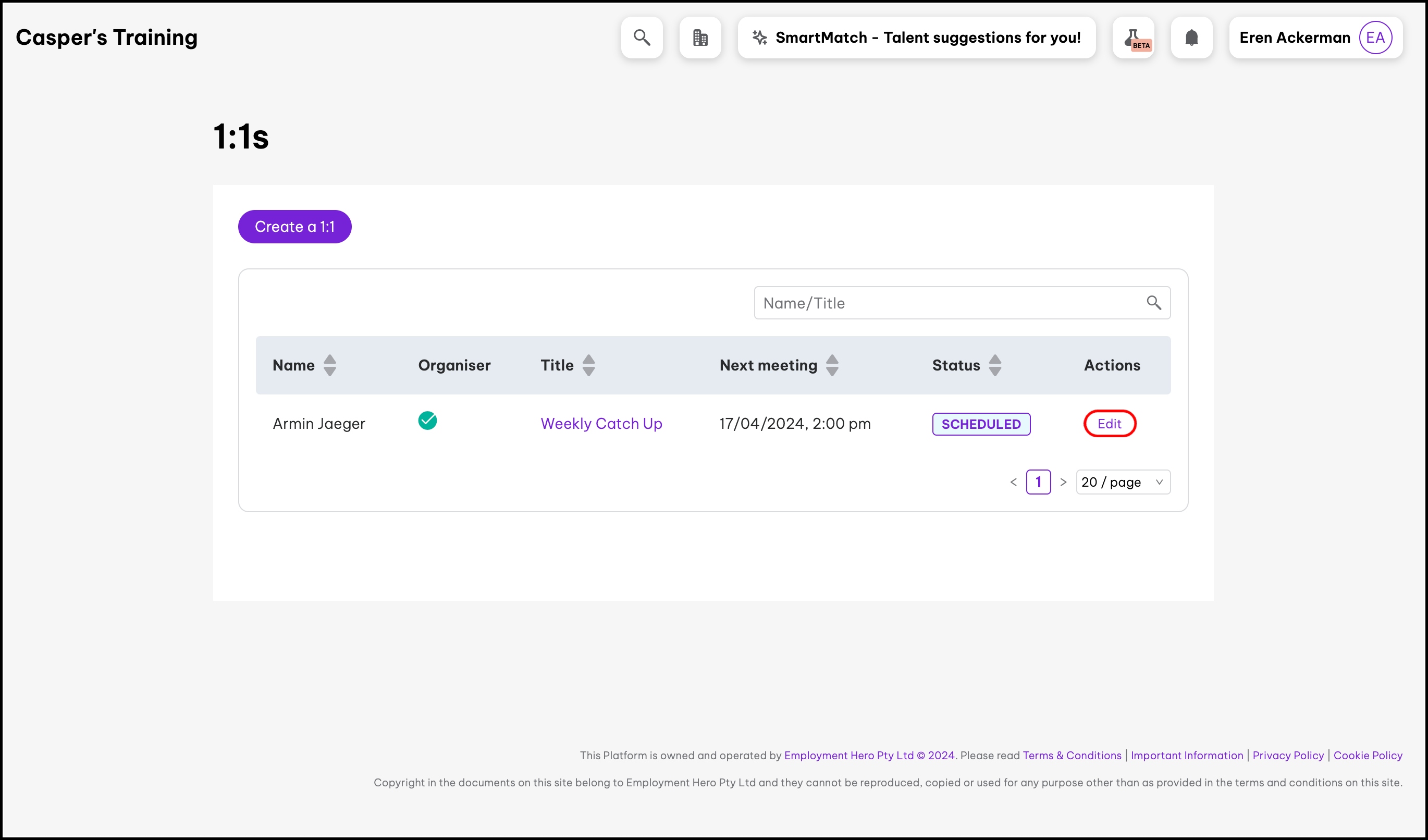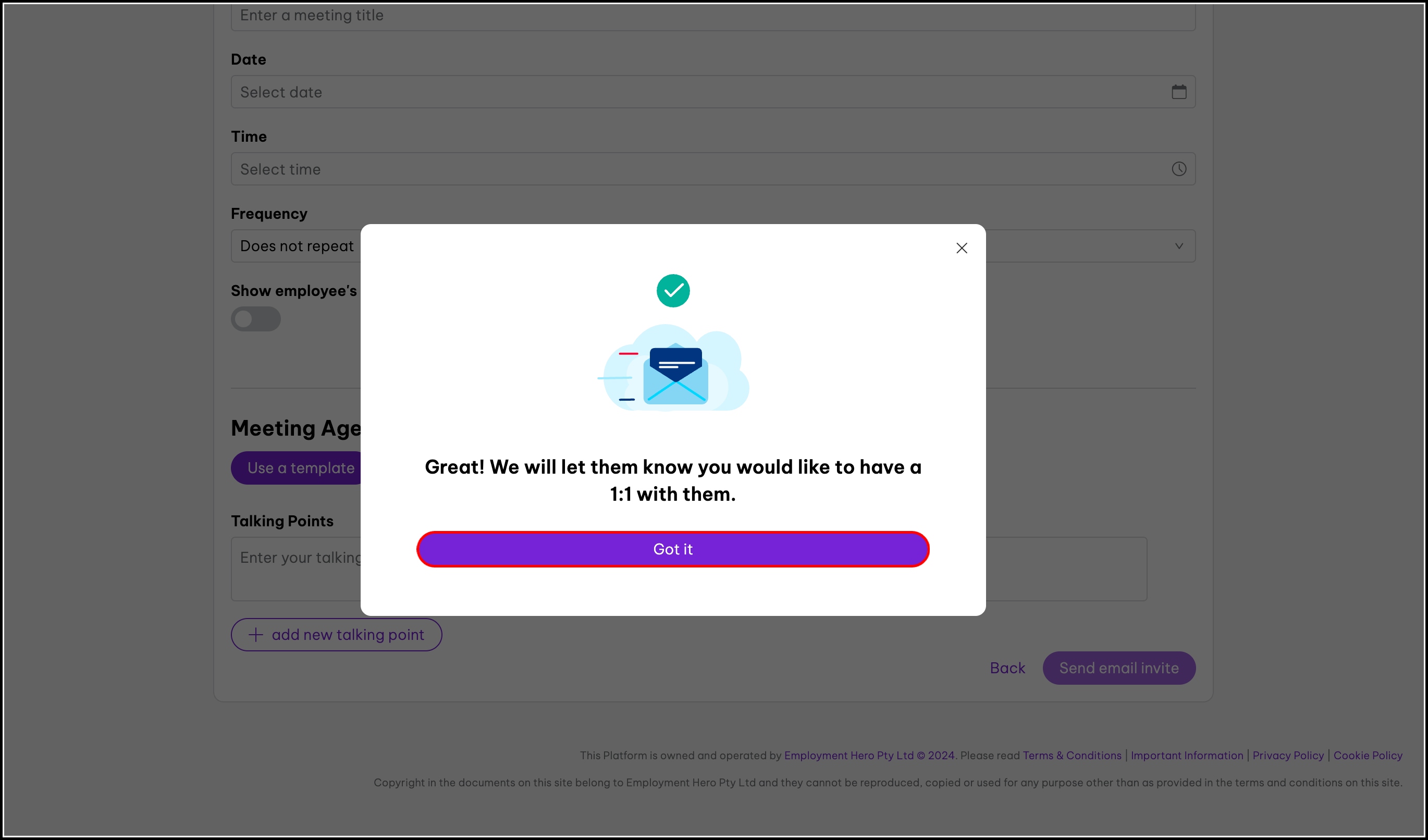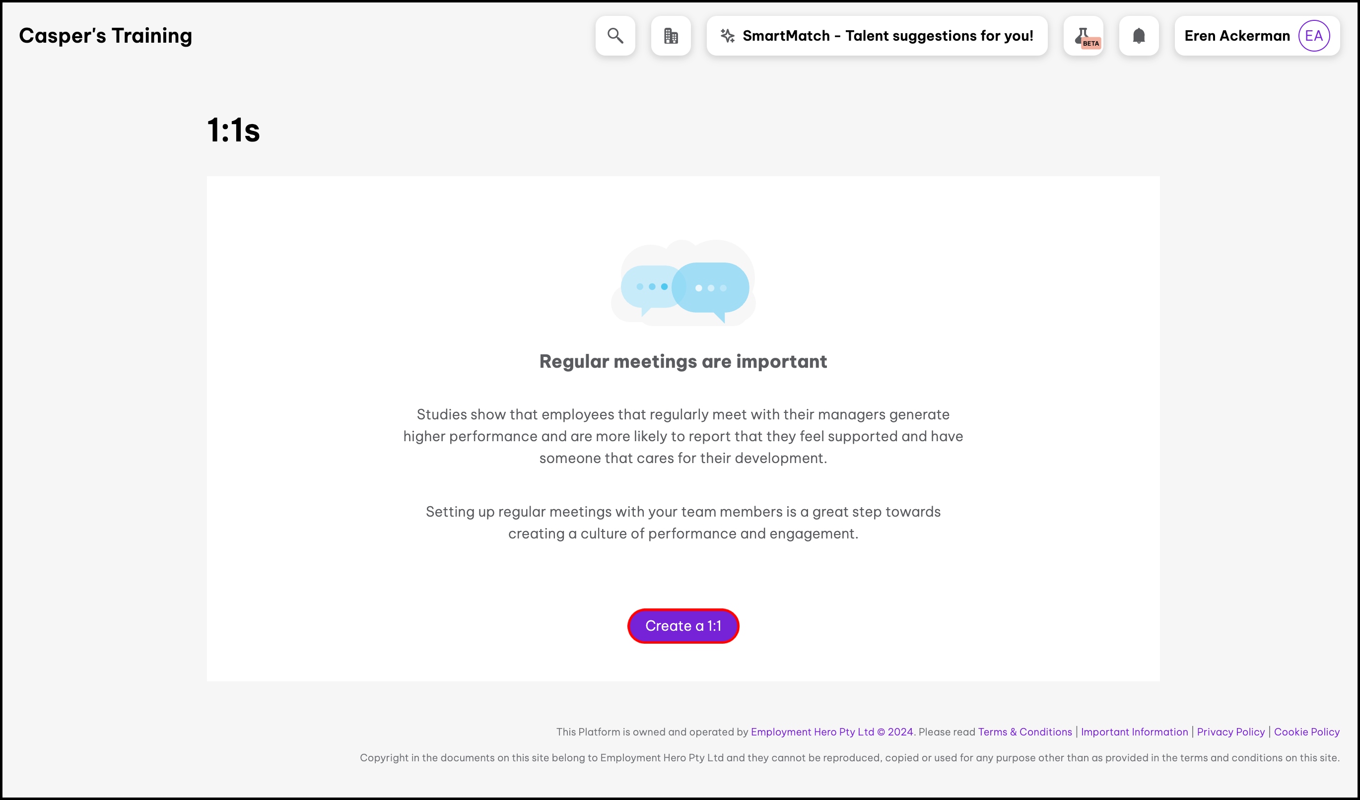 Don't have access to this feature? Contact our friendly sales team here if you’d like to upgrade your account to gain access to One-on-One Sessions with Employment Hero today.