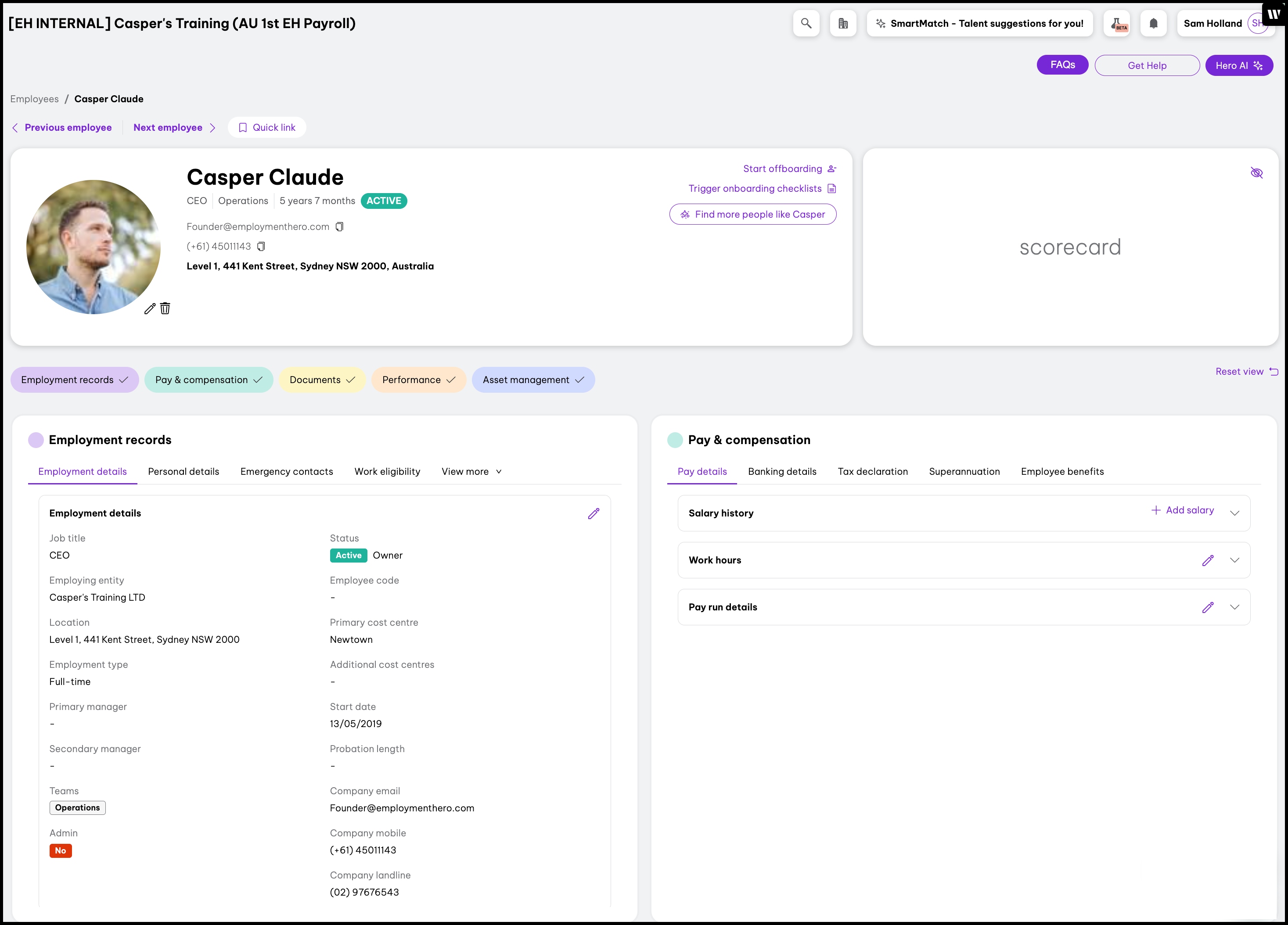 With Employment Hero's Organisation Chart feature, you can view and print team hierarchies, view detailed personnel files, and access SmartMatch recommendations for certain roles. This helps ensure employees, managers, and admins alike have clear visibility on individuals in the business and where they are placed in the organisational structure.