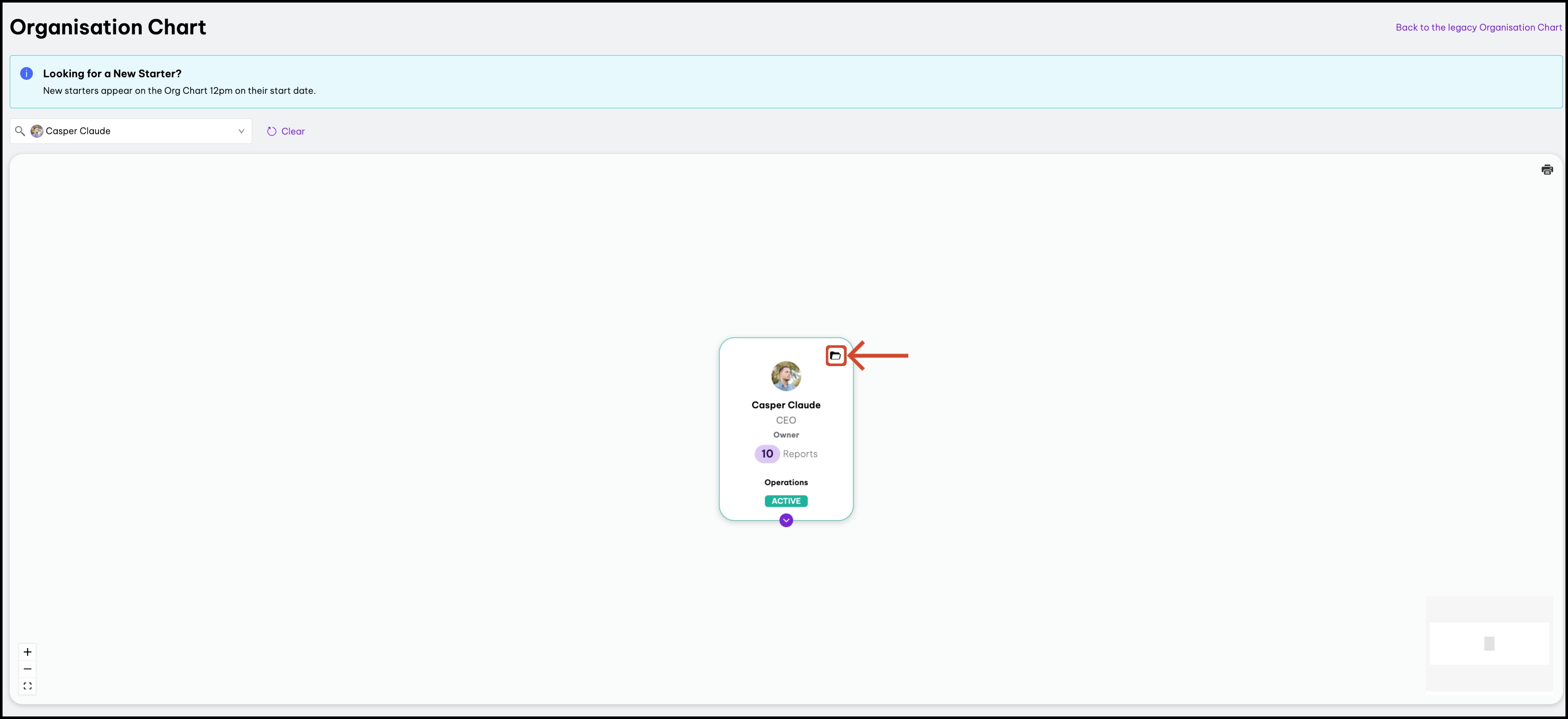 - On the Organisation Chart, click the button at the top of the individual's box.
