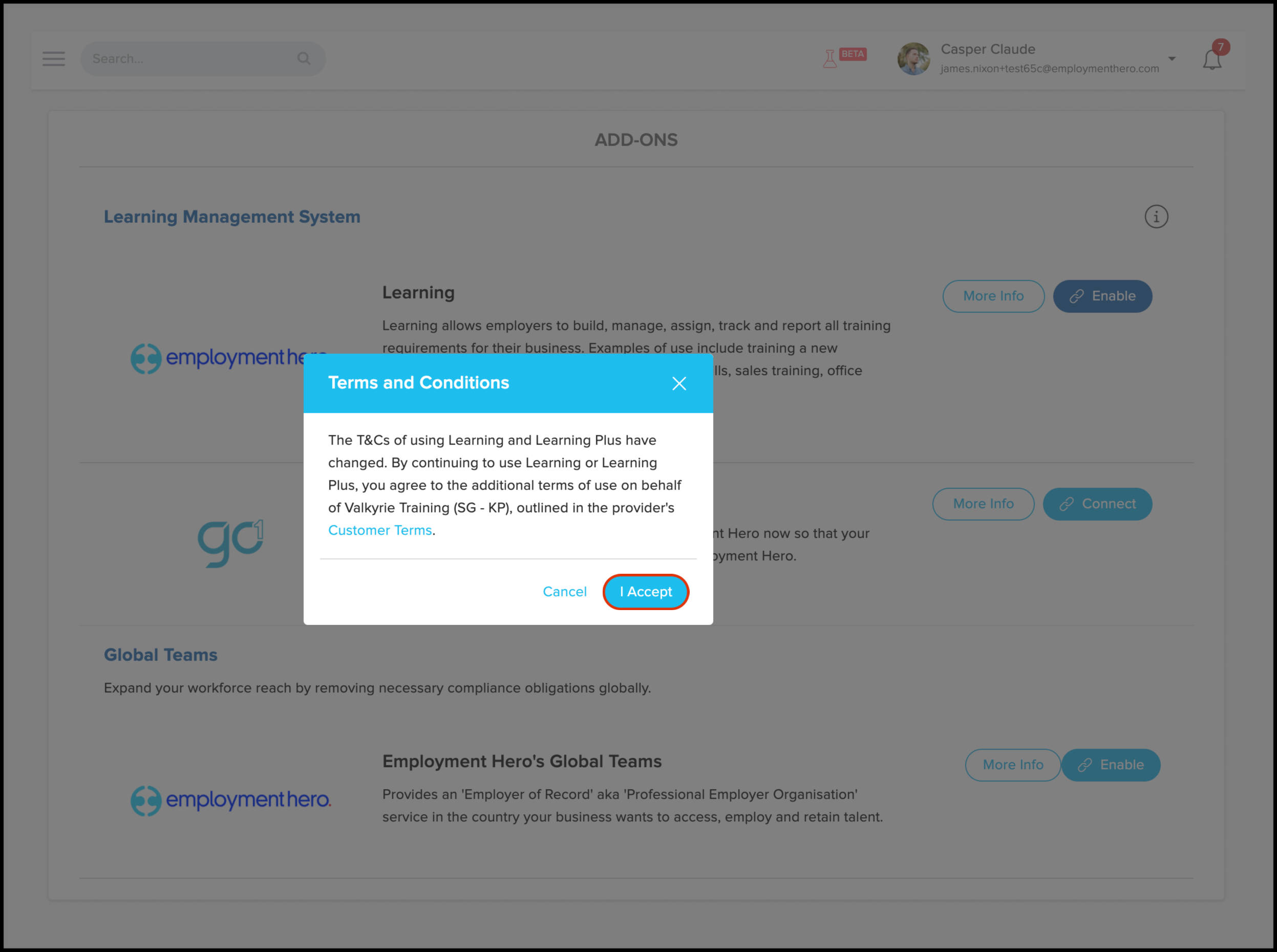Employment Hero (EH) Learning is an LMS that helps train employees, orient them to their roles, and expand their knowledge. To connect EH to Go1, you must be an admin on both platforms. If your organisation has an existing Go1 account, select the Go1 option; otherwise, choose EH Learning. Both options integrate with Go1. Connecting to EH Learning will not send welcome emails to employees, and notifications are off by default, allowing for testing without alerting employees.