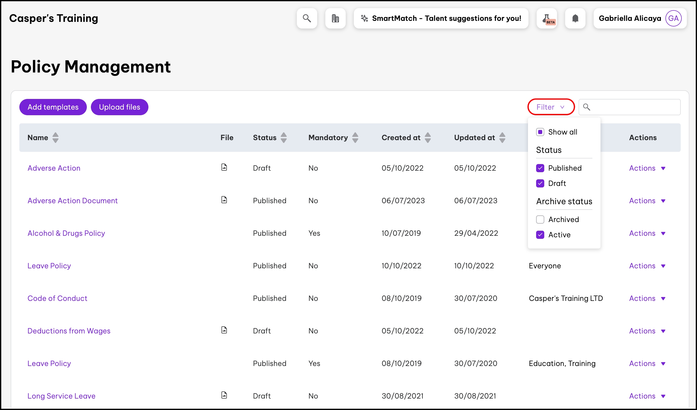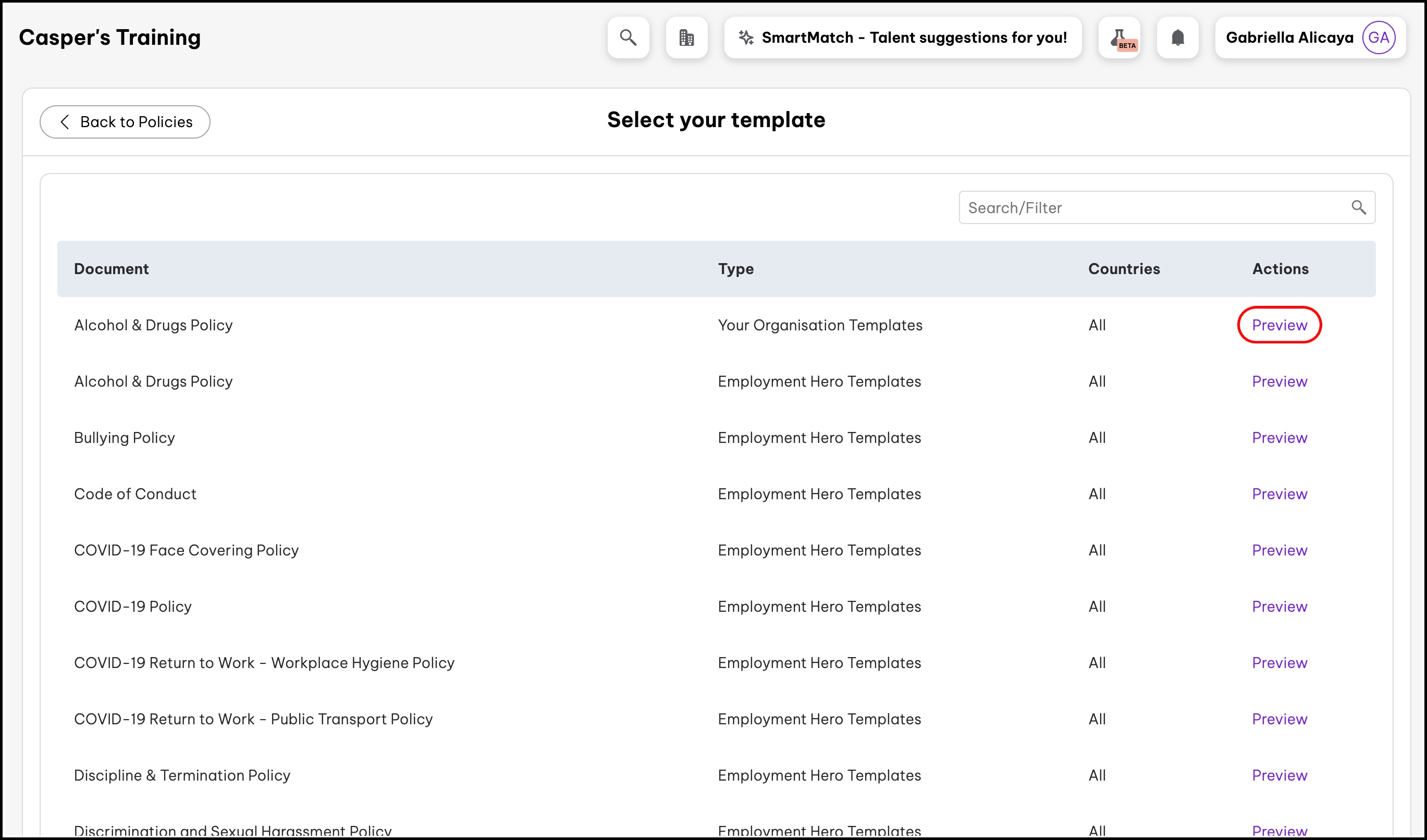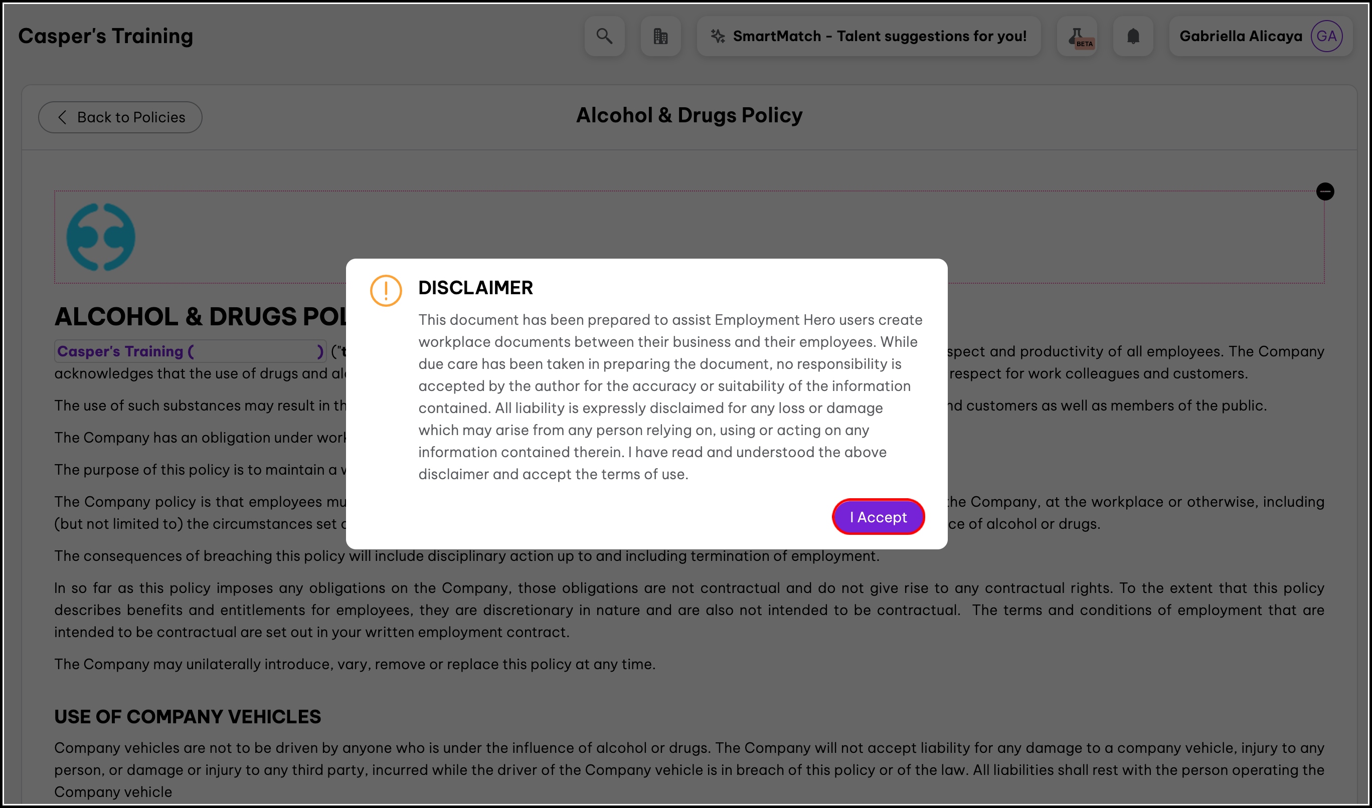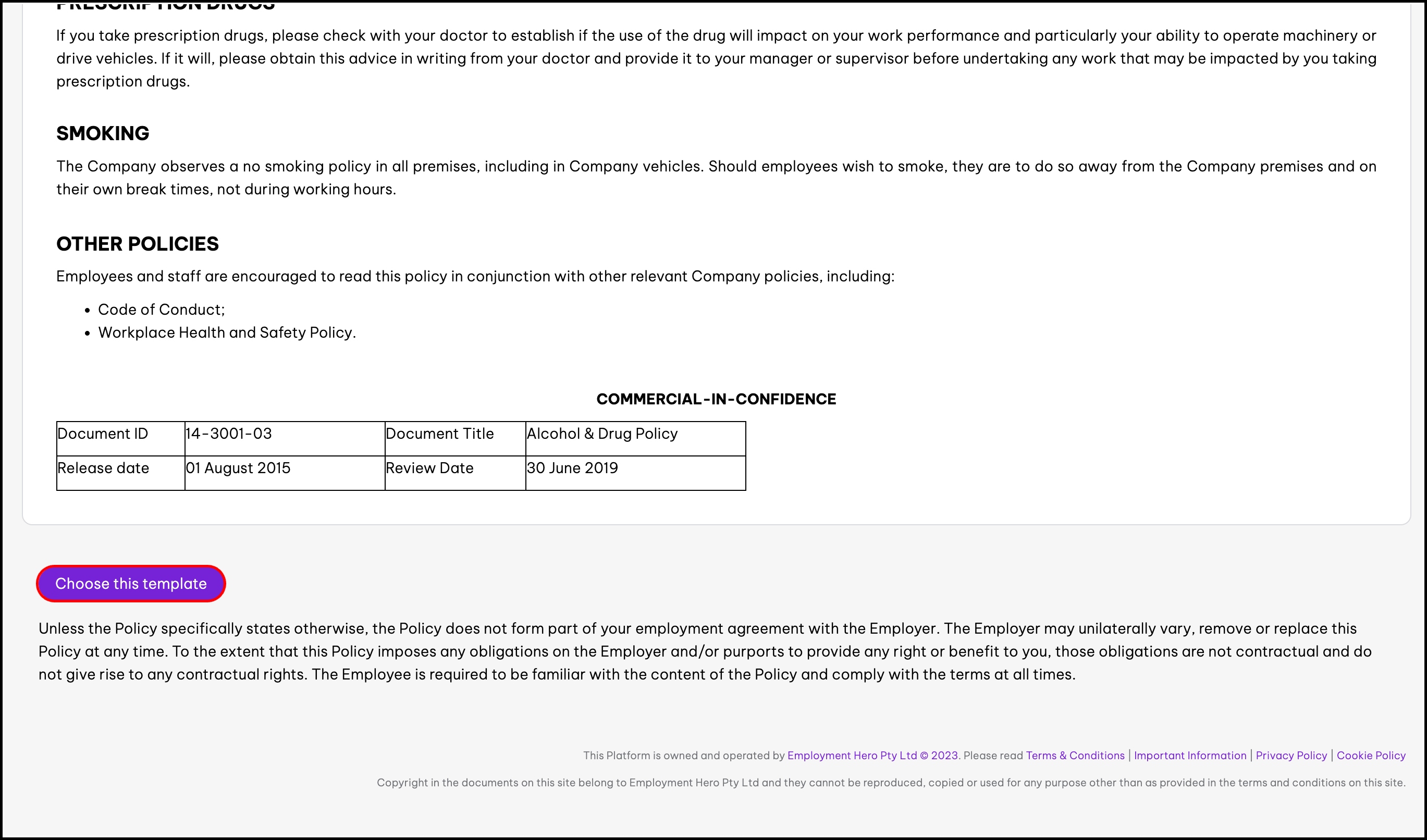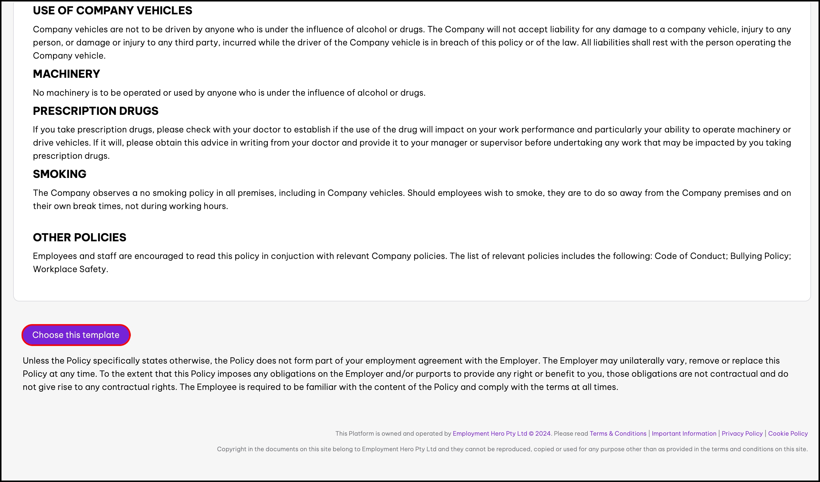 As mentioned above, you can use Employment Hero templates when creating policies for your company. When these templates get updated, the changes made to them do not automatically apply to the policies based on them.