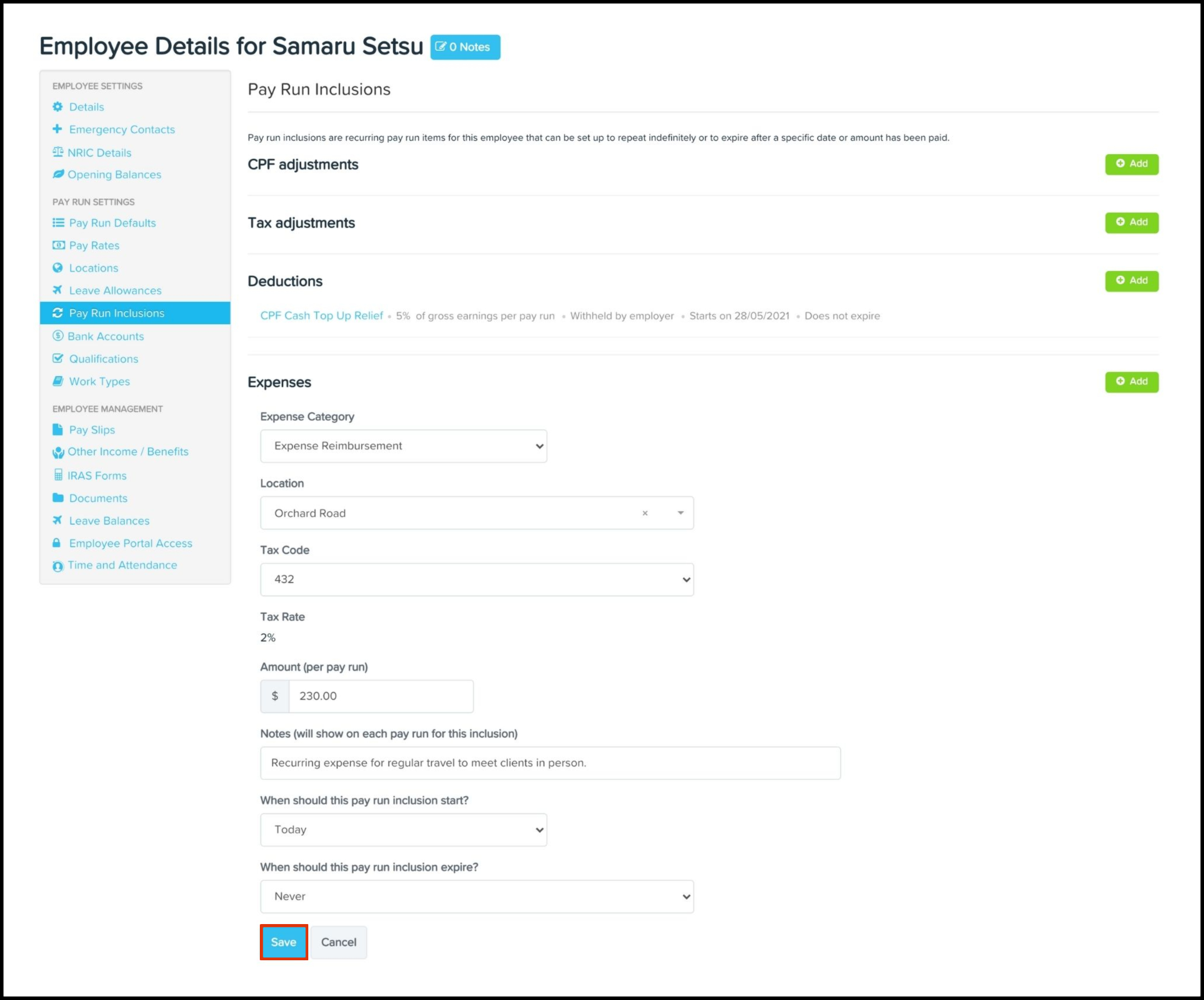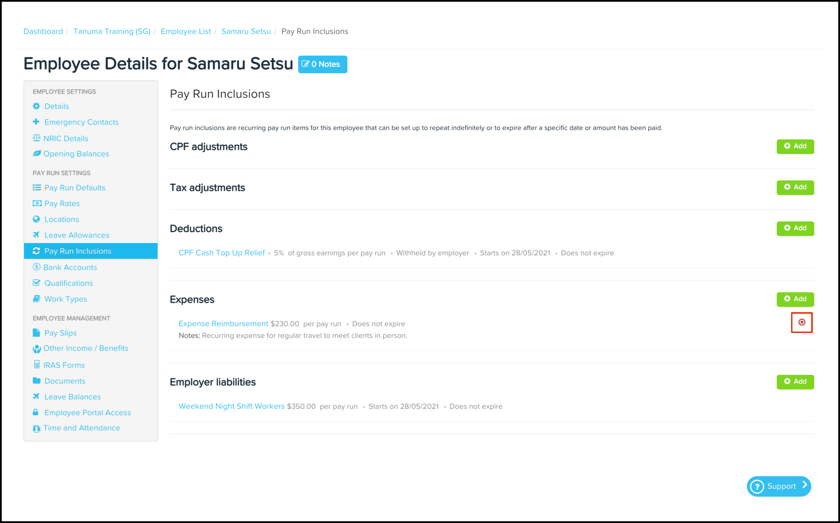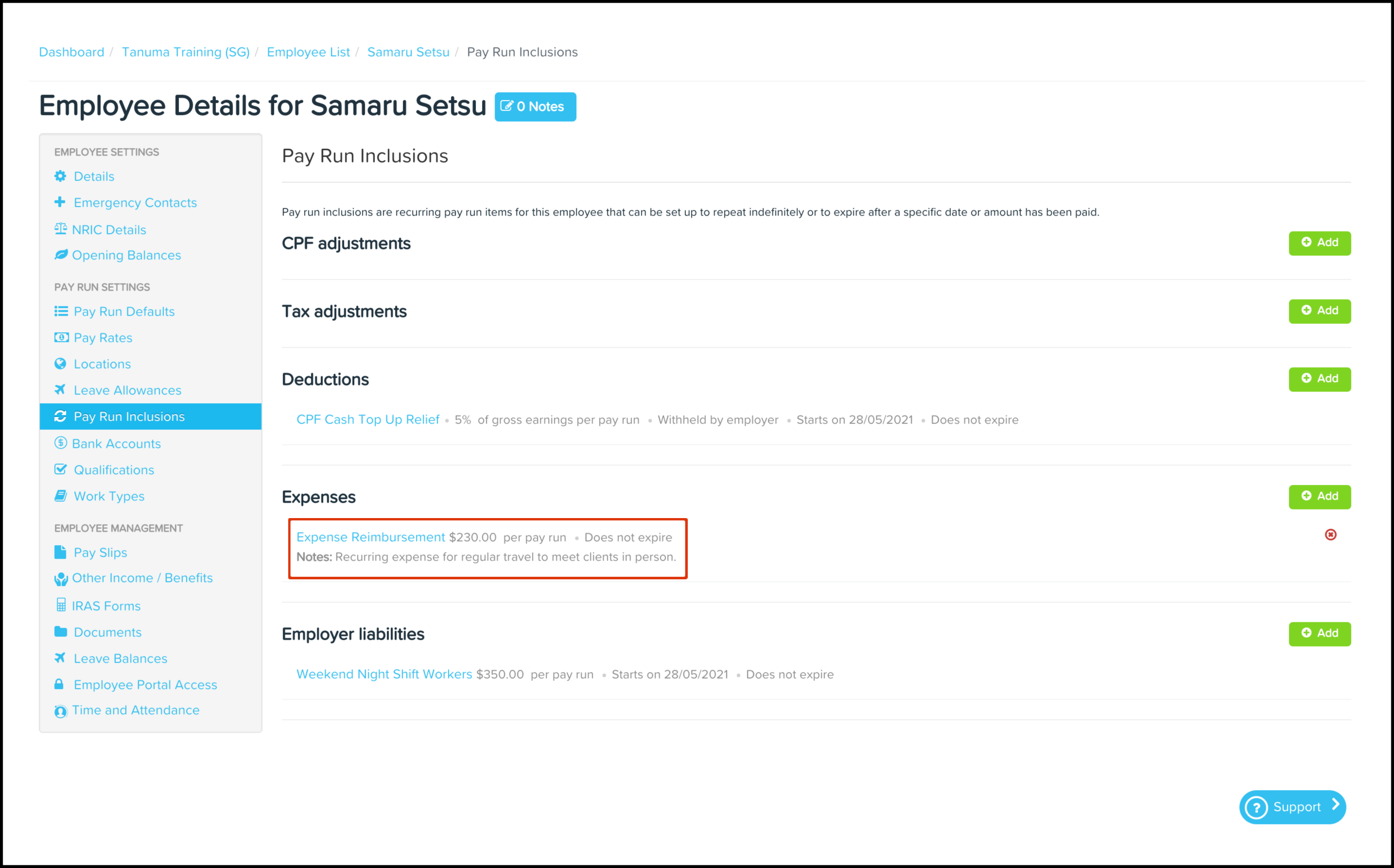 The expense reimbursement process allows employers to pay back employees who have spent their own money on business-related expenses. The Pay Run Inclusions Expenses feature allows you to set up an automated expense where you can choose the category, the date the inclusion starts on, and the expense amount. You can also use this feature to edit any information entered previously and delete a record that is no longer required.