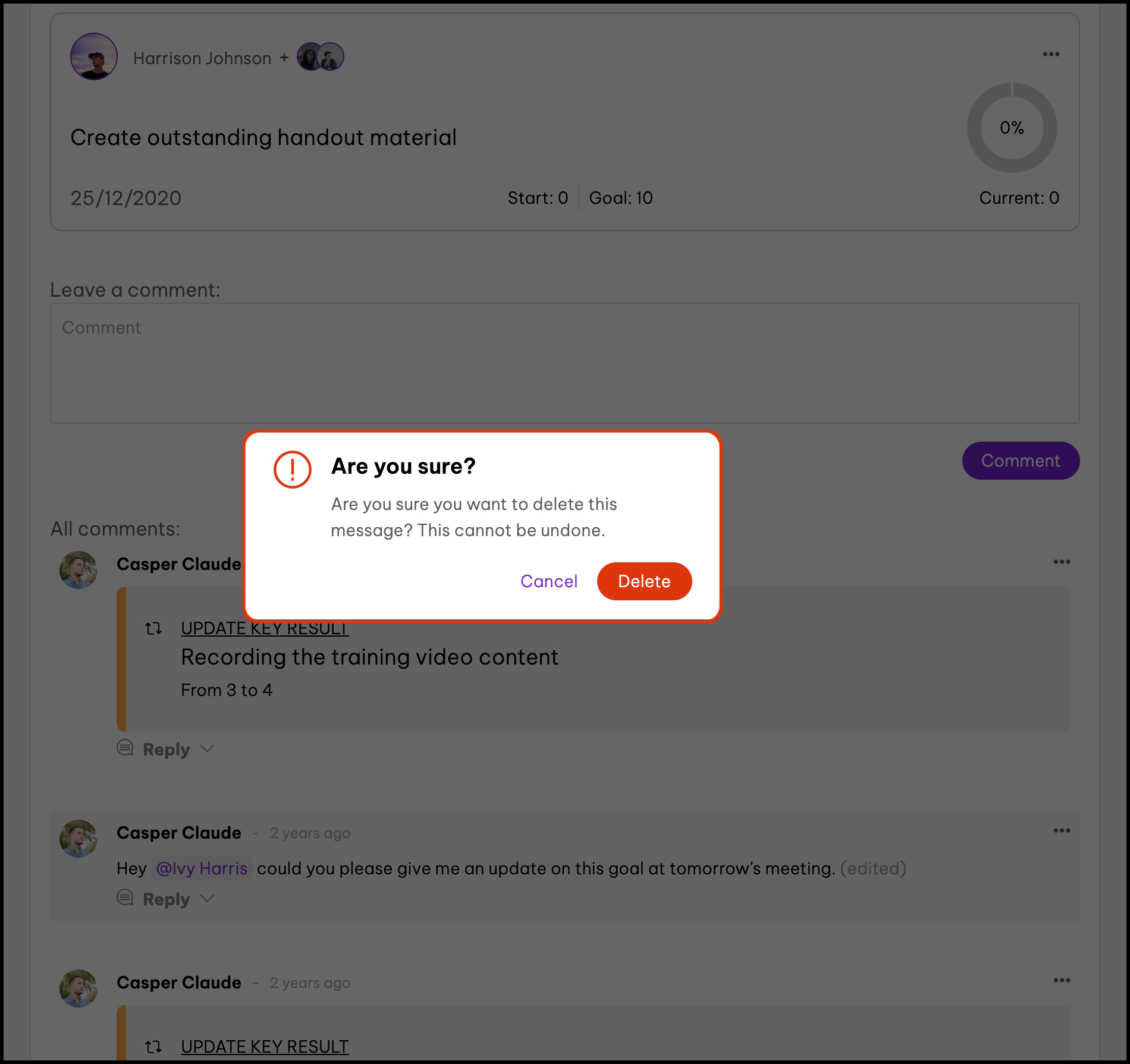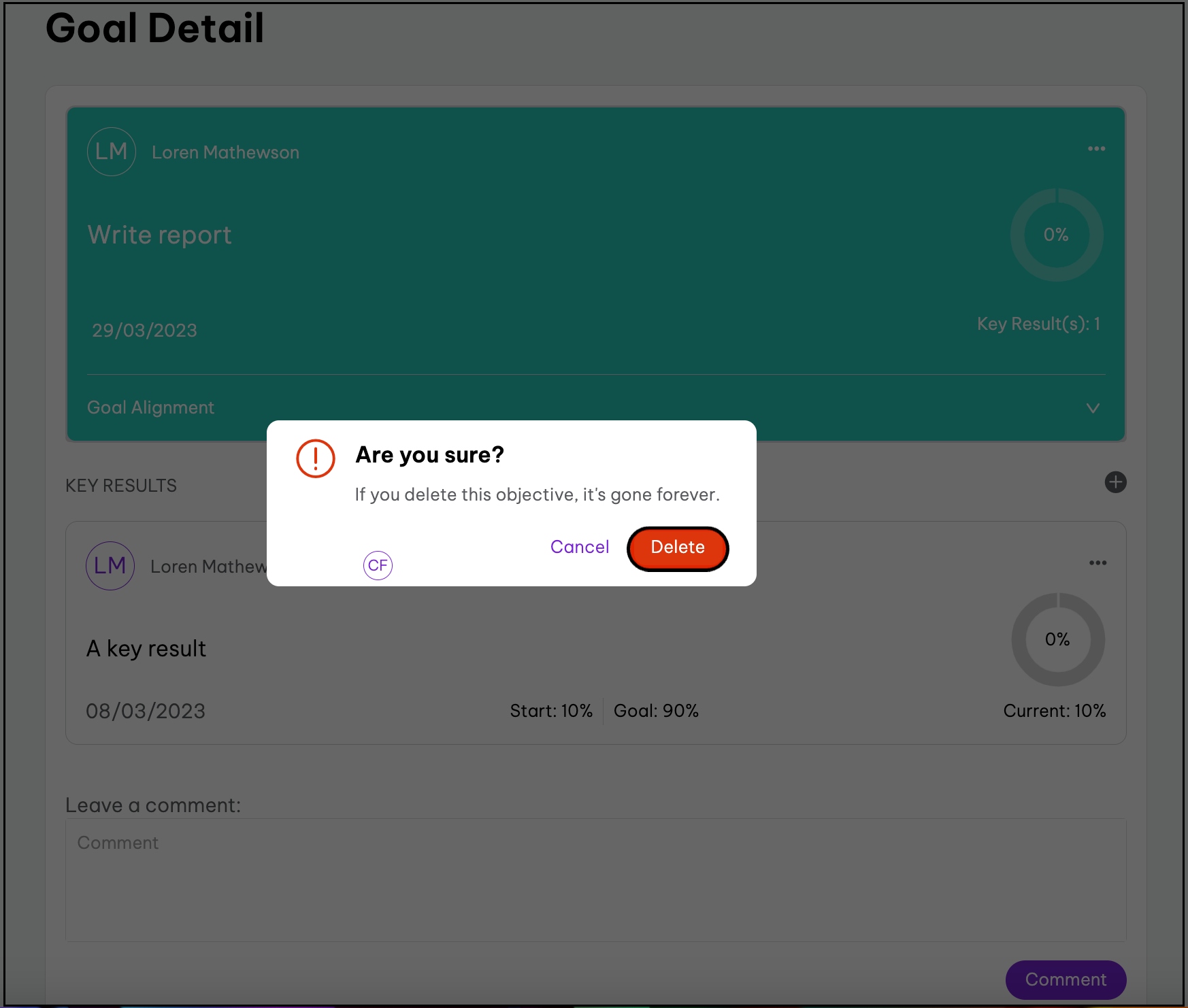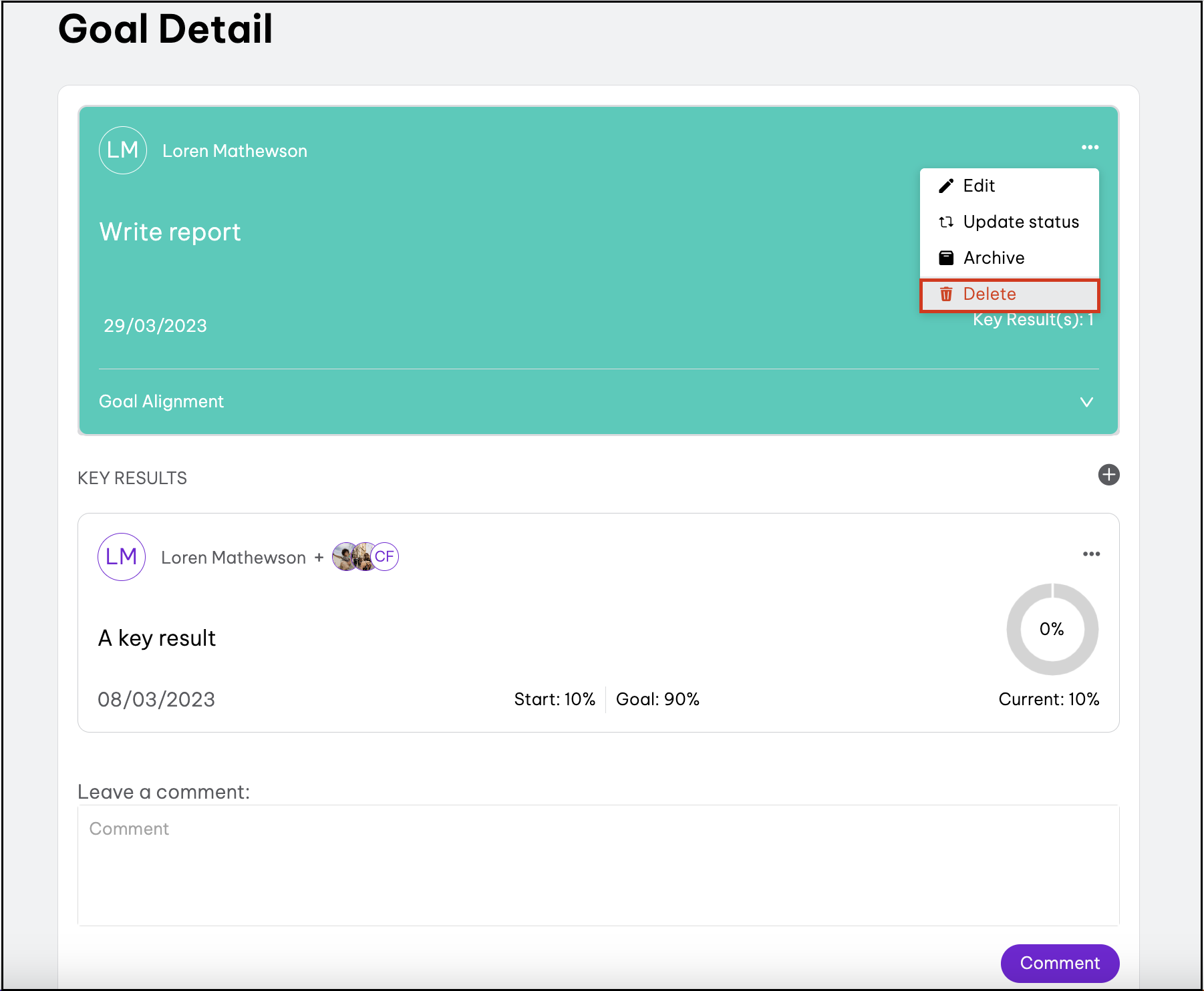 - Click the goal that needs a comment added.