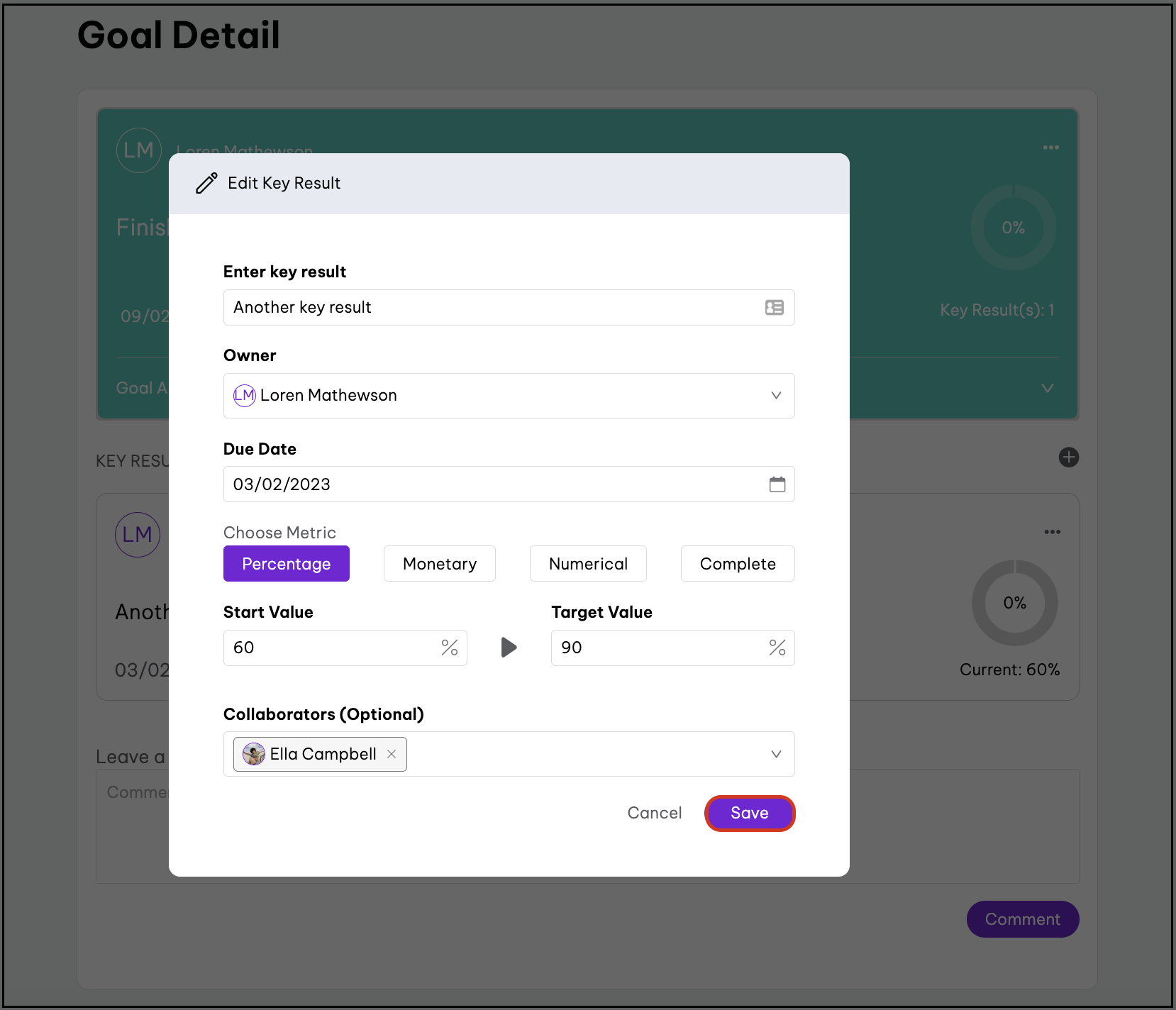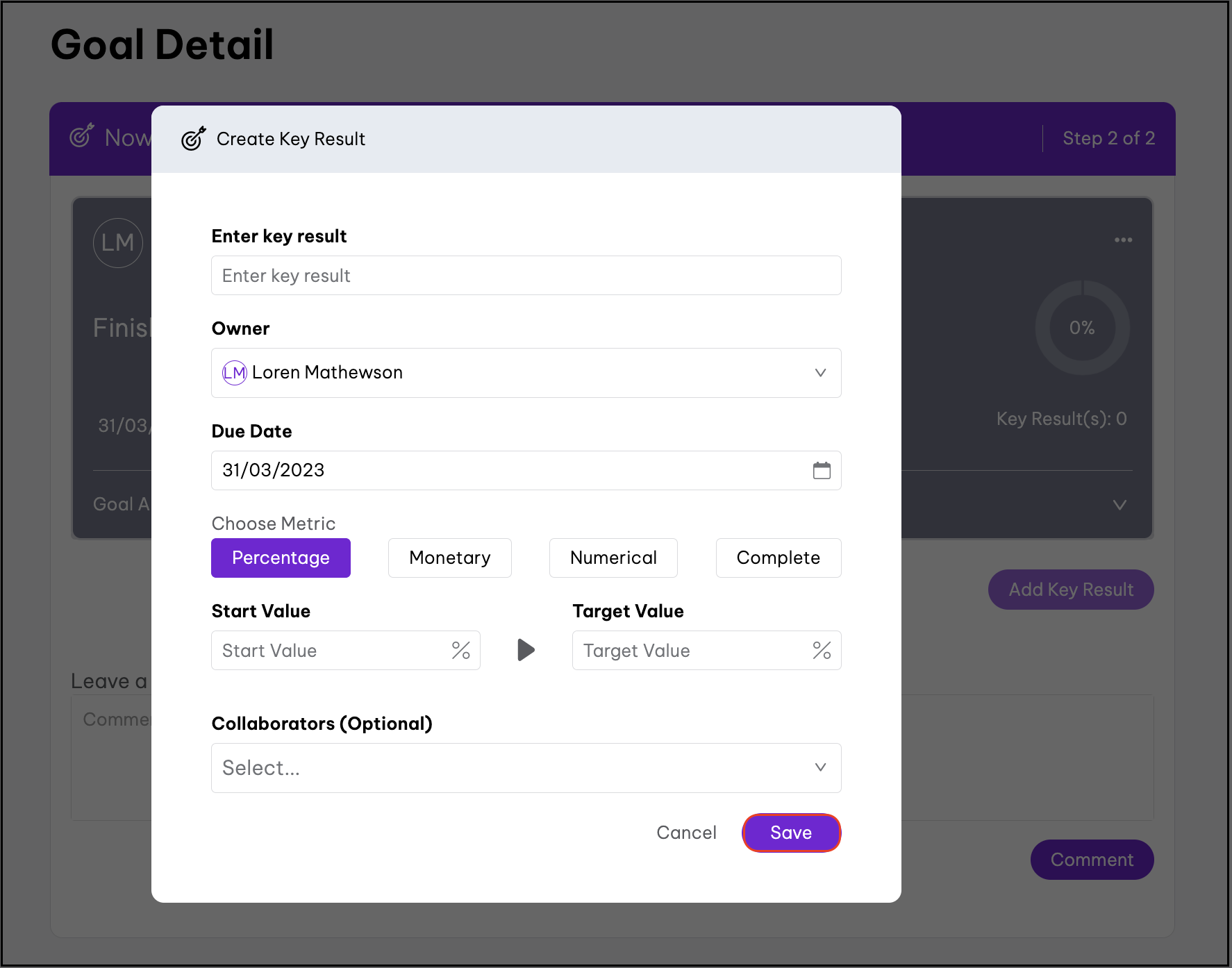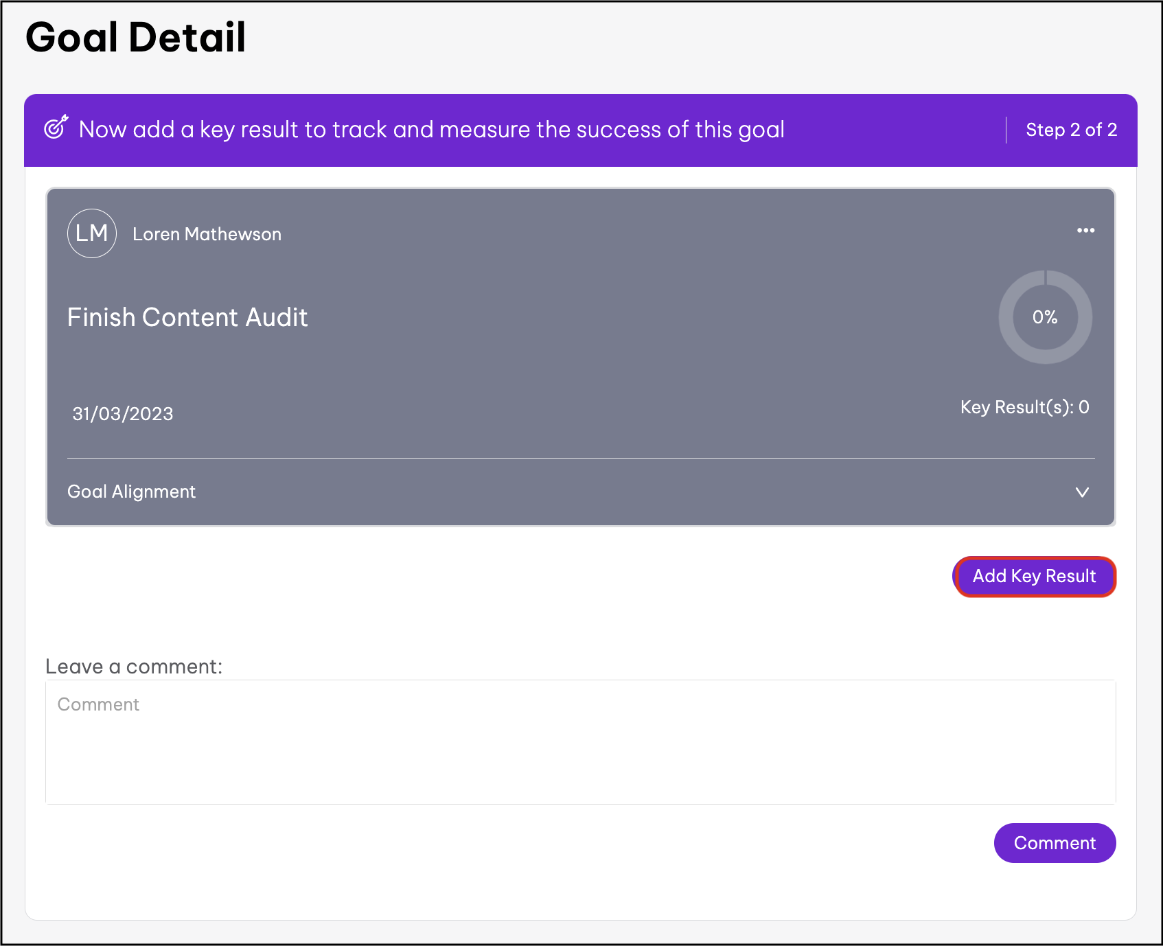 - Click the Add Key Result button.