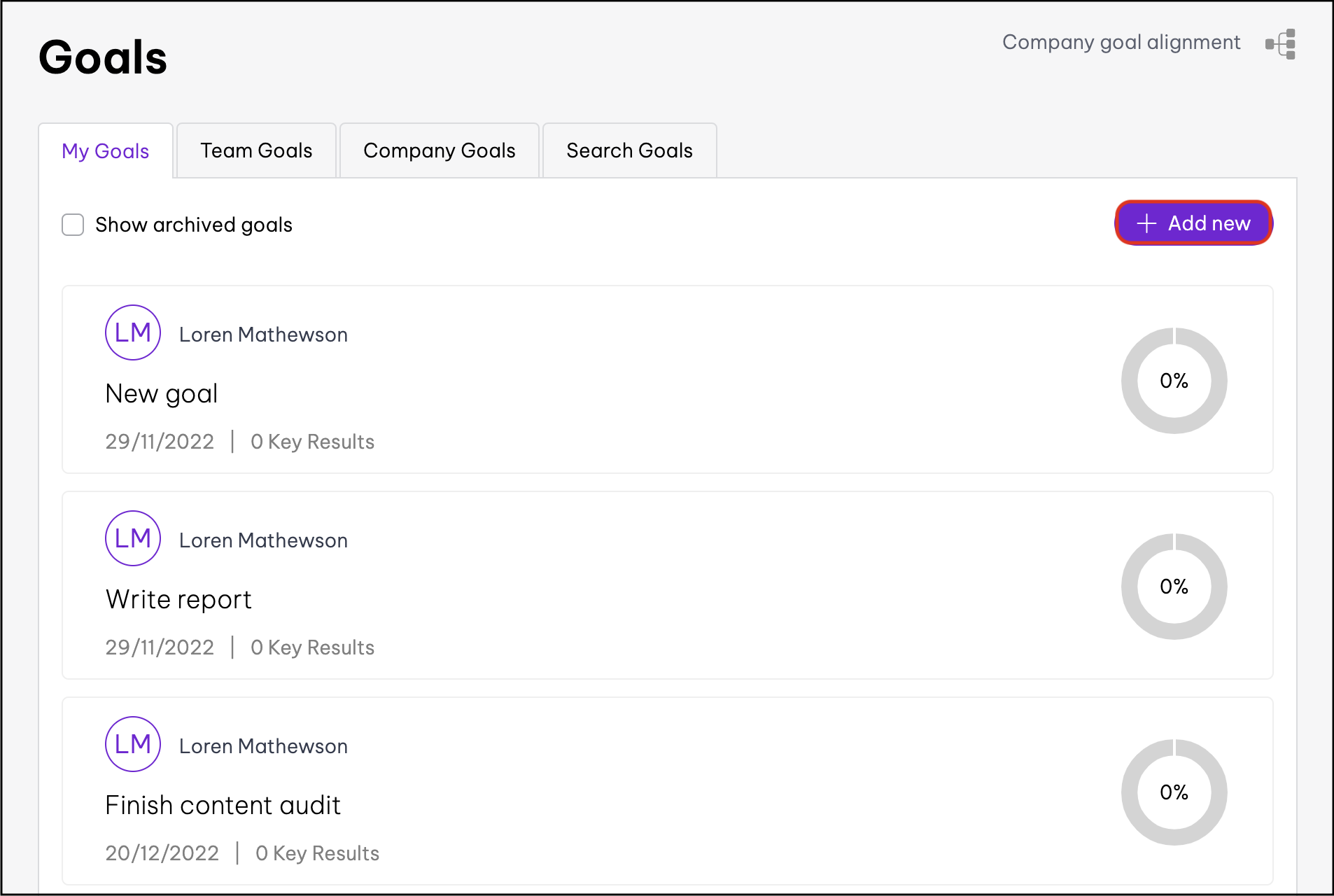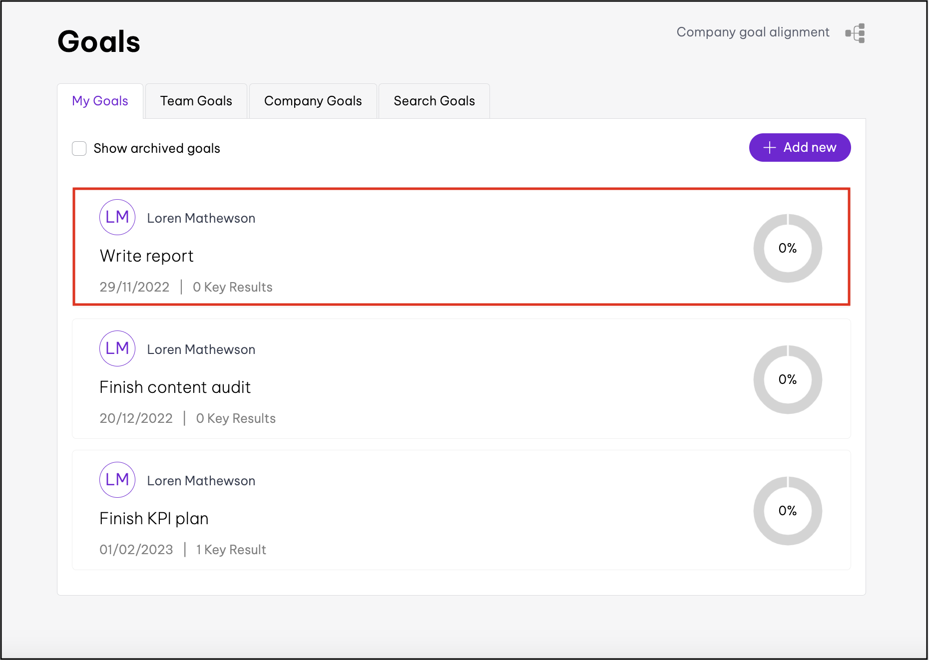 - Click either the My Goals or Company Goals tab.