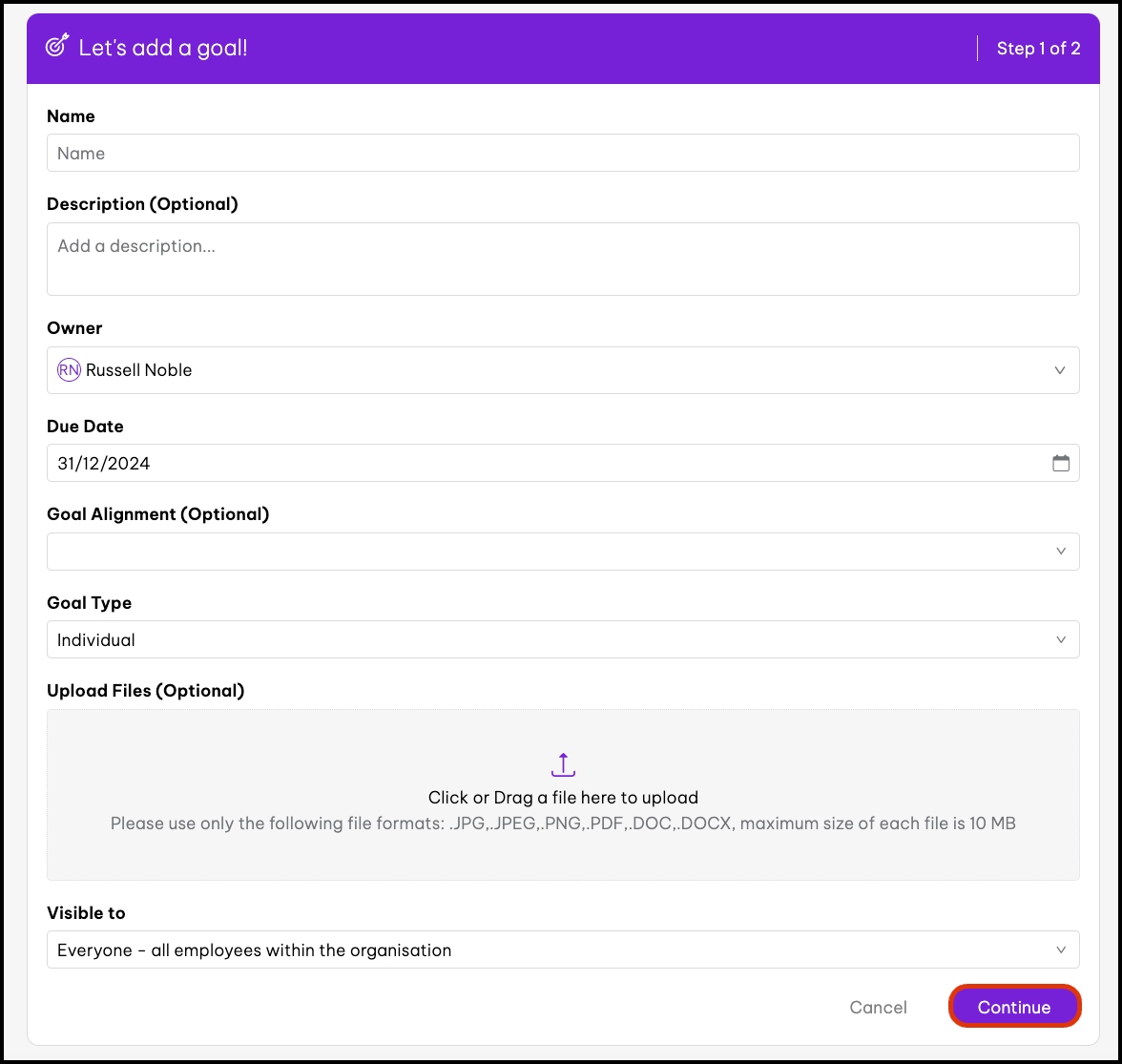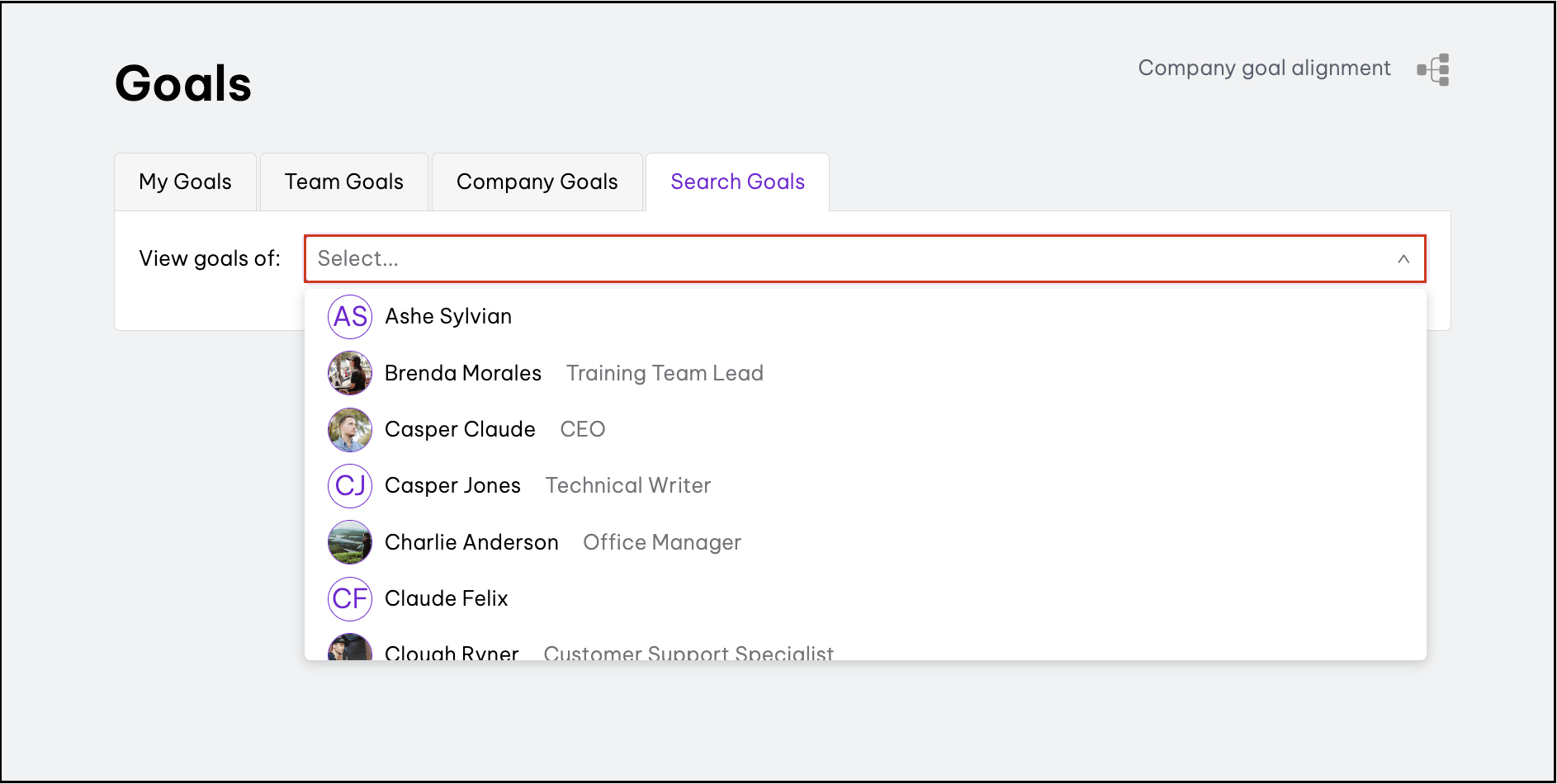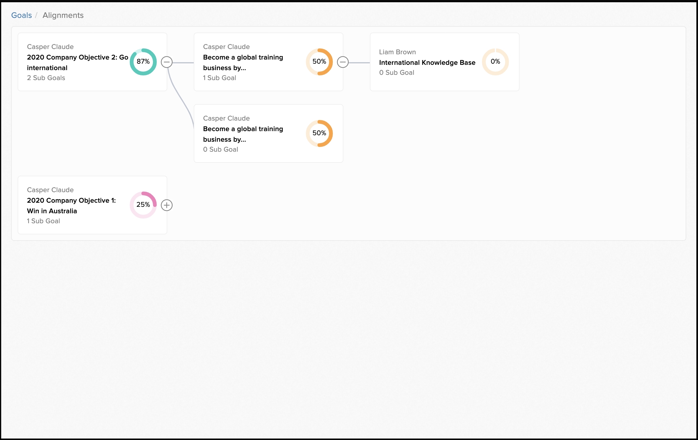 The goal alignment feature shows a point of relationship between each goal and shows why certain goals are important within your organisation. From a top-down approach, you can drill down from the company goal to see what certain teams and individuals are doing to achieve the overarching company goal within your organisation.