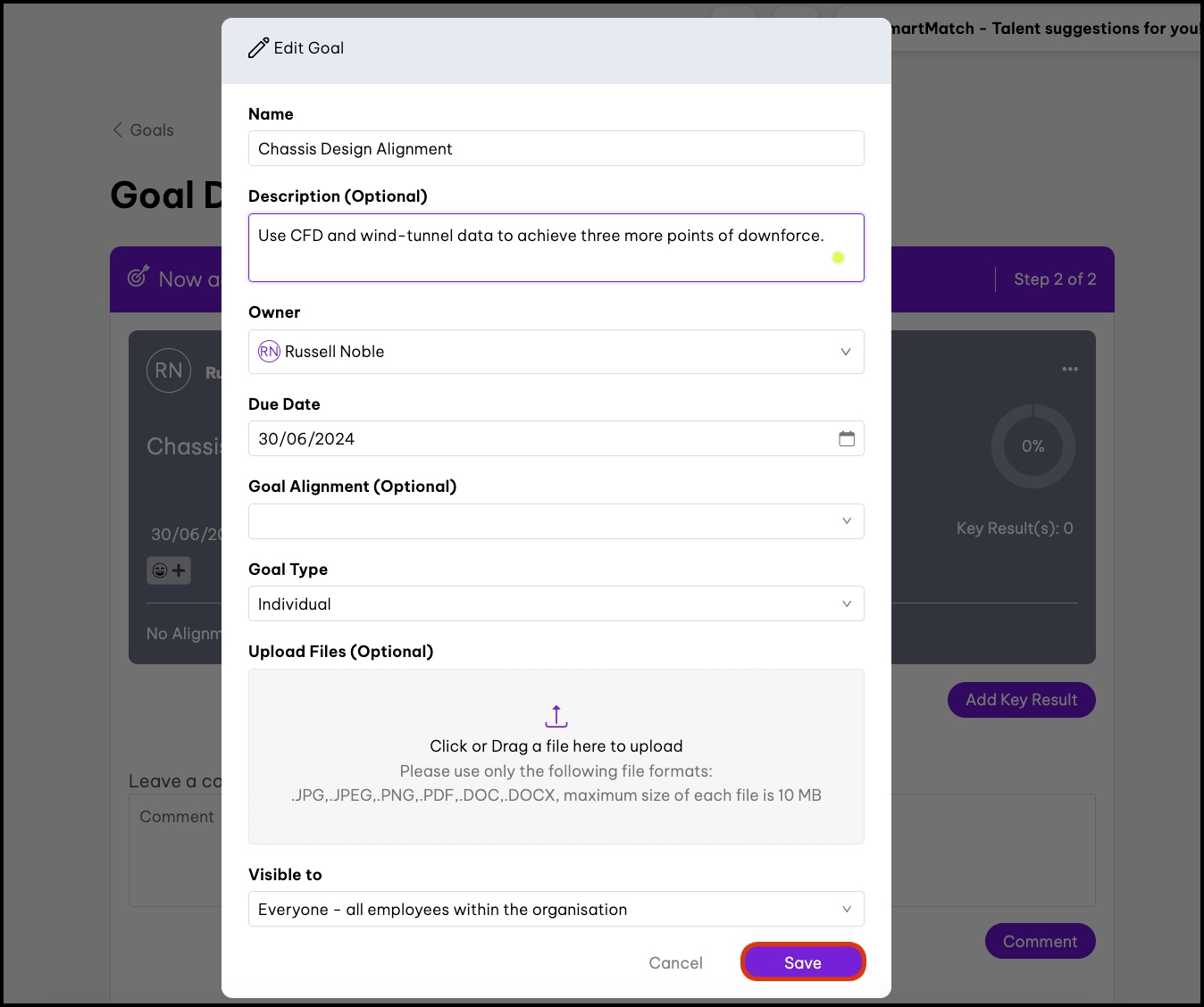 | Teams | Same permission as participants plus anyone that is also part of the team assigned to the goal. |