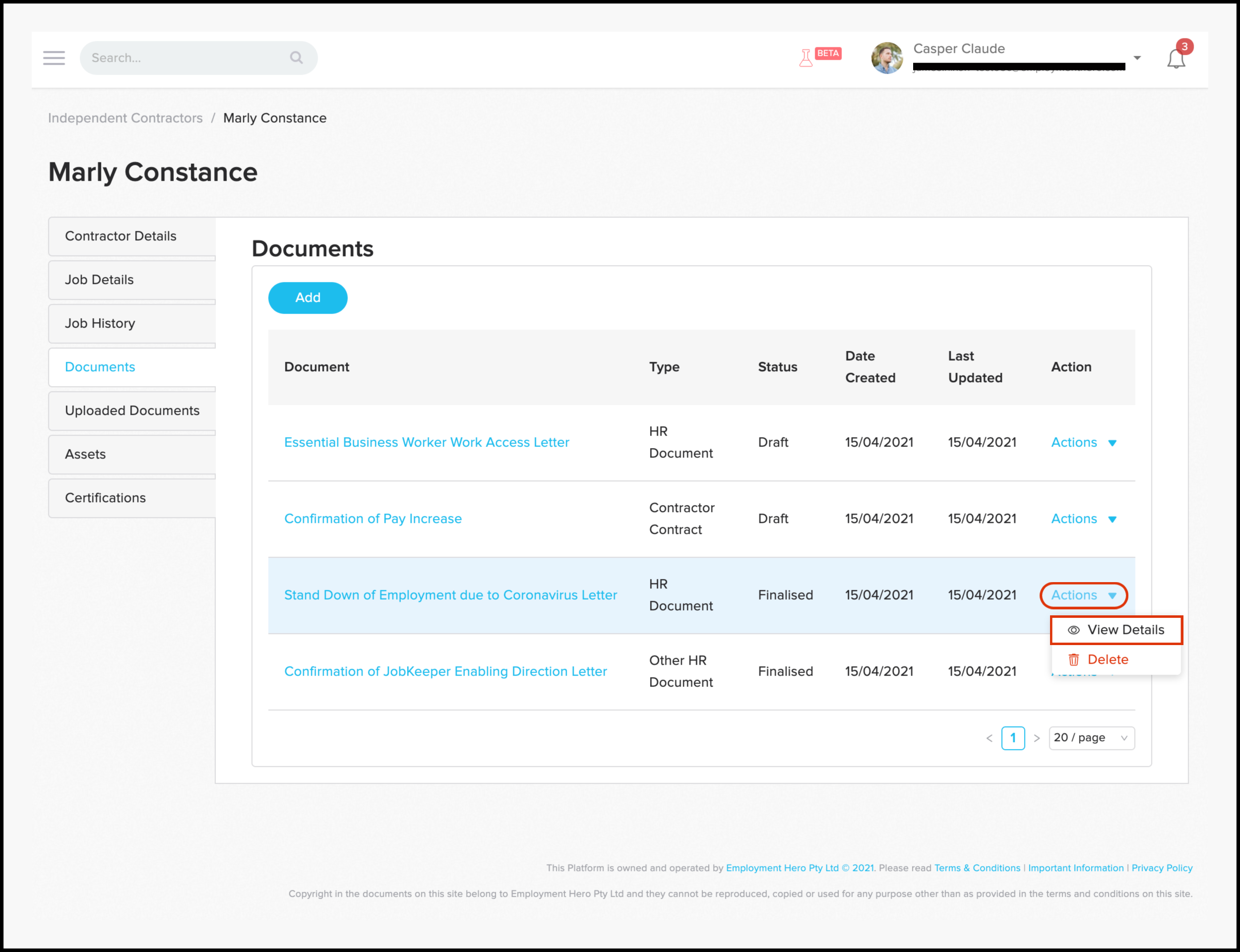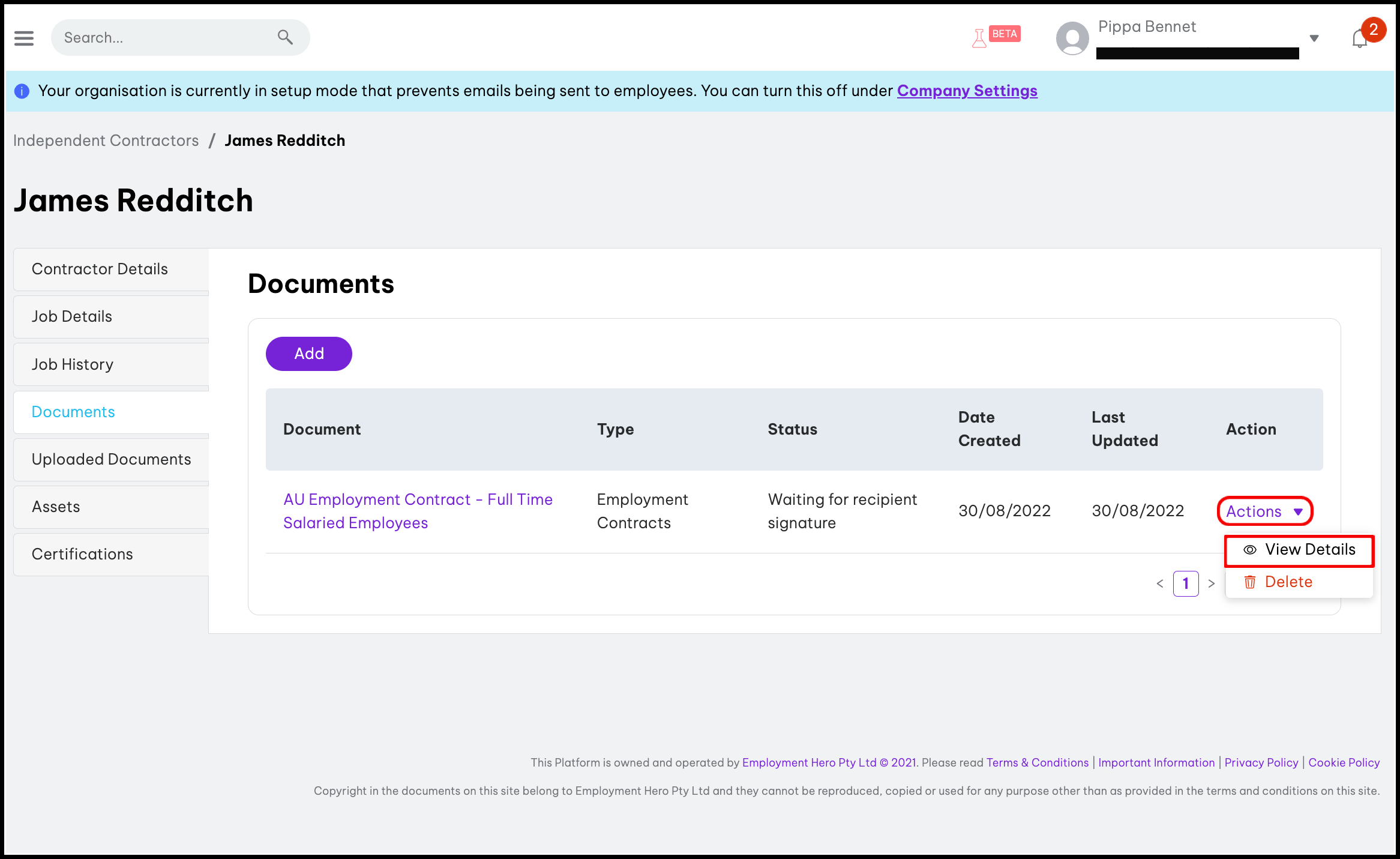 If you need to remind contractors to sign allocated HR documents and contracts, you can access this feature from the HR Documents report. To read further details on how to send a reminder, refer to this article.