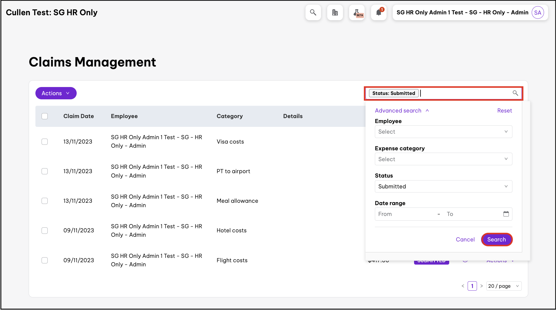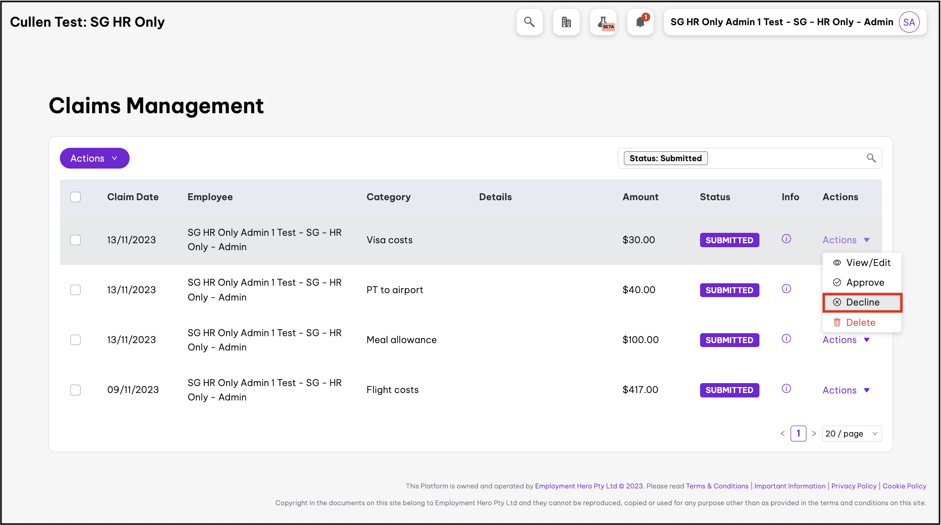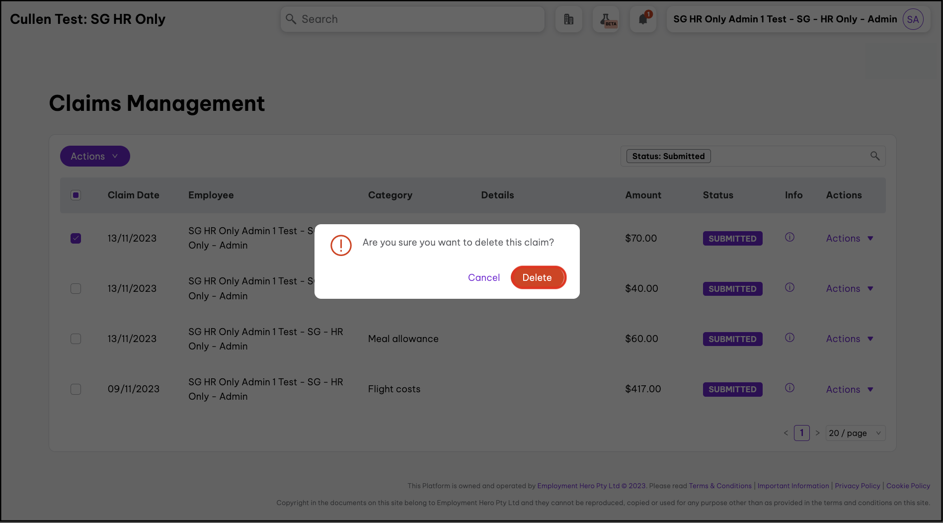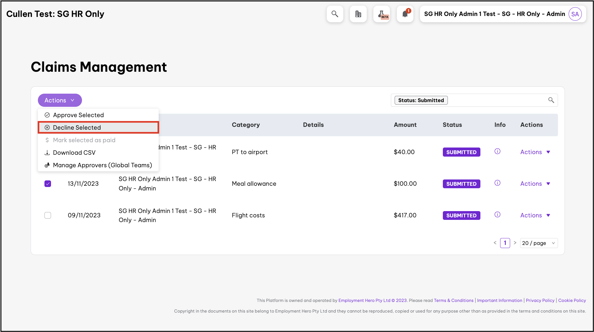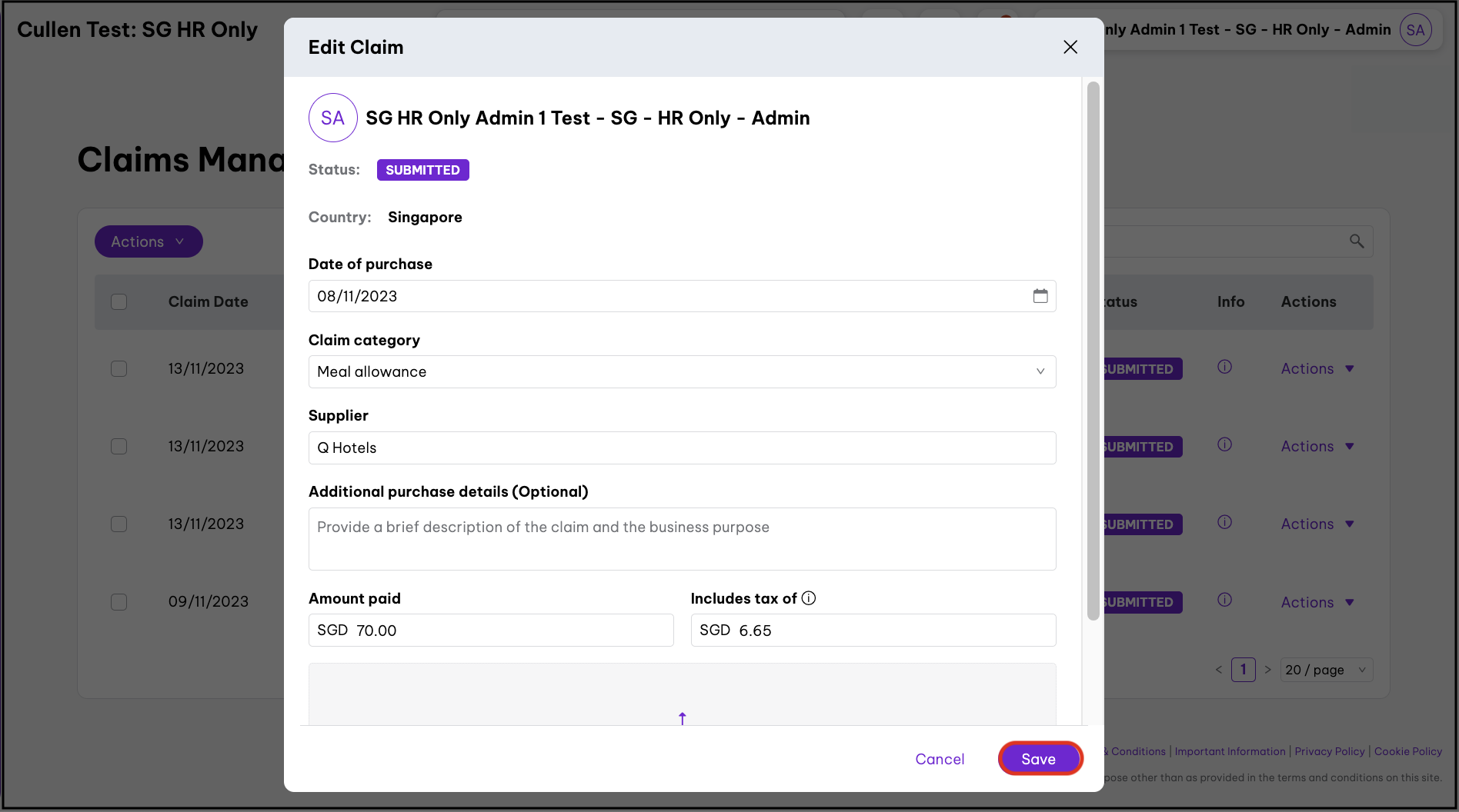 The Claim Management feature allows you to review and approve employee-submitted claims, either individually, or in bulk, and approve expenses that require additional information before being processed. You can also mark claims as paid, download a CSV file of your claims, edit the information provided, and delete any unnecessary submissions.