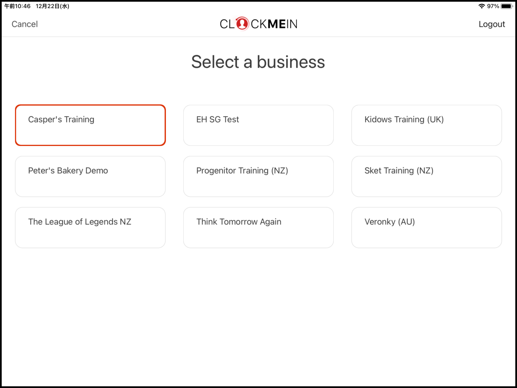 Switch businesses and/or kiosks via the Clock Me In app as an admin